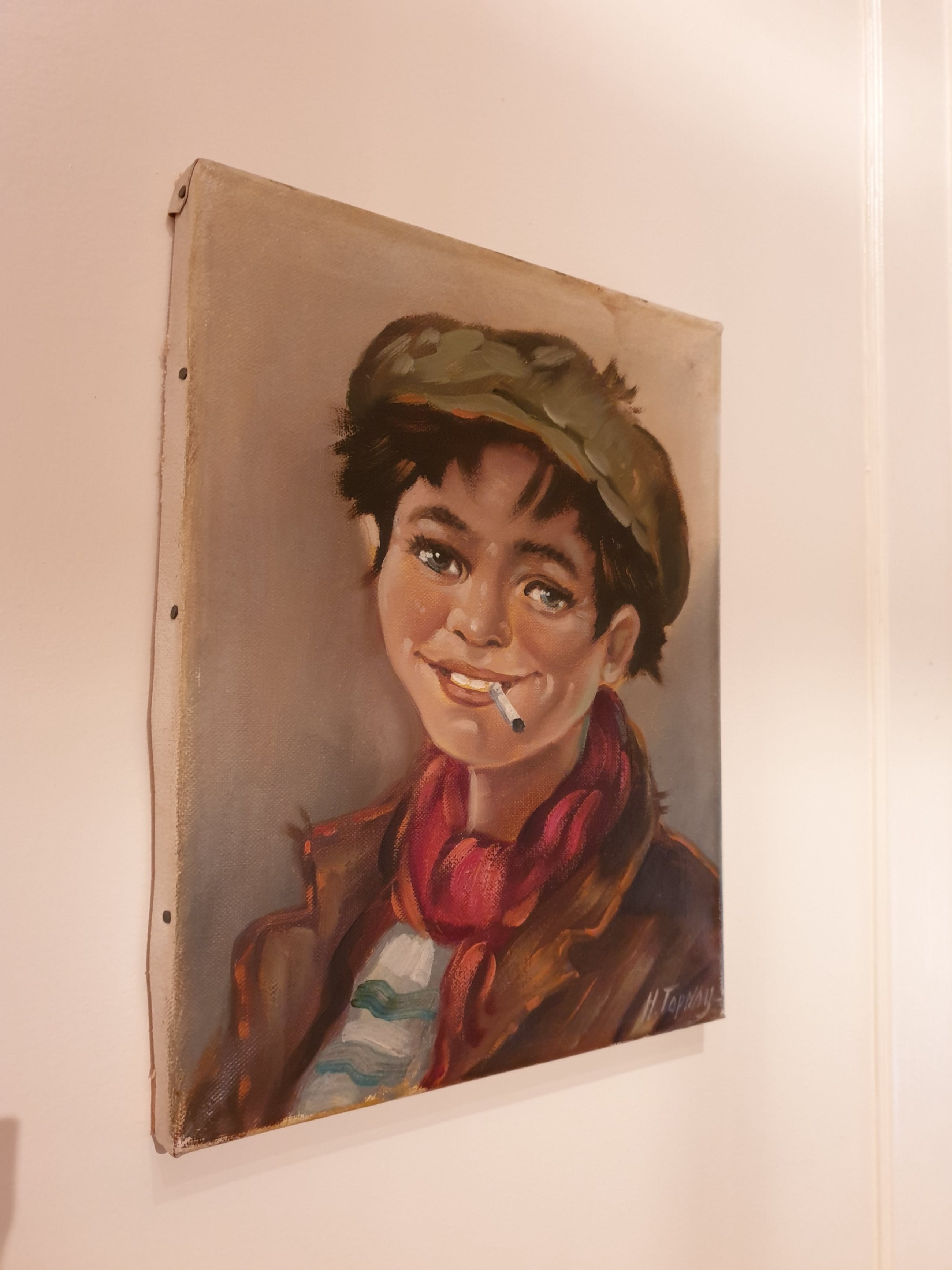 Prachtig portret van een jongetje met een sigaret geschilderd door H. Topman.