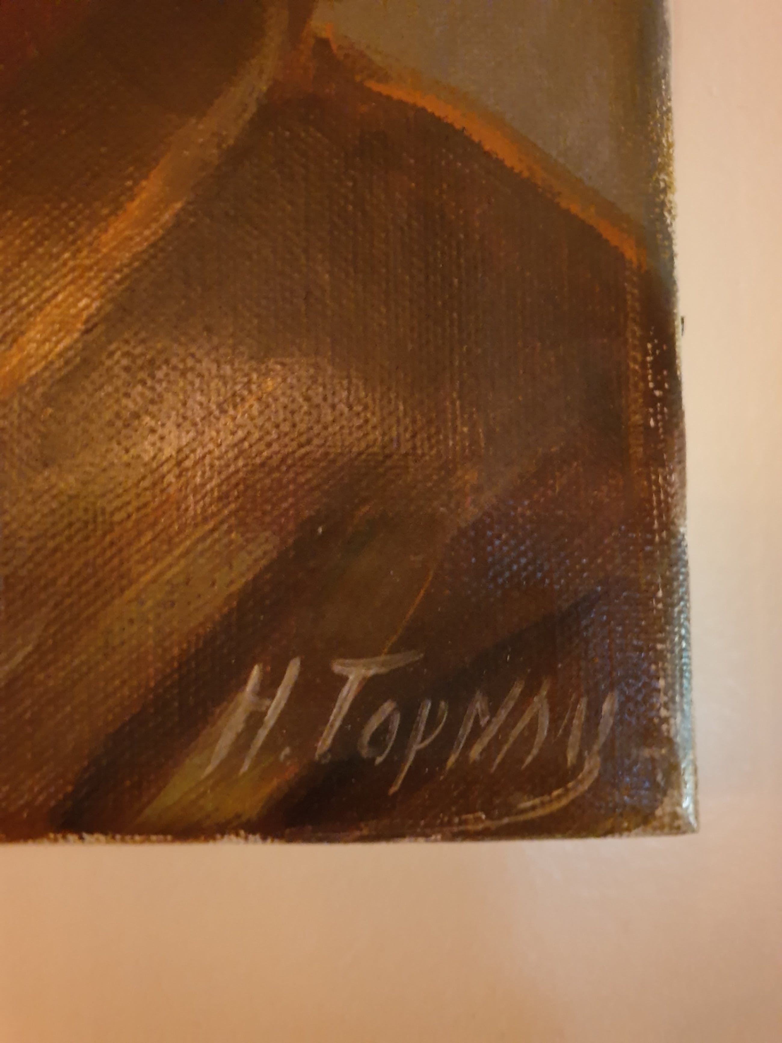 Het schilderij is geschilderd op een linnen doek met olieverf, in perfecte staat