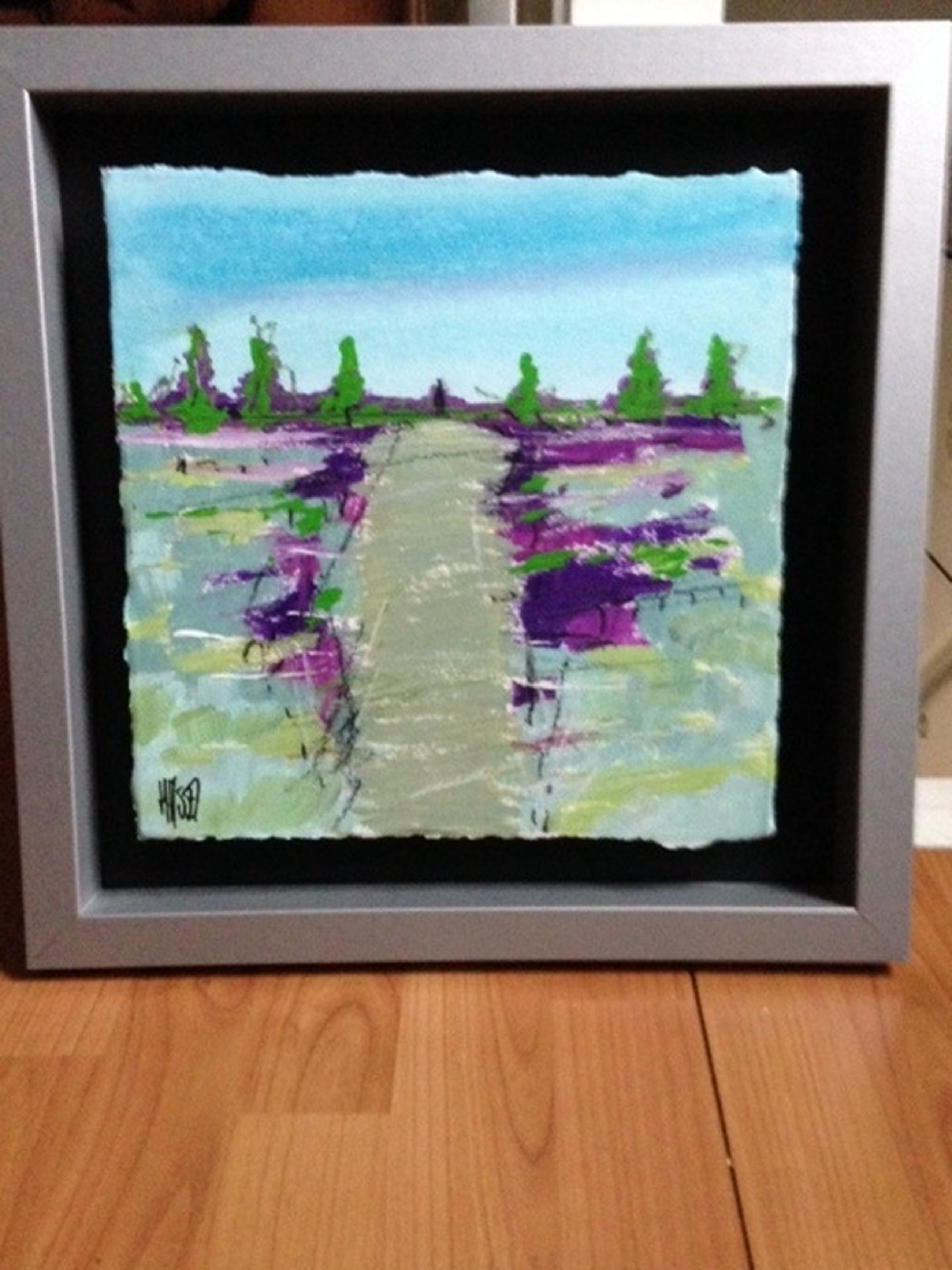 zwevend ingelijst in houten baklijst en voorzien van ophangsysteem