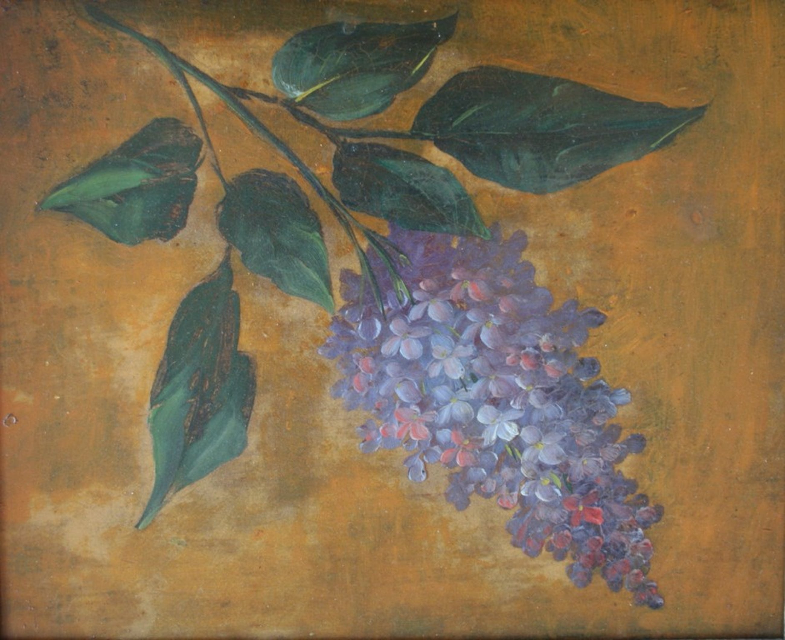 Dit schilderij, olieverf op board meet 31,5 bij 26,5 cm, komt uit de nalatenschap van Jopie Knoop, kunsthandelaar uit Amsterdam. De goudkleurige lijst is circa 4 cm en heeft gebruikssporen. Afmeting met lijst circa 48 x 40 cm.