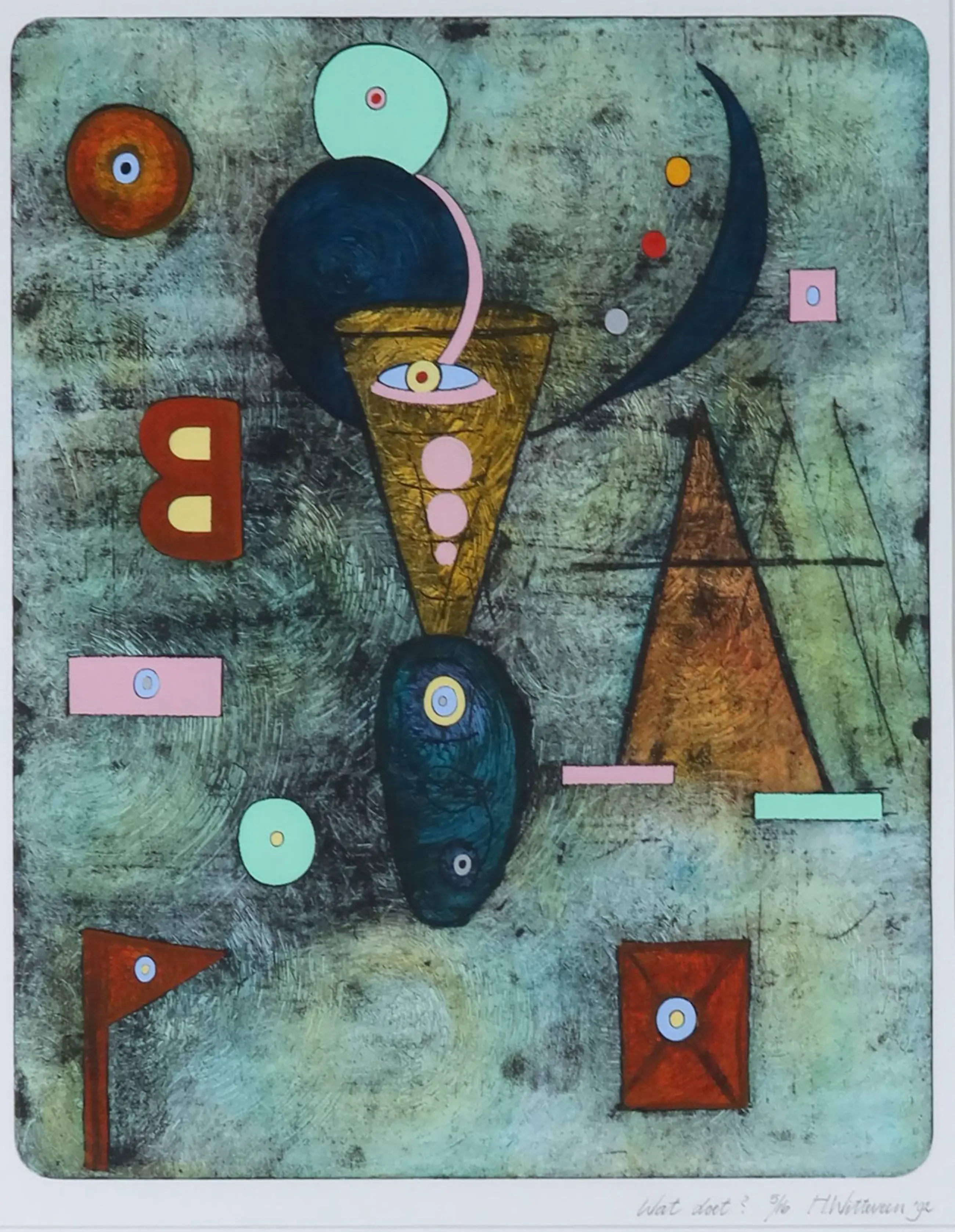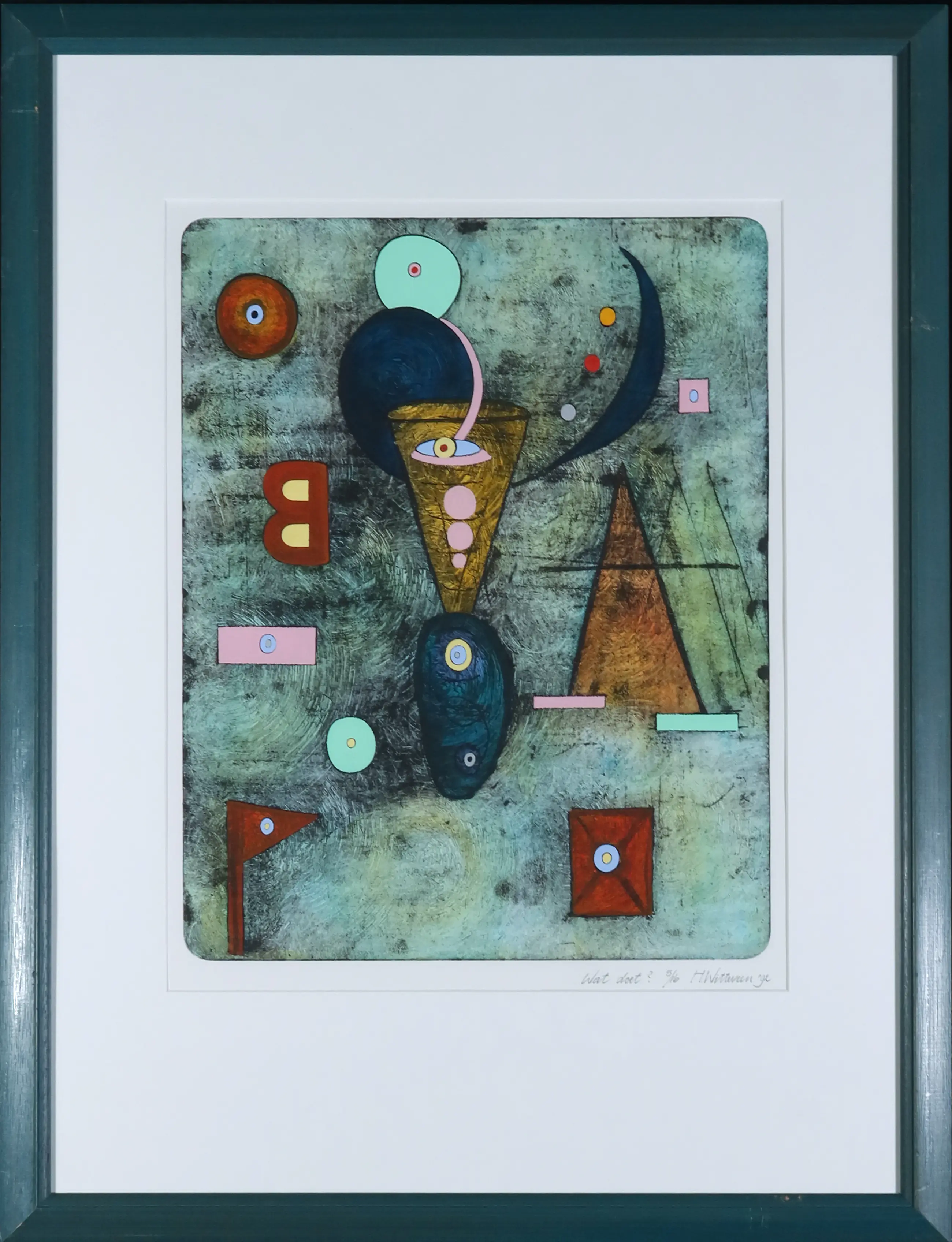 Ingelijste ets, handbewerkt met gouache door Hollie Witteveen.