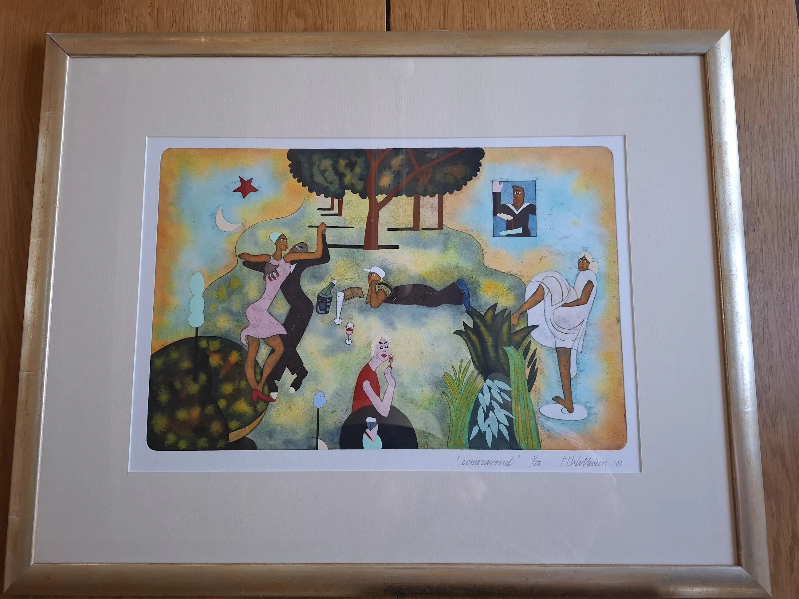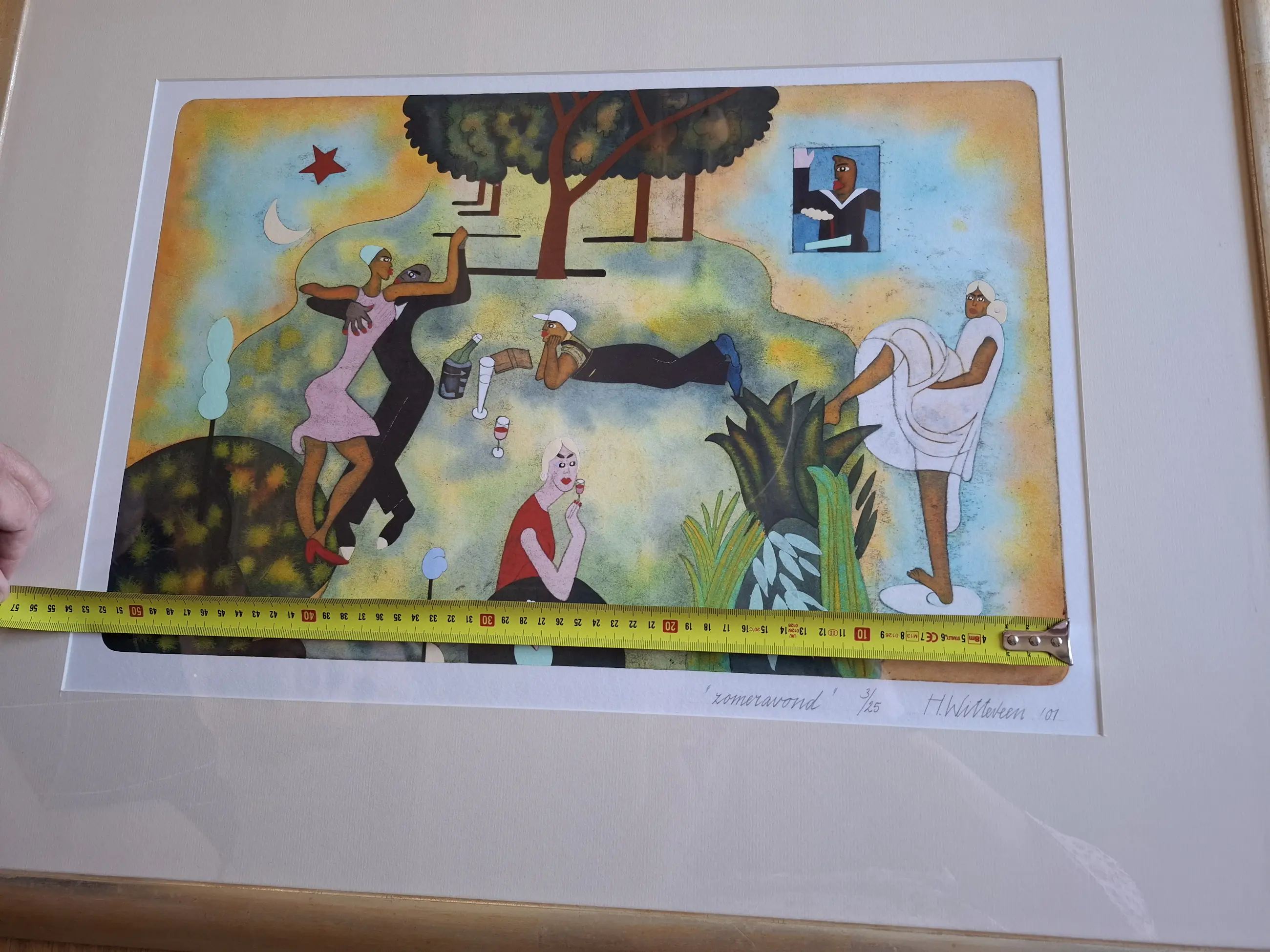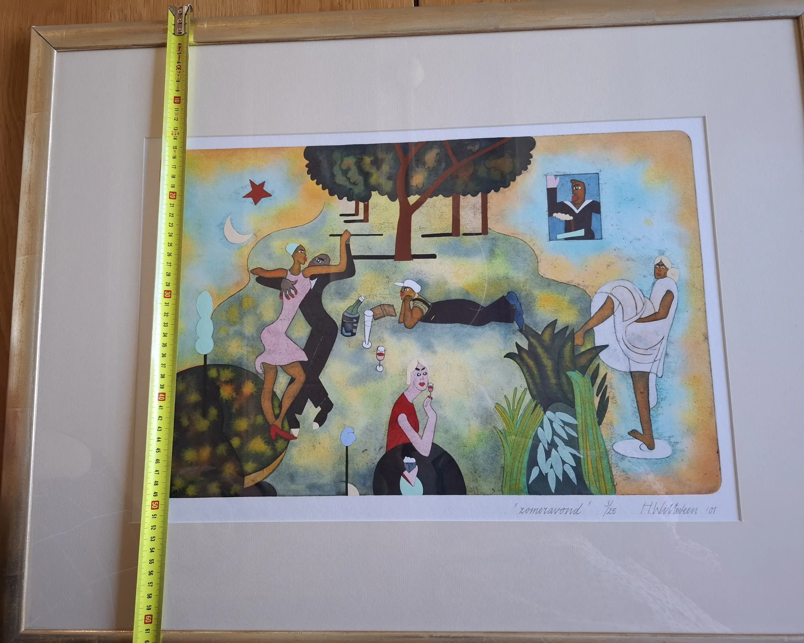 Uiteraard proffesioneel ingelijst etc, mooie zware kwaliteit goudkleurige lijst. Komt uit een kunst gallerie in Deventer.