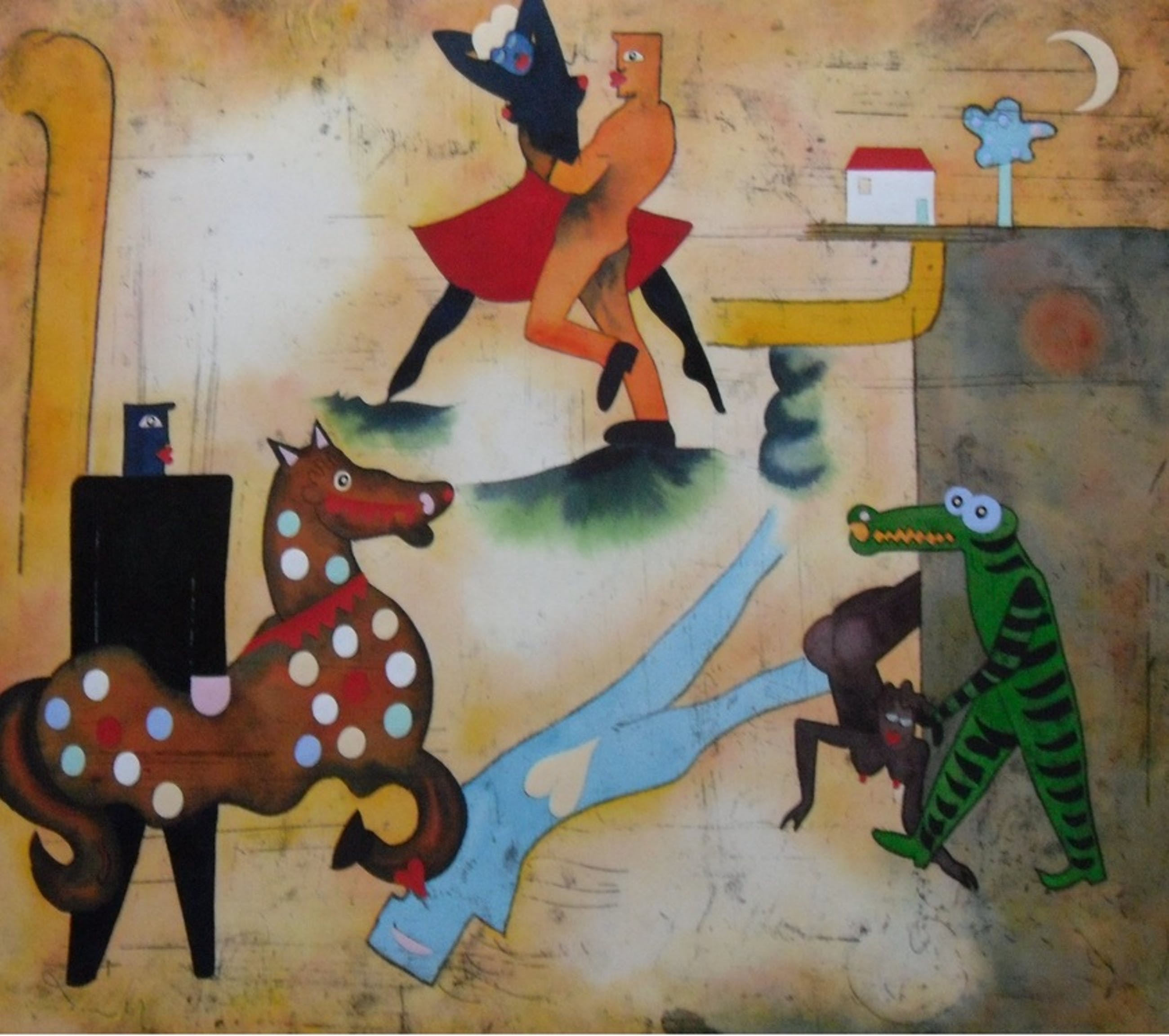 Prachtige met de hand ingekleurde ets van Holly Witteveen, 1998