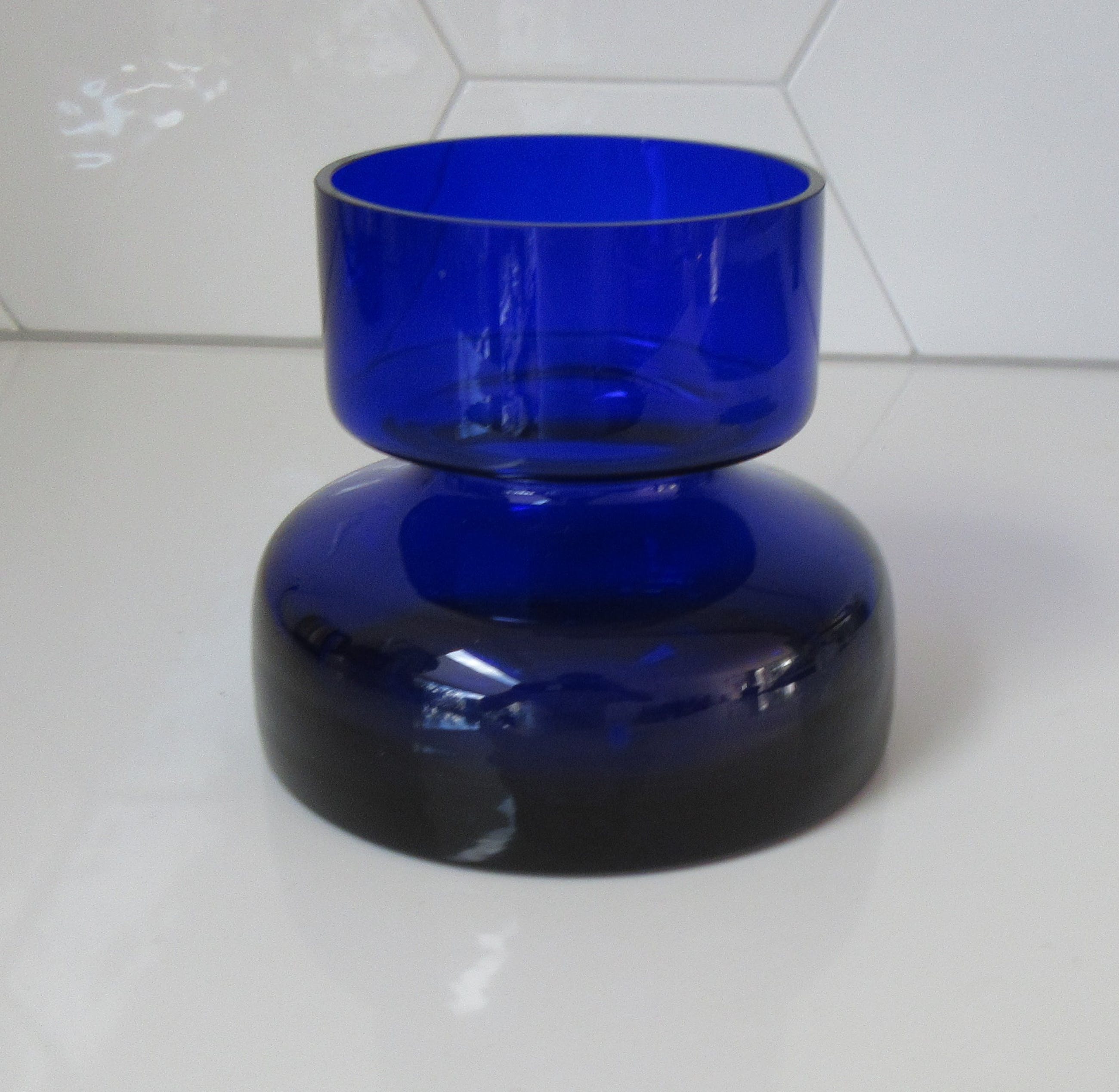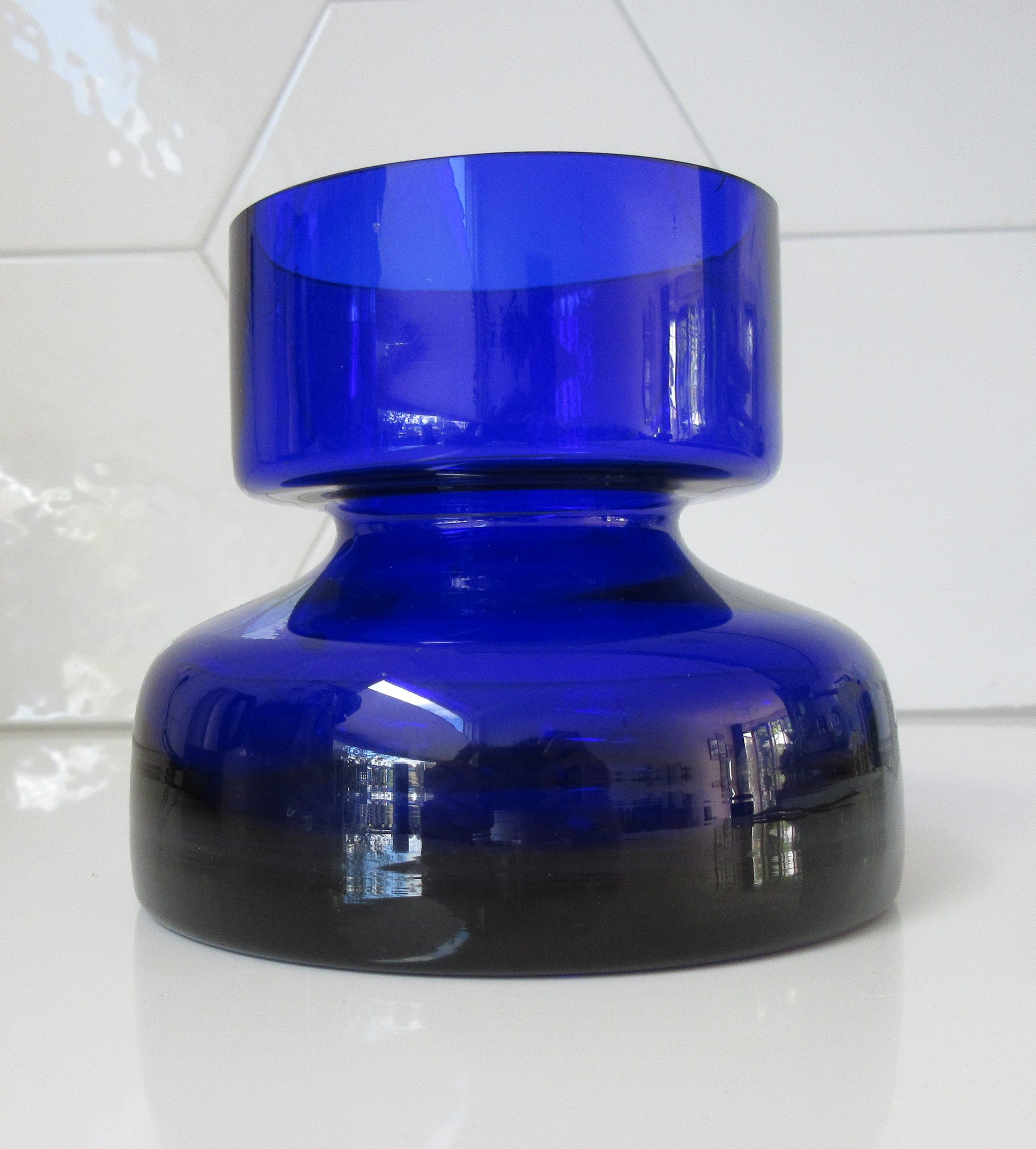 Cobalt blauw sixties vaasje van Holmegaard uit Denemarken. Niet gemerkt.