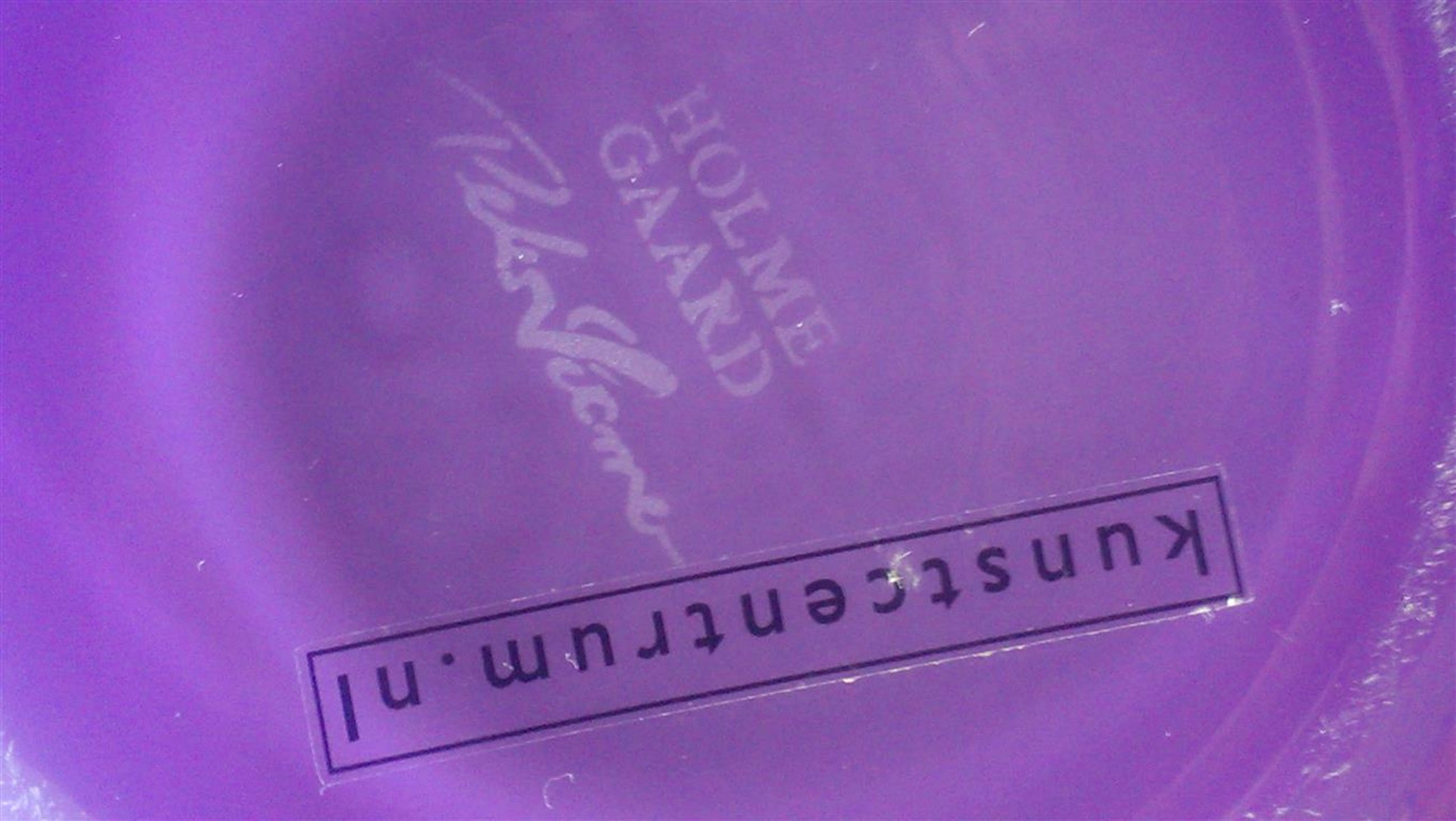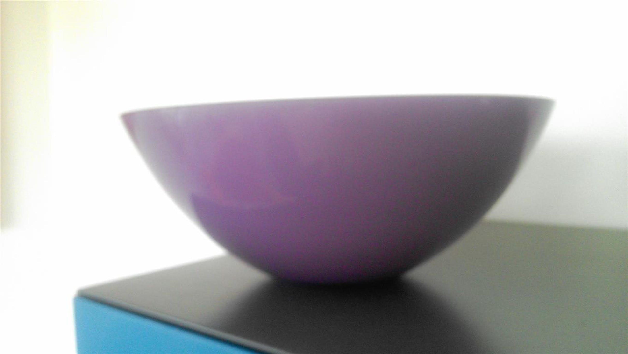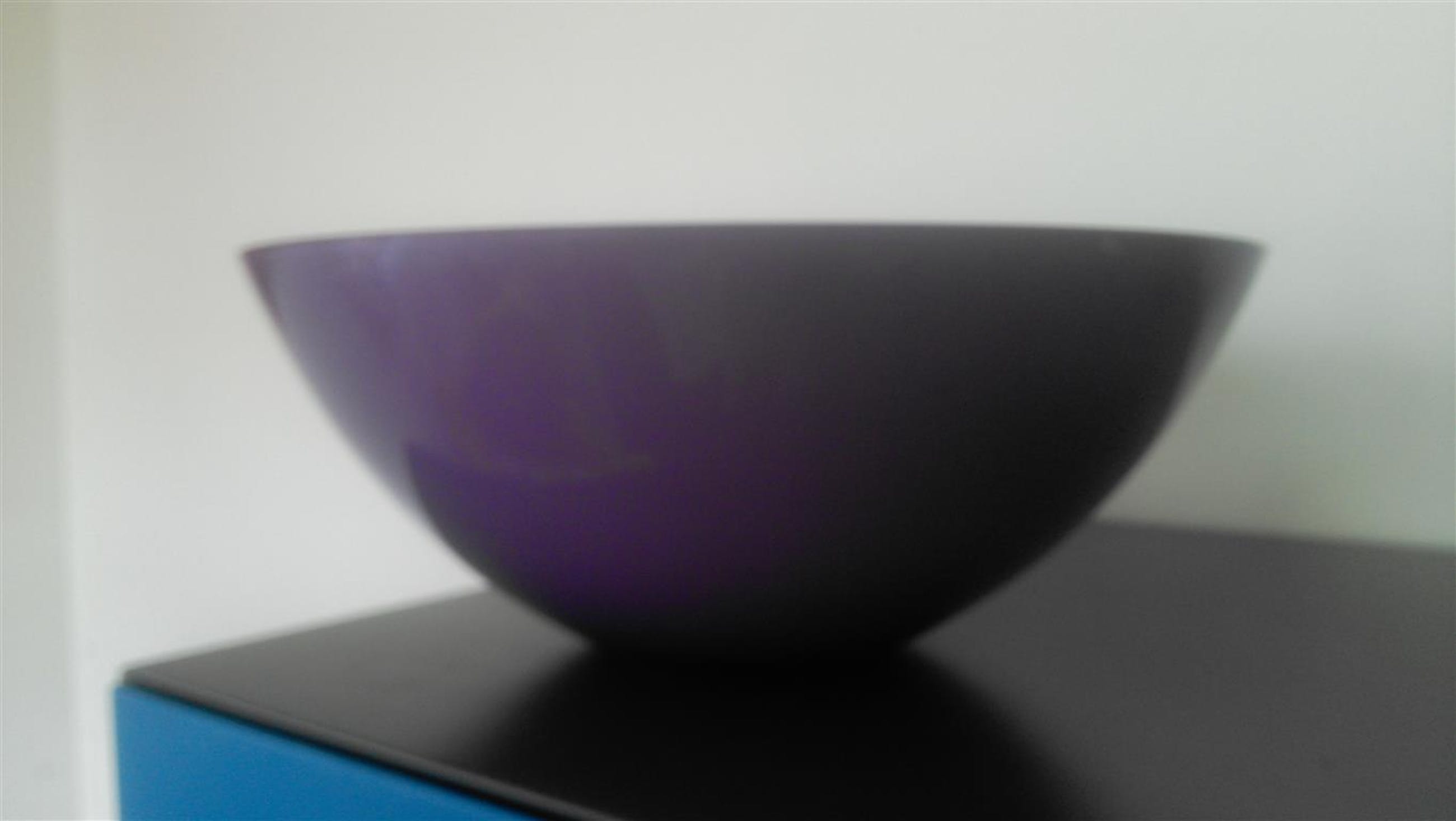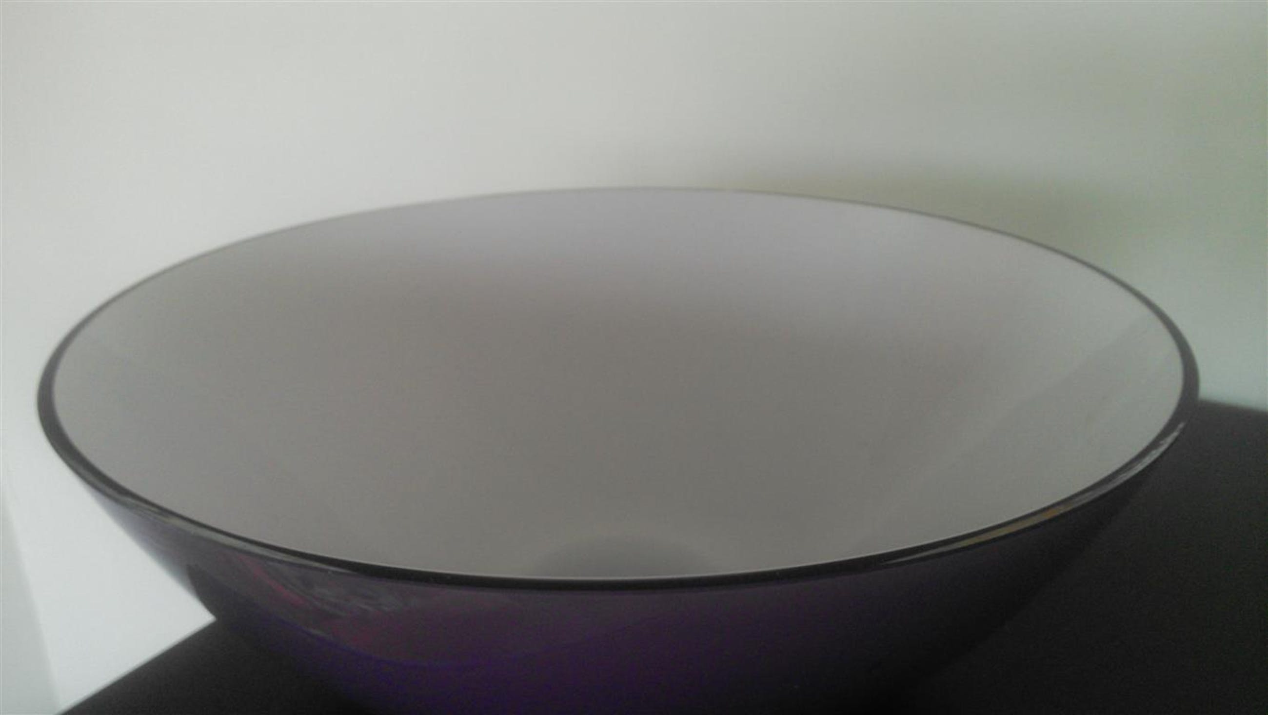 Grote schaal met witte binnenzijde en lichtpaarse buitenkant Gesigneerd Pter Svarrer en met sticker Kunstcentum. nl