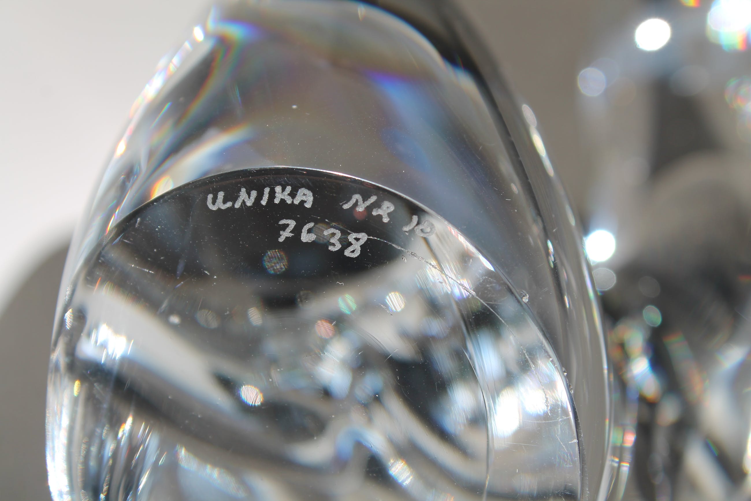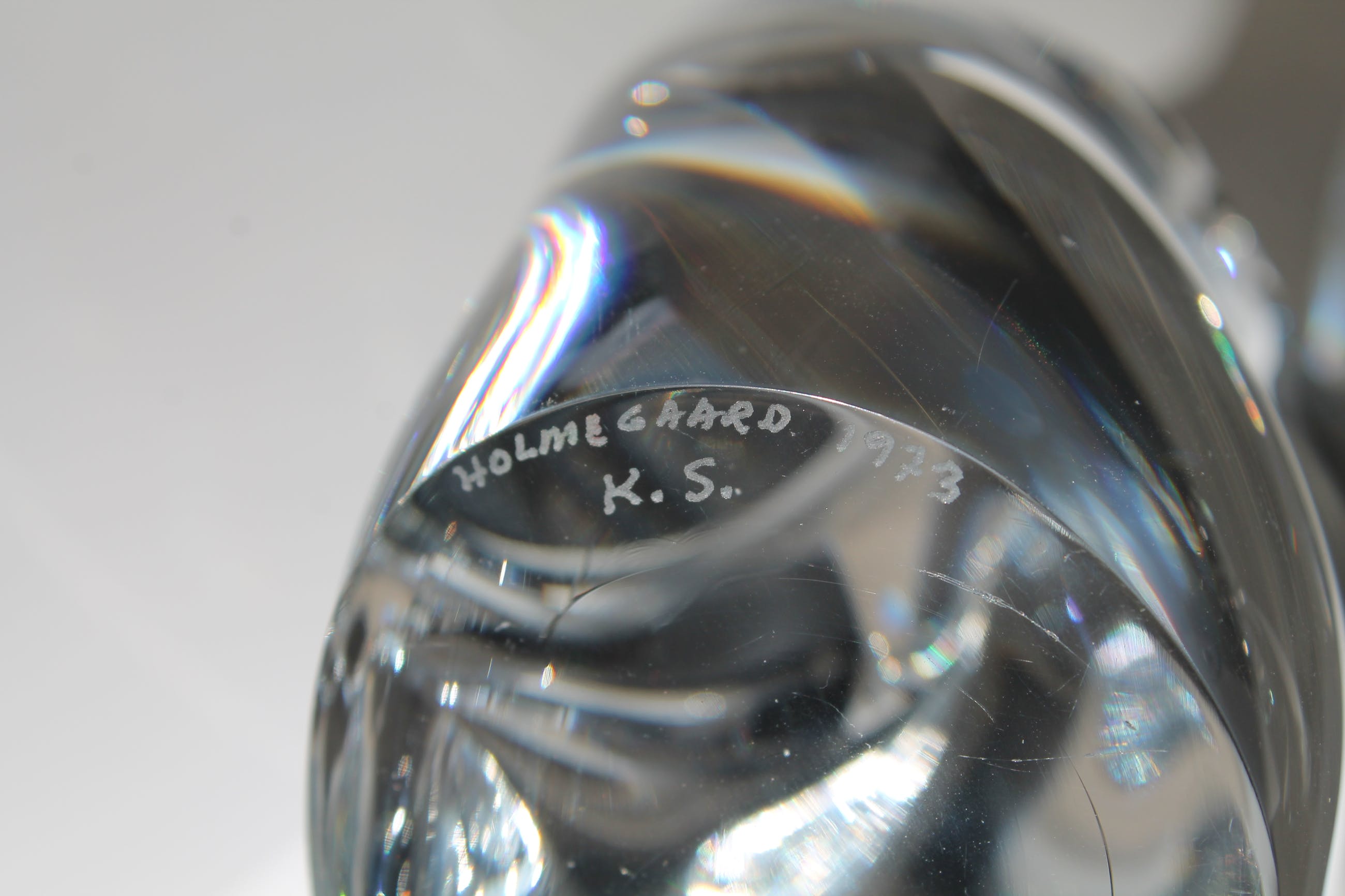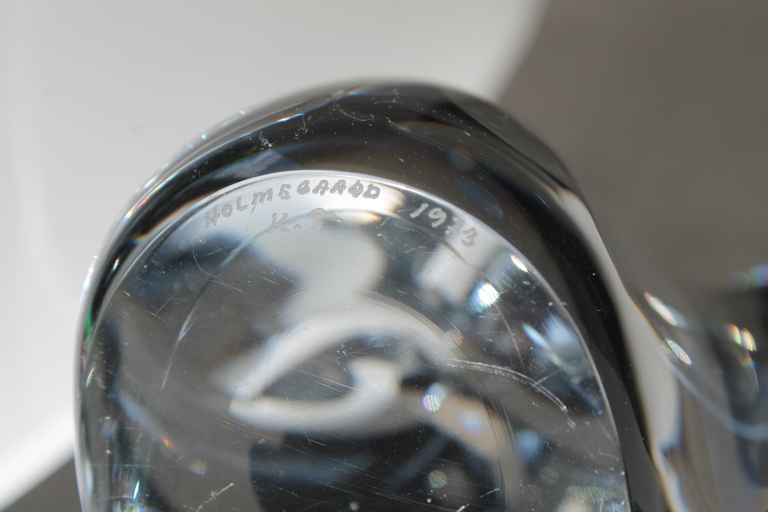 2 mooie gesigneerde sculpturen genummerd nr 10 7638 KS 1973. Kylle Svanlund werkte als freelance-ontwerper bij Holmegaards Glassworks van 1961 tot 1977.