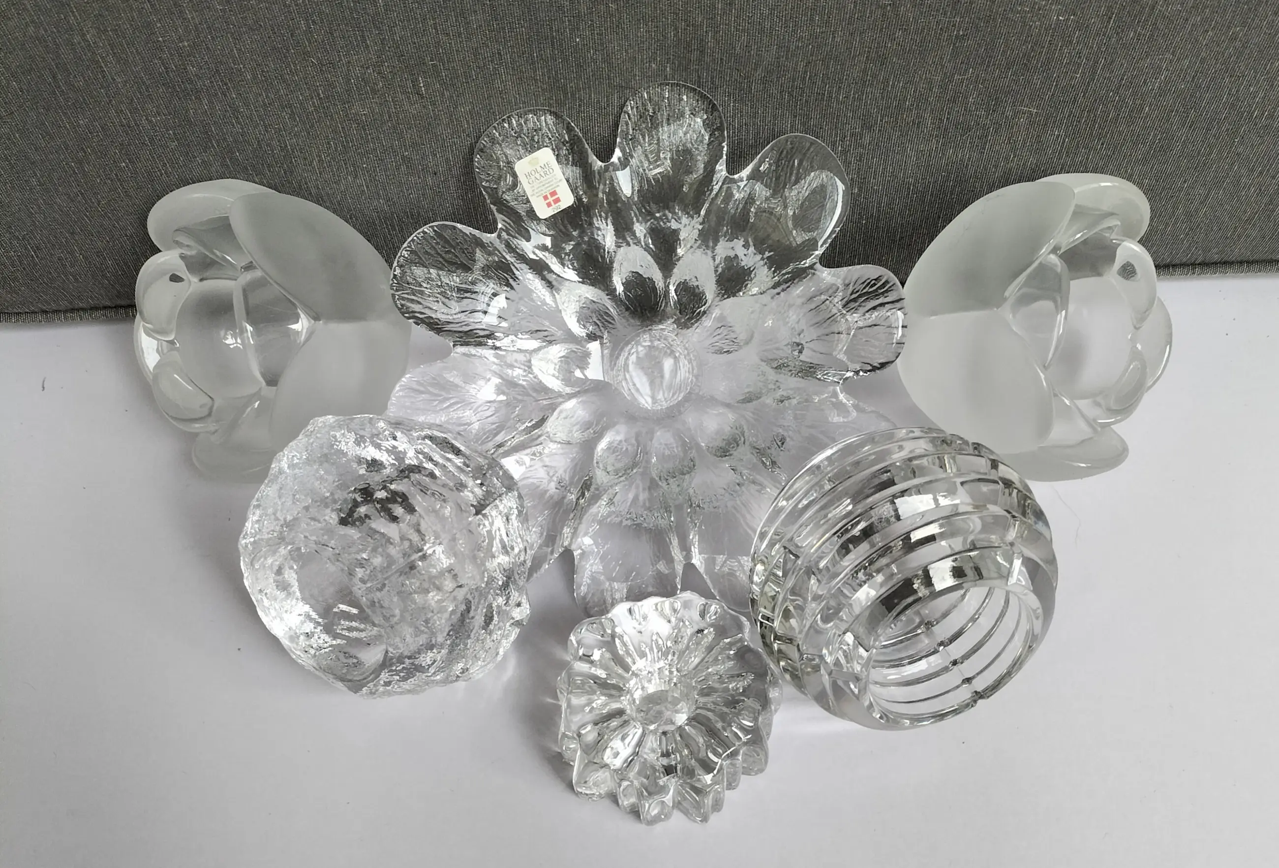 De afmetingen zoals vermeld zijn van de houder van Holmegaard, die is het breedst, de hoogste houder is 8 cm. De kleine prachtige Nautilus is alleen geschikt voor een kaars, de andere houders ook voor waxinelichtjes.