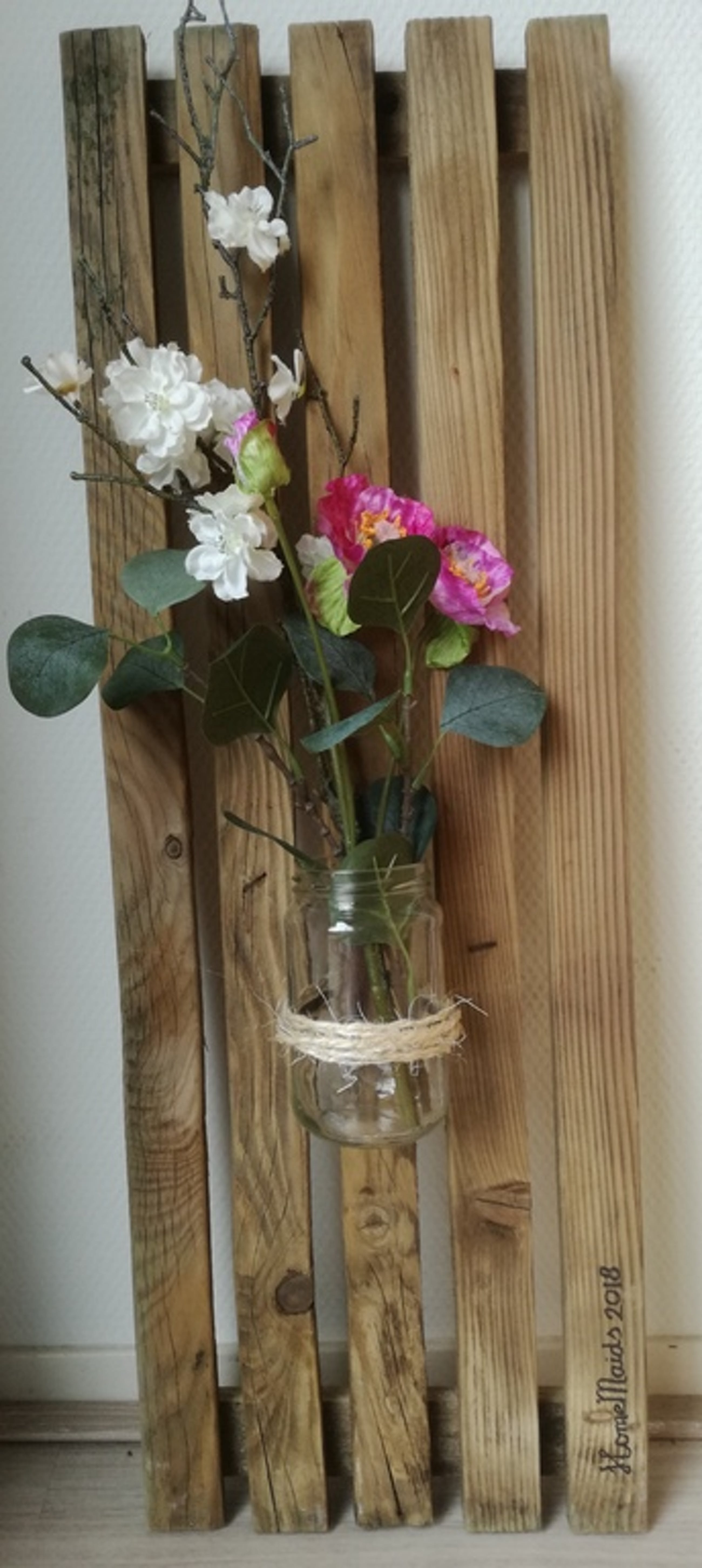 Op een houten rek, in een glazen vaasje