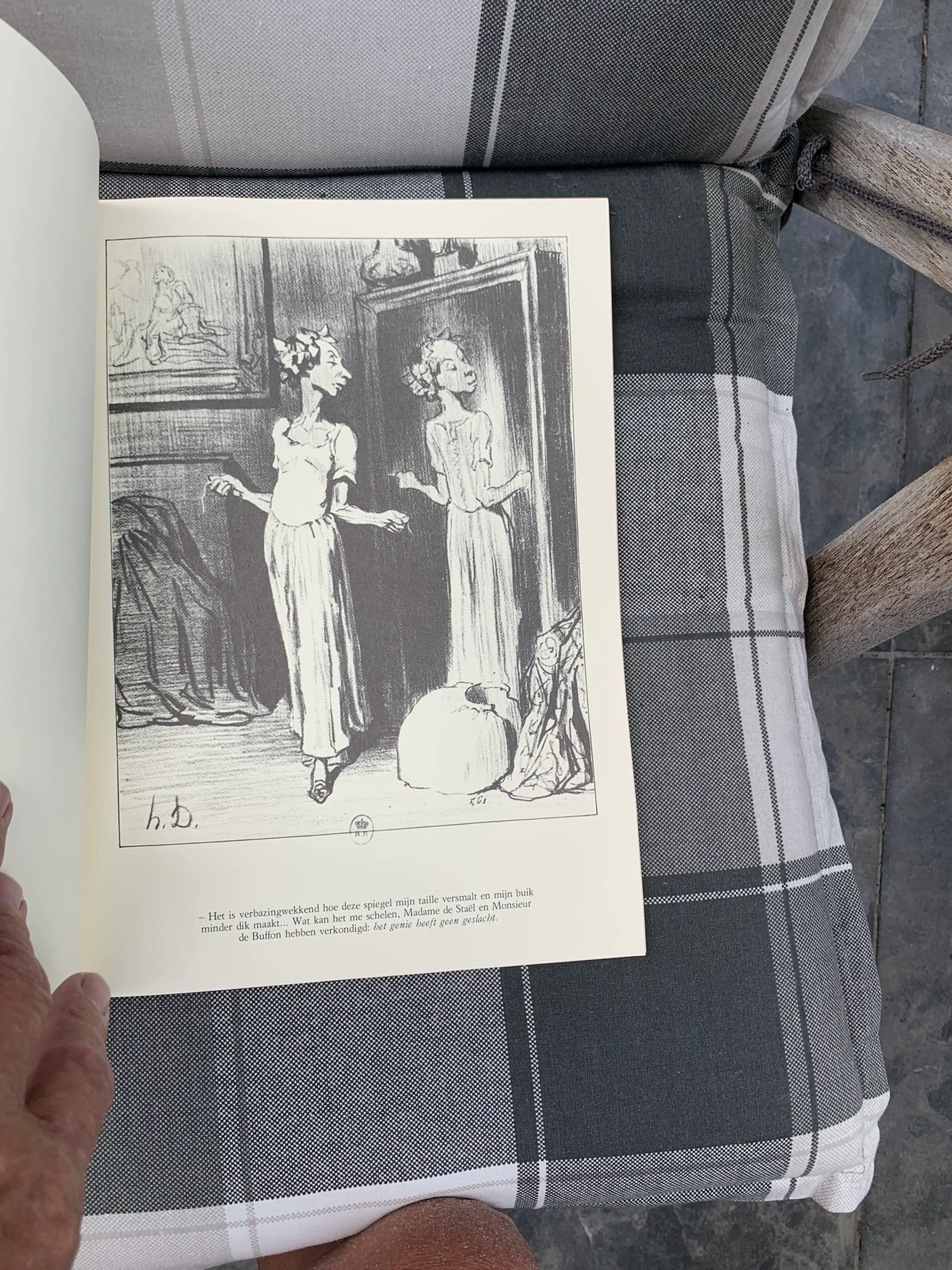 Een verzamelband met 25 afbeeldingen van cynische litho’s over de vrouwenbeweging eind 19e eeuw. Honoré Victorien Daumier(1808-1878) was een Franse veelzijdige kunstenaar die tijdens zijn leven bekend stond als politiek en sociaal satiricus waarvoor hij o.a. zes maande gevangenisstraf voor uitzat. Bij zijn dood was hij praktisch blind.