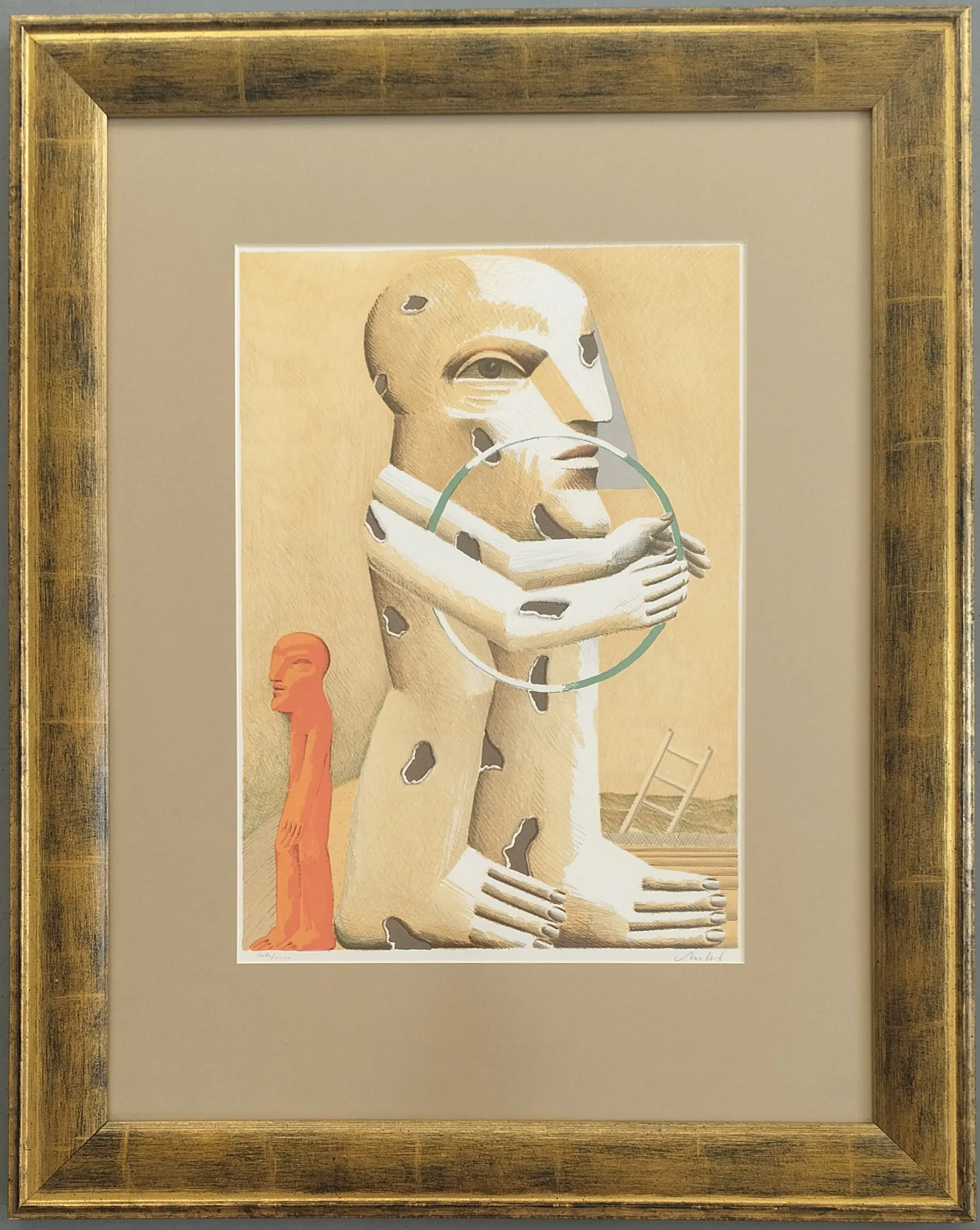 Litho van de kunstenaar Horst Antes (1936) Het werk is rechtsonder gesigneerd en linksonder genummerd 7080/10000. Afmeting beeld 41 x 29 Afmeting lijst 69.5 x 55.5 cm (hxb) De litho en houten lijst met ontspiegeld glas zijn in prima staat.
