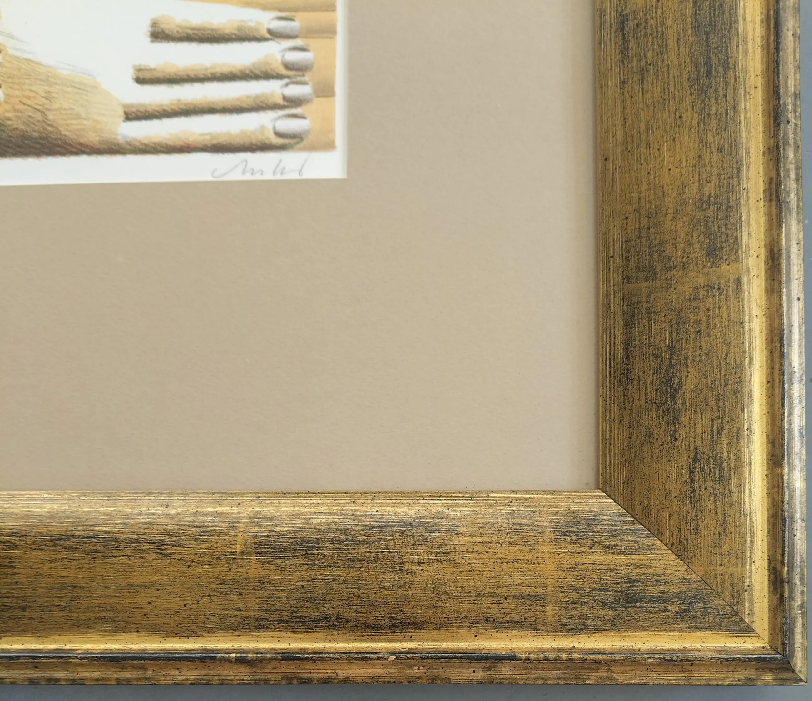 De litho en houten lijst met ontspiegeld glas zijn in prima staat.