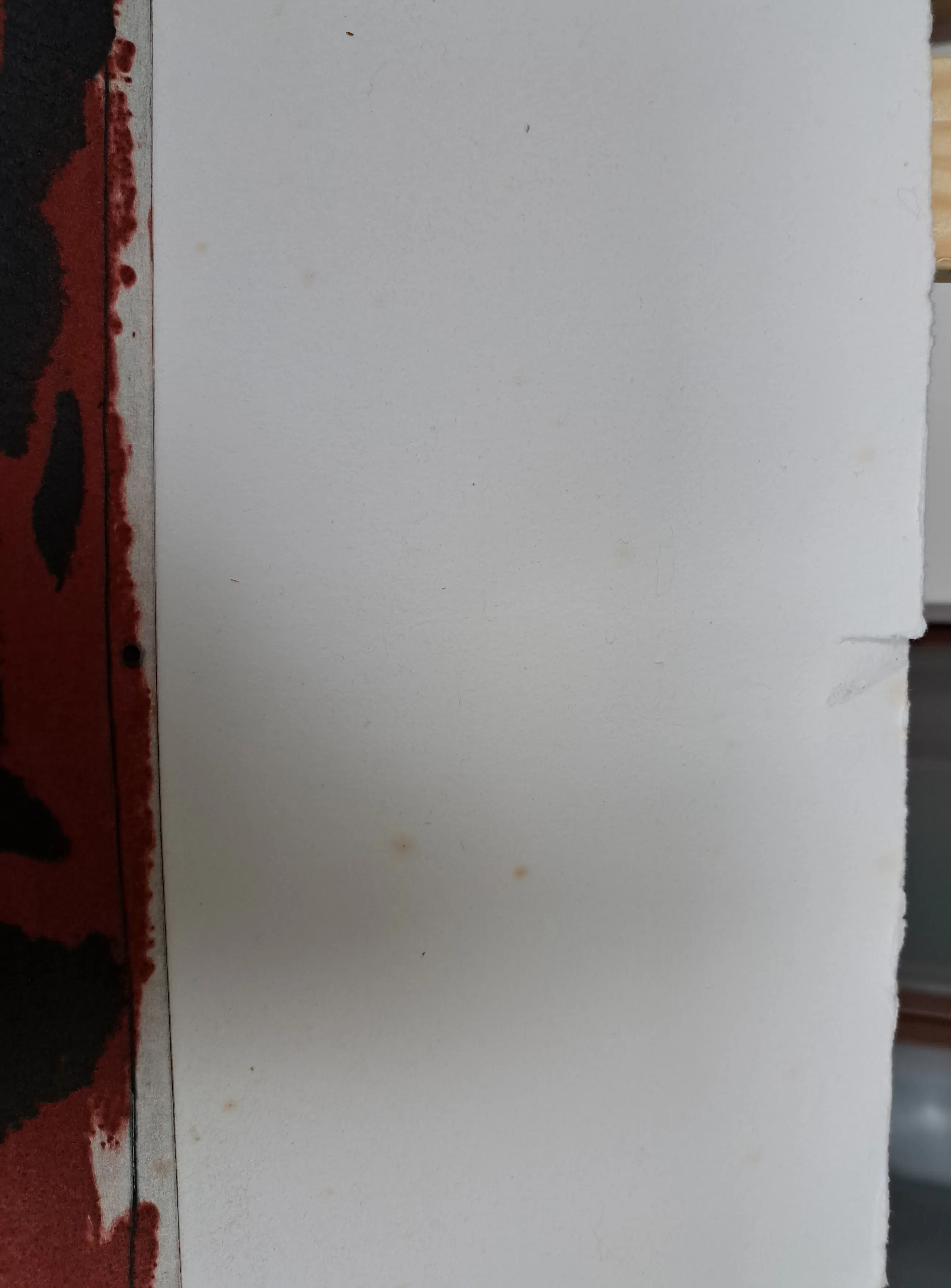 In marge van ets spotvlekjes, klein scheurtje en vrouwtjes.