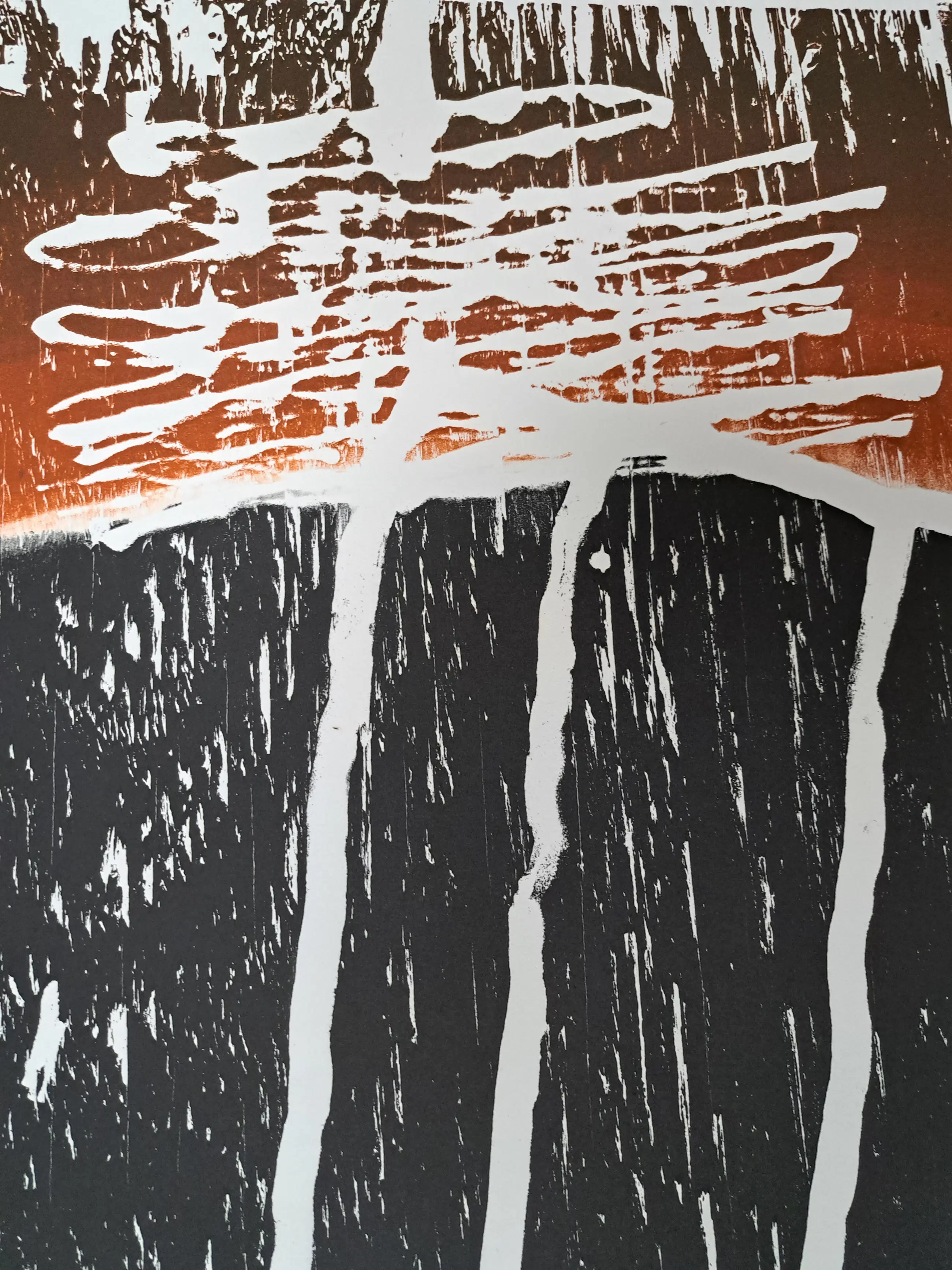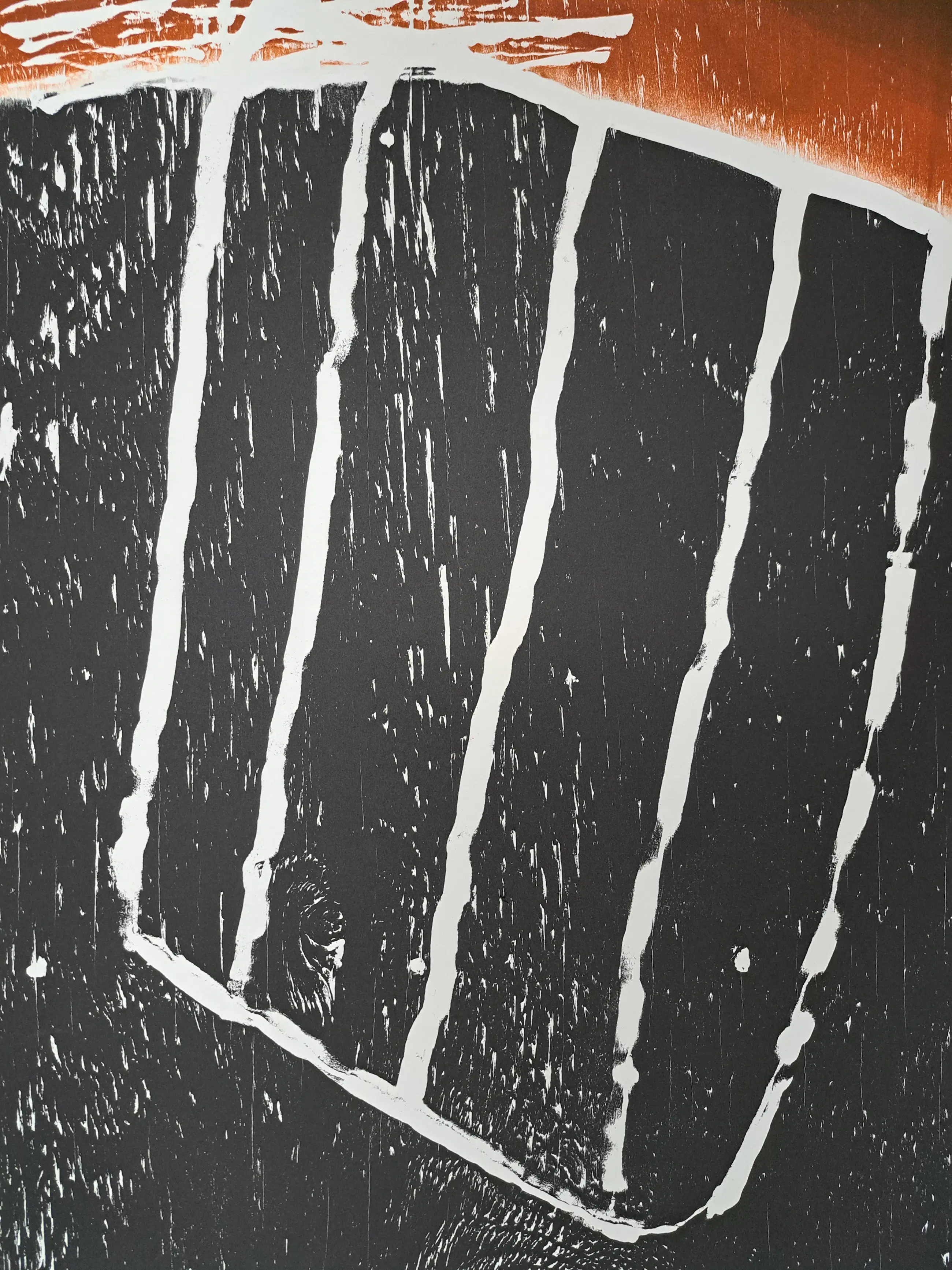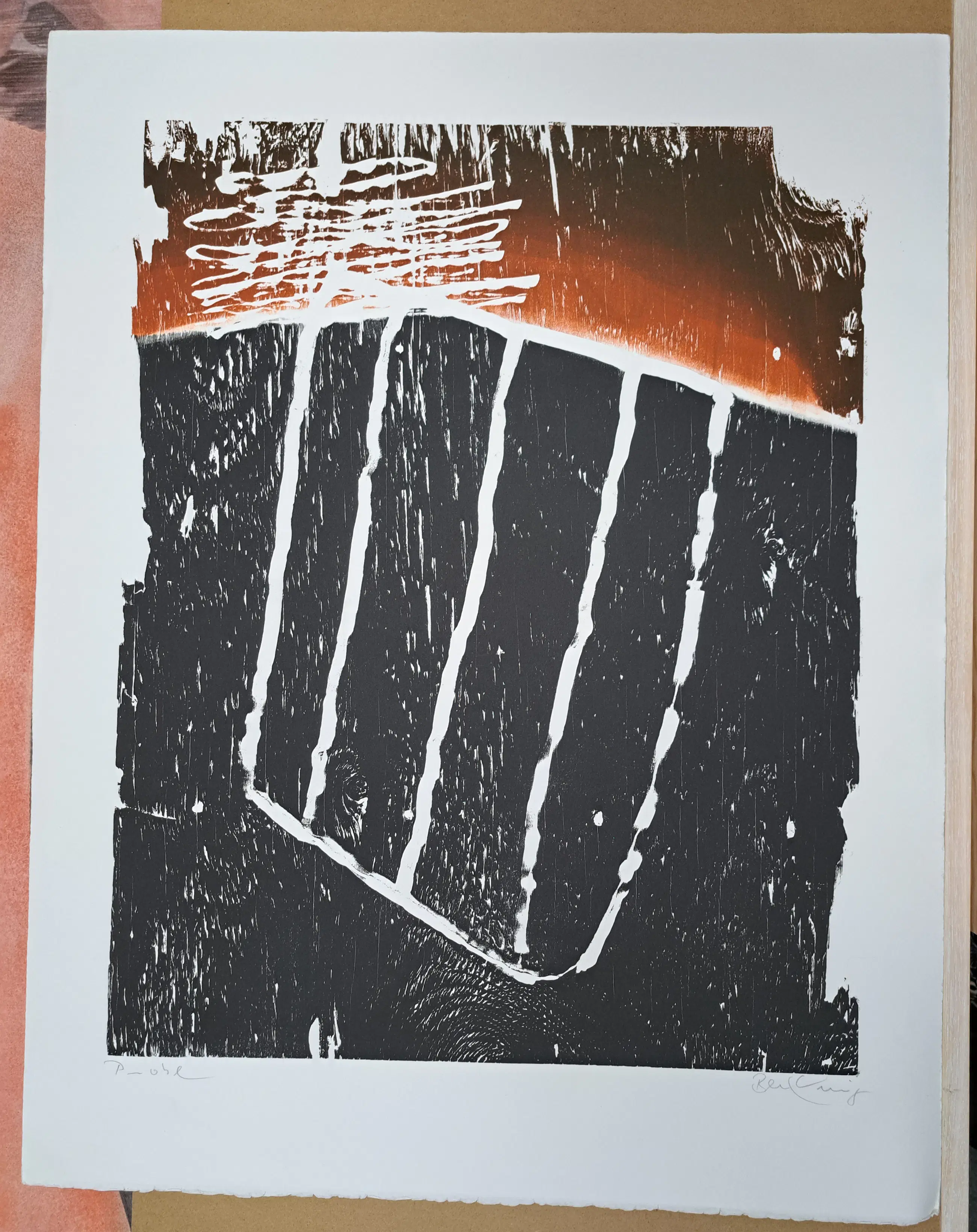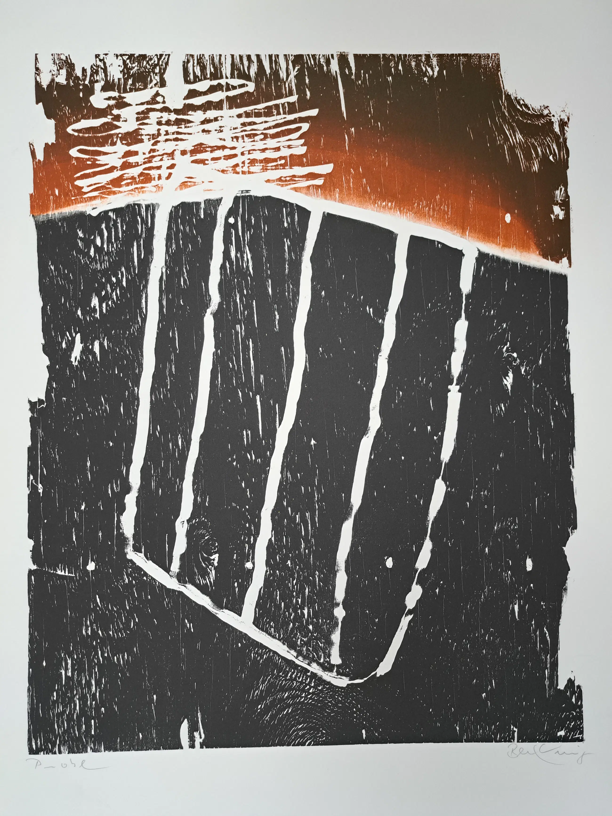 BECKING Horst (°1937) Ohne Titel Kleurhoutsnede Getekend en vermelding "Probe" Afmetingen houtsnede : 72 x 57 cm Afmetingen blad : 90 x 70 cm