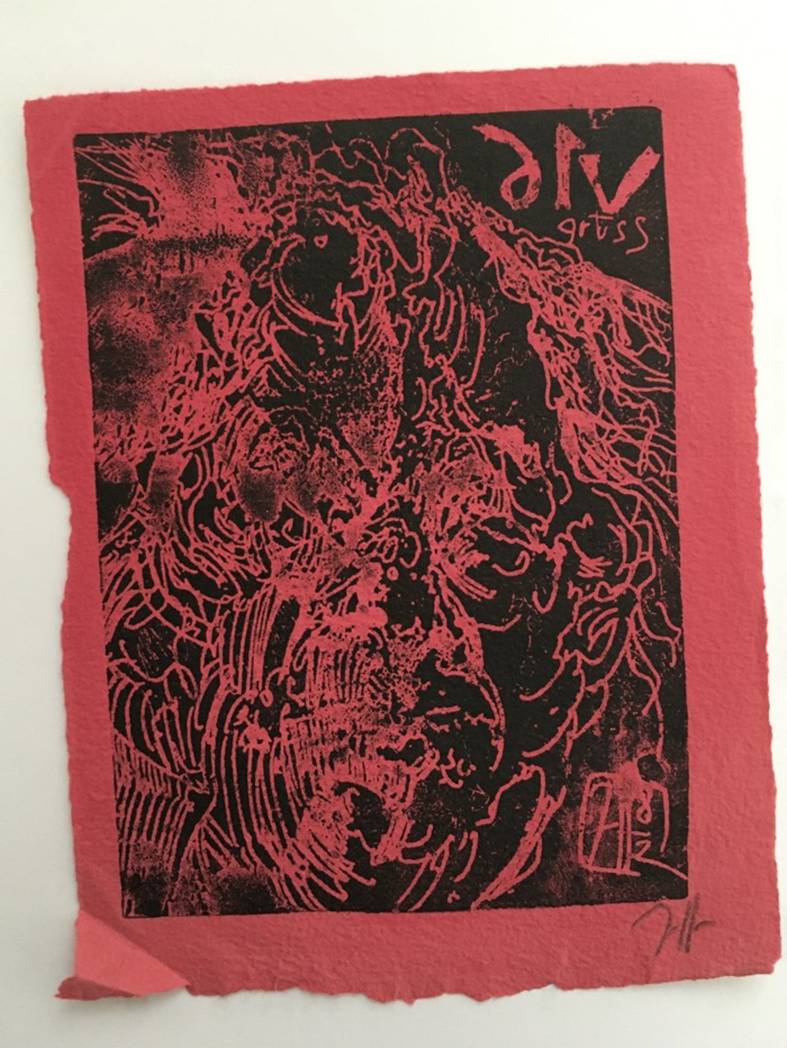 Radierung auf Japanpapier, Blatt ca. 12x16 cm, Negativdruck, signiert.
