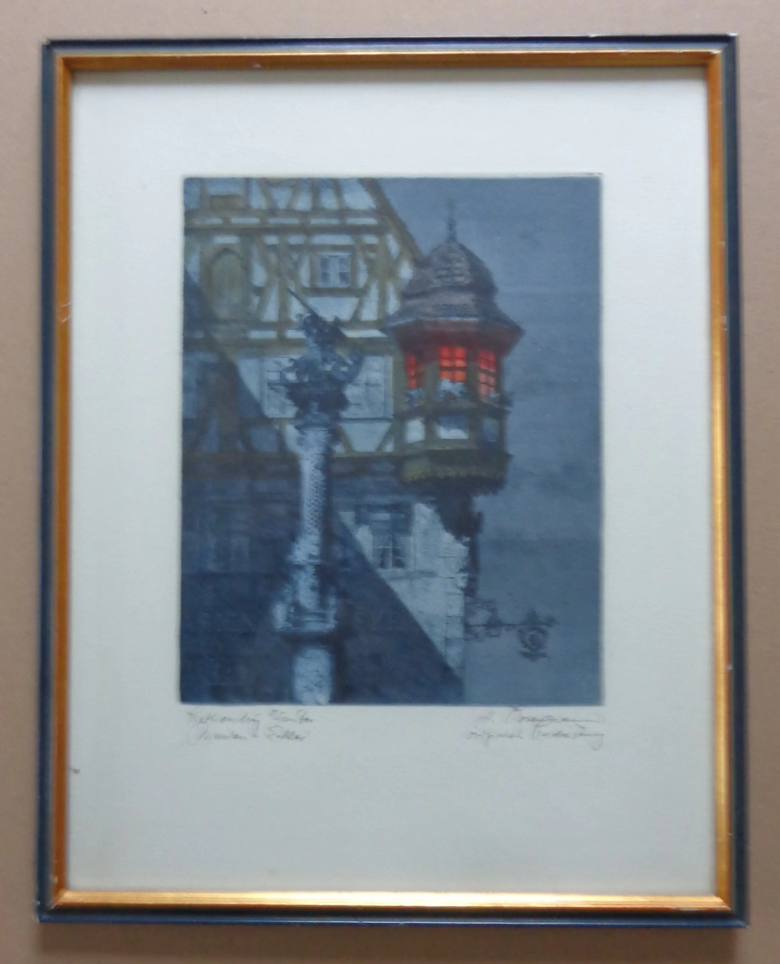 Horst Rosemann (°1927). Titel: "Marienerker". Kleurets op papier. Gesigneerd met potlood. Geen nummering. Verso etiket Galerie "Ernst Geissendörfer", Rothenburg/Tauber (Germany). Blad: 41x32cm. Kader: 44x35cm. Goede staat.