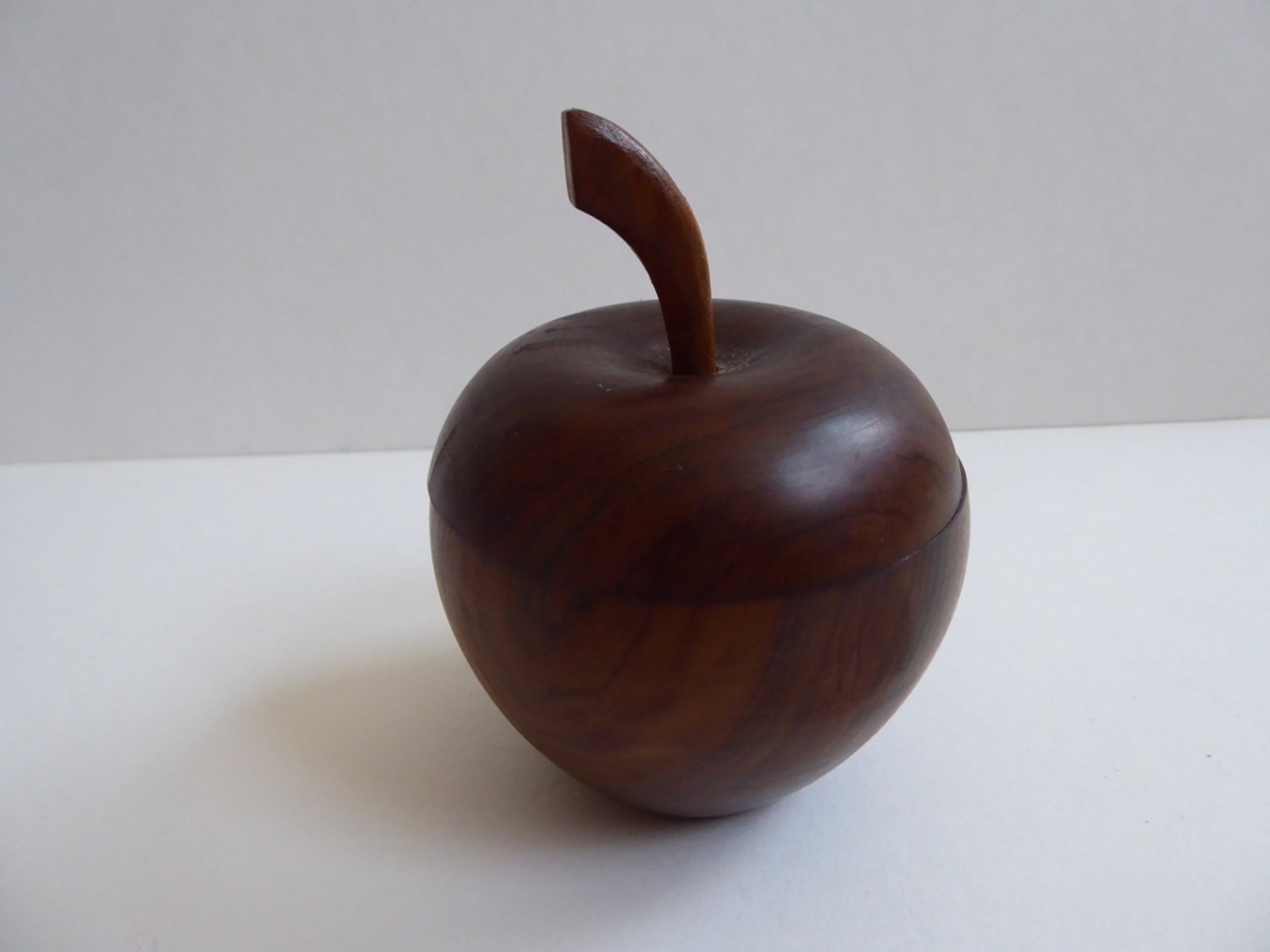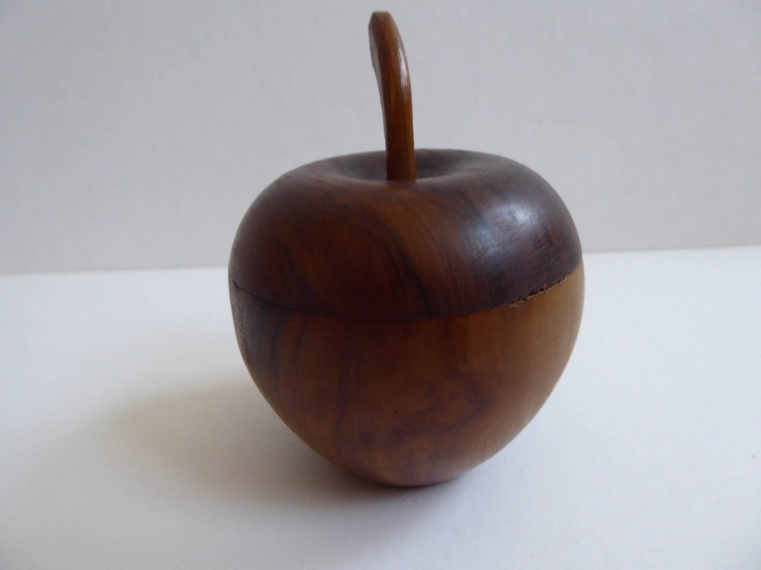 Dit jaren '60-appeltje kan open. Het is inclusief steeltje 8,5 cm hoog en 6 cm breed. Het is in zeer goede staat.