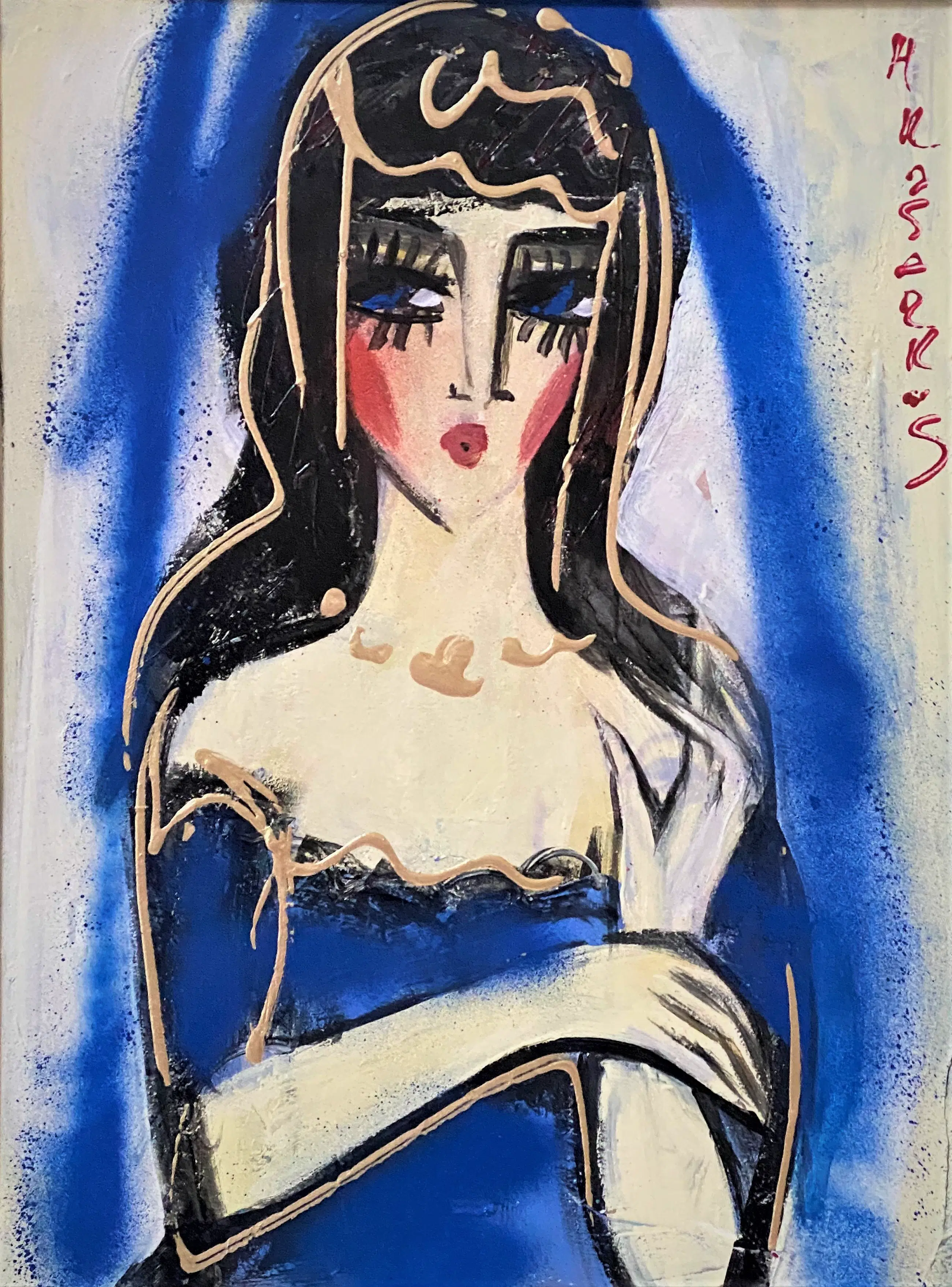 acryl op paneel - goede staat als nieuw - gesigneerd. Hrasarkos 1975 Frankrijk bekend artist kunstenaar in moderne kleurrijke werken .