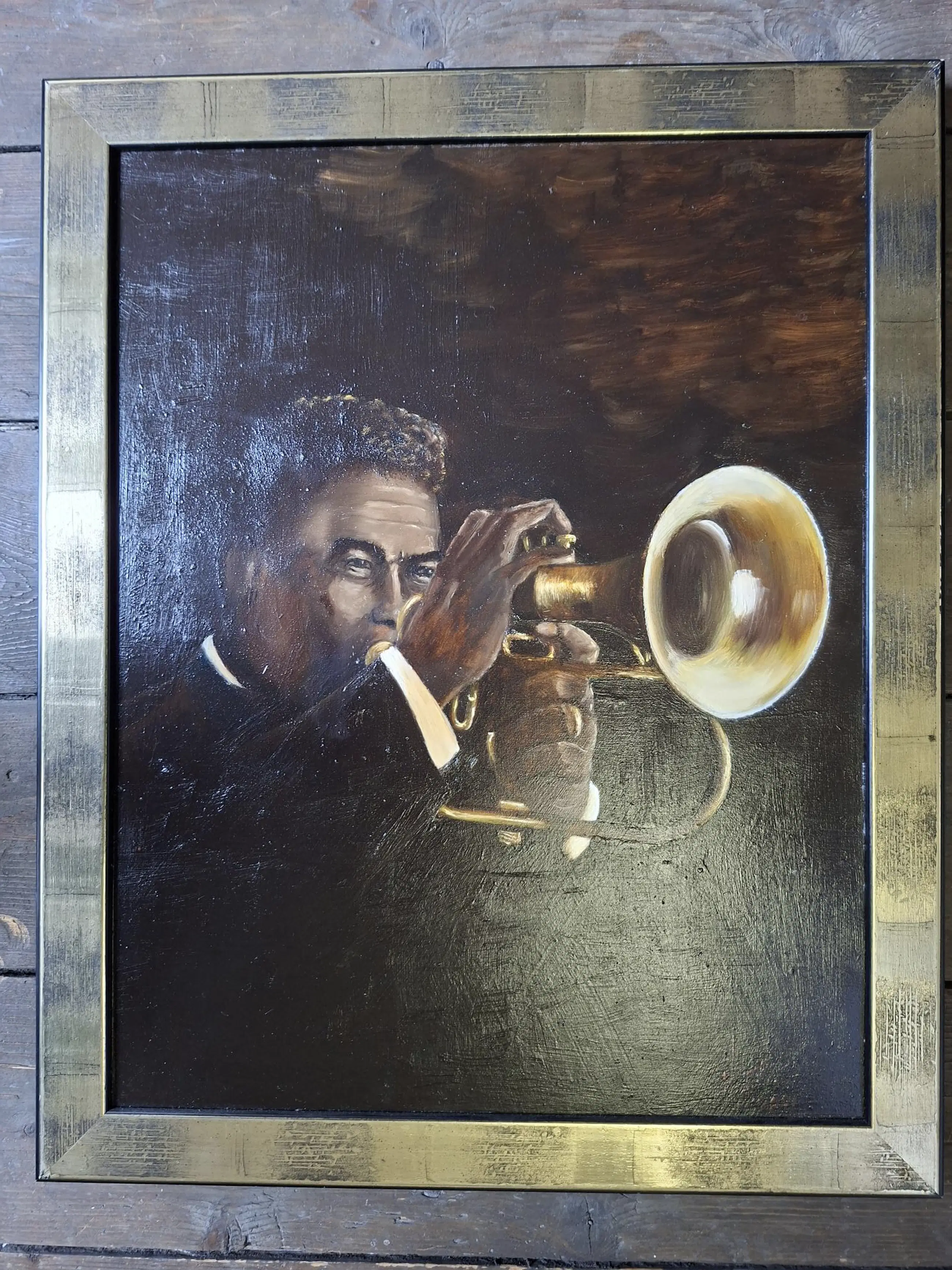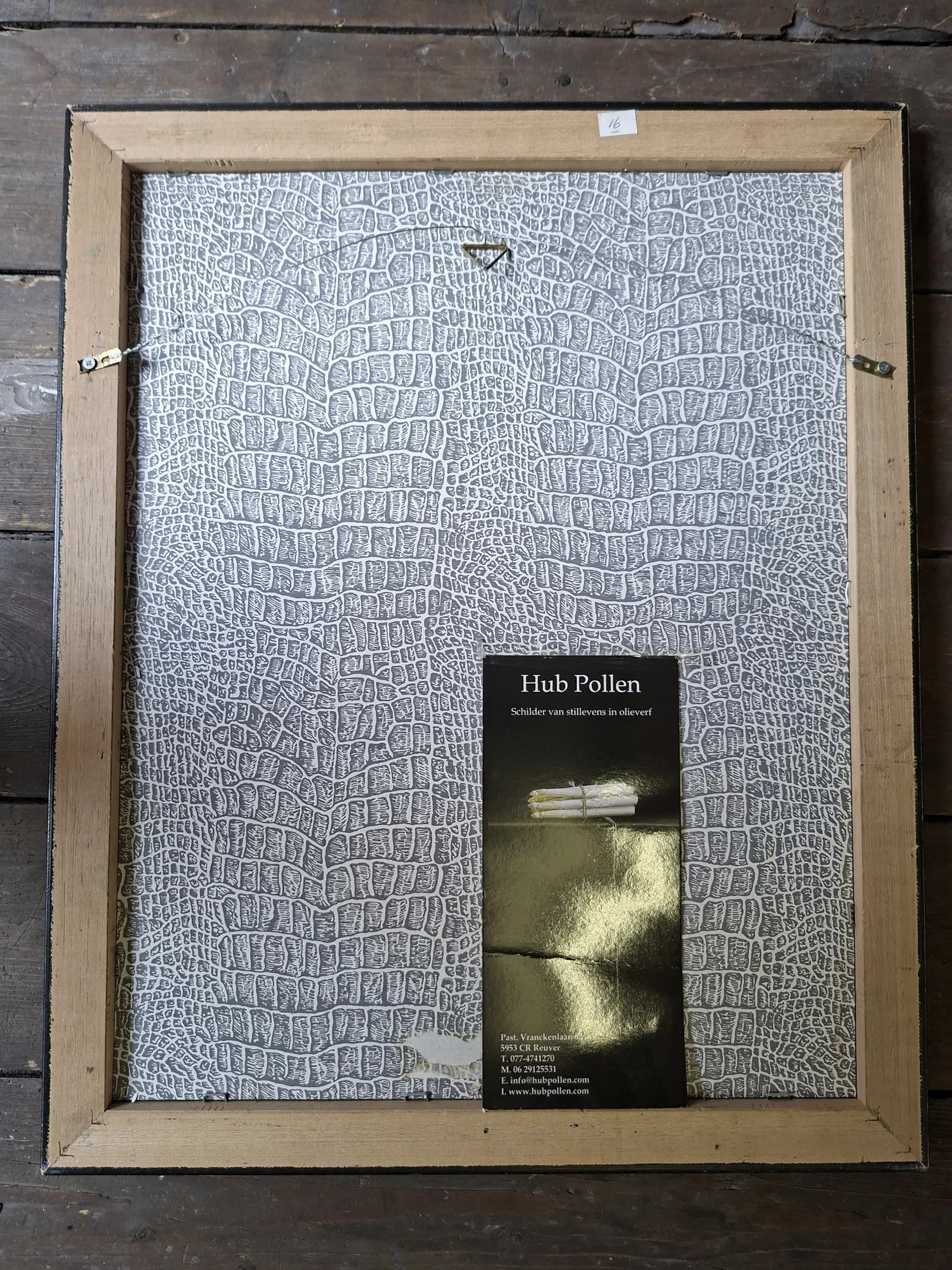 Mooi olieverf schilderij van Huub Pollen realistische schilder. in goudkleurige lijst.