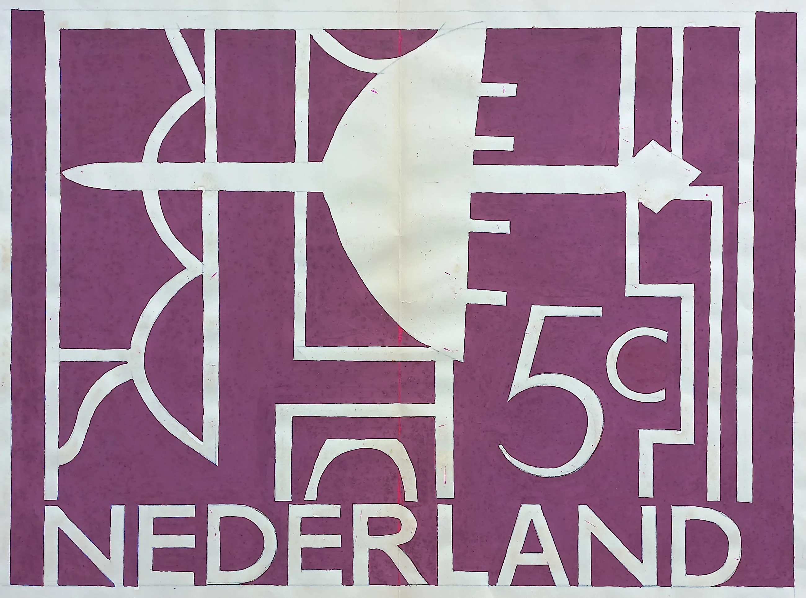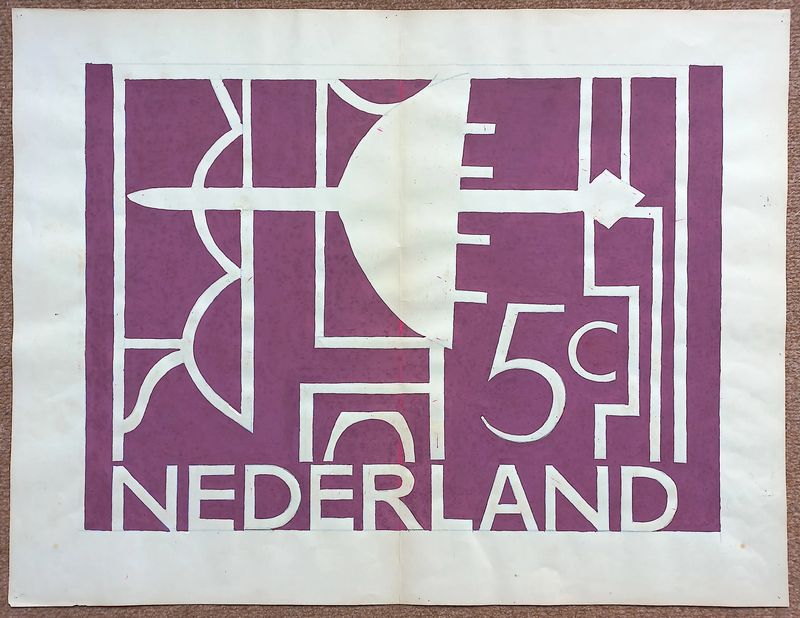 Behalve kunstenaar en grafisch ontwerper was Hubert Bekman ook een PTT ambtenaar. Hij heeft verschillende ontwerpen voor postzegels gemaakt maar ik weet niet of zijn ontwerpen tot daadwerkelijke postzegels geleid hebben. Dit is zo’n ontwerp, te dateren jaren 50. Niet alleen leuk voor liefhebbers van werk van Bekman maar ook voor filatelisten!