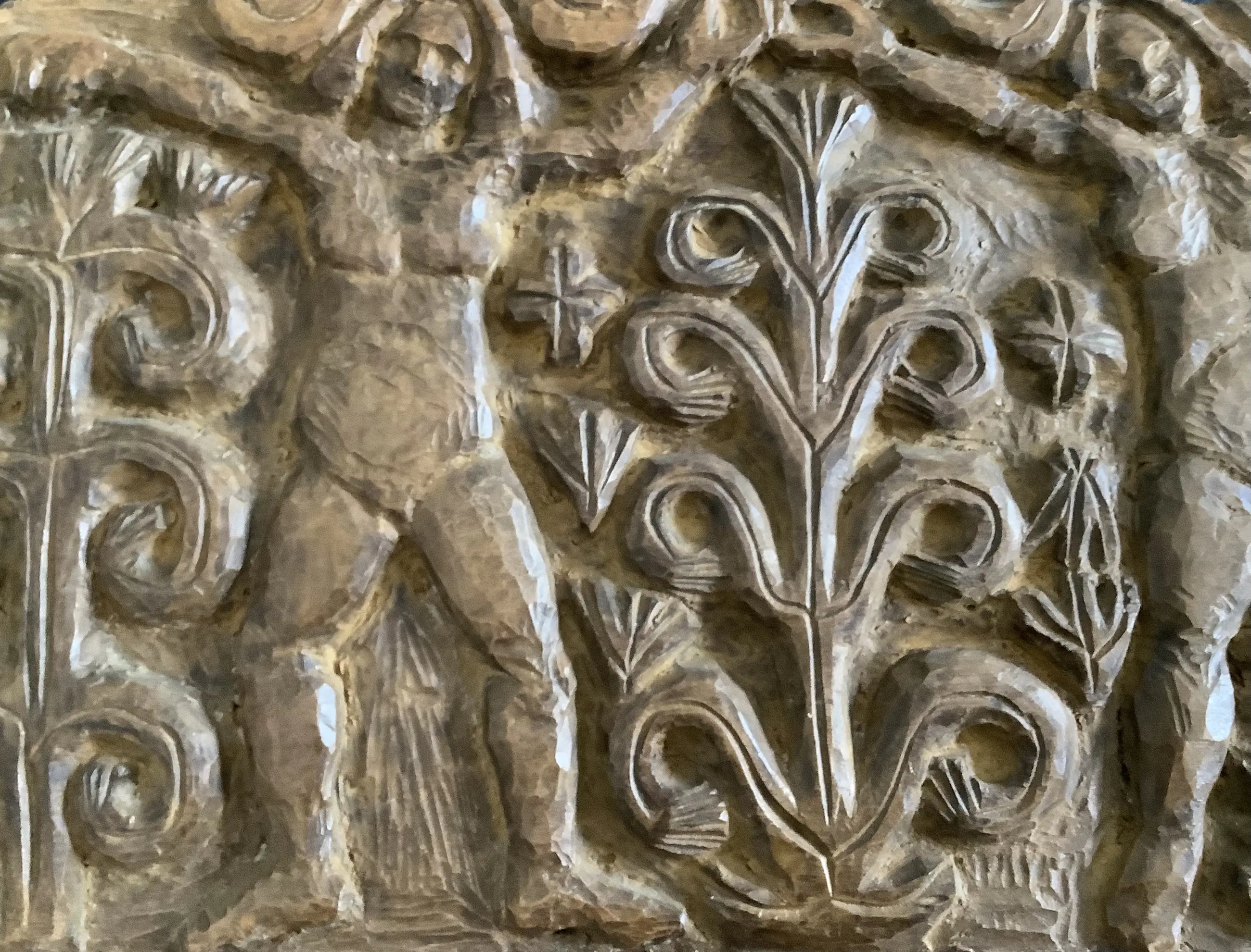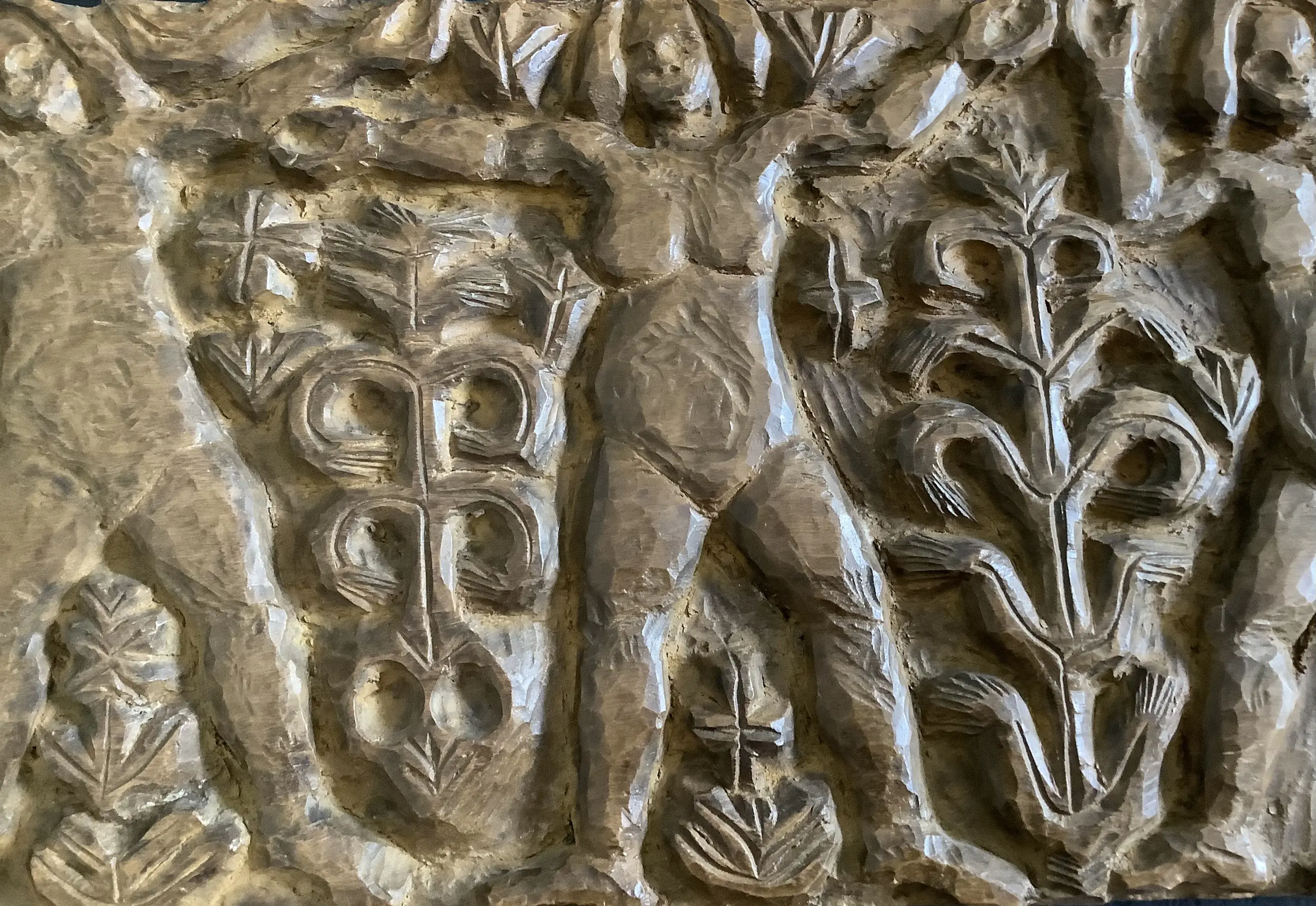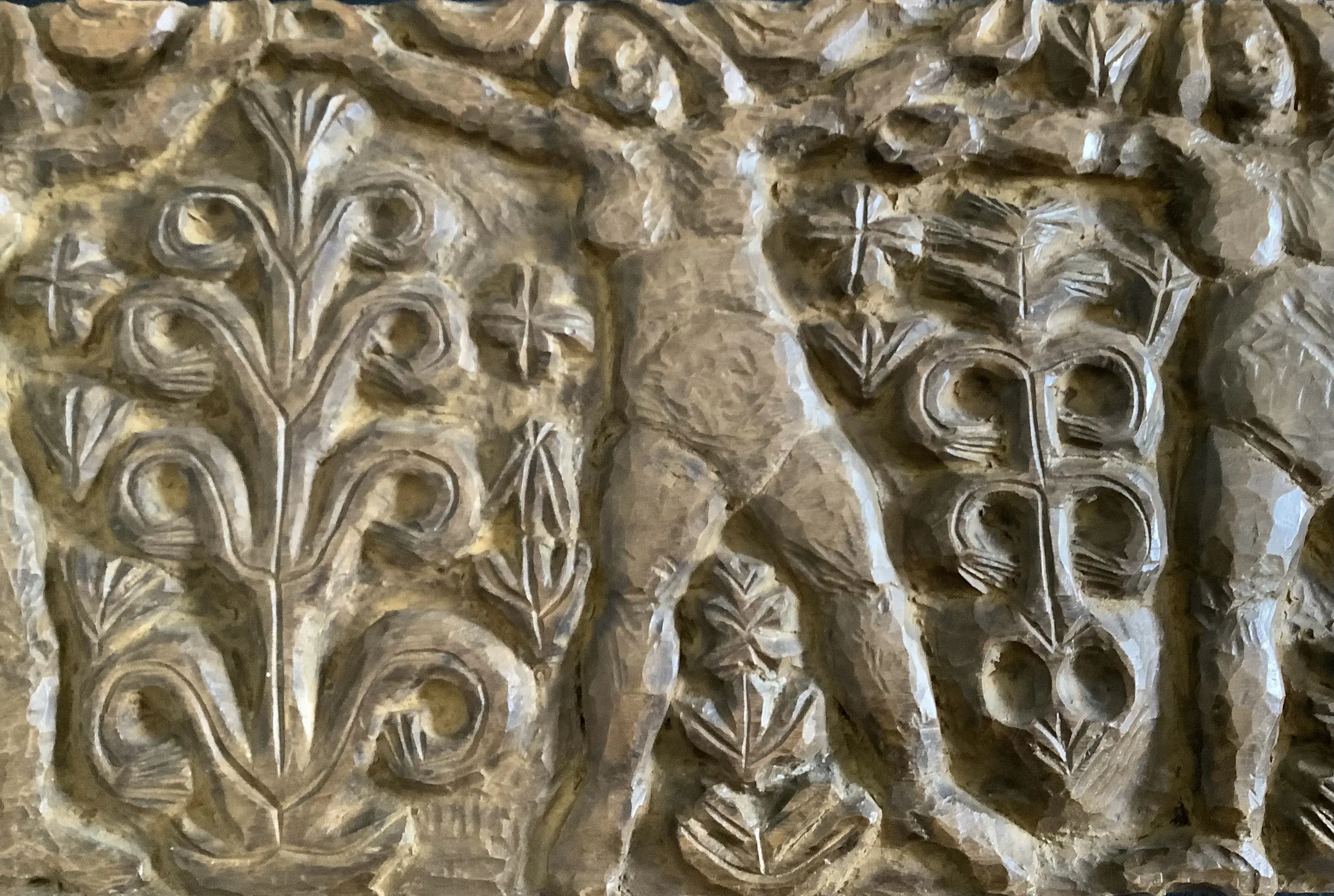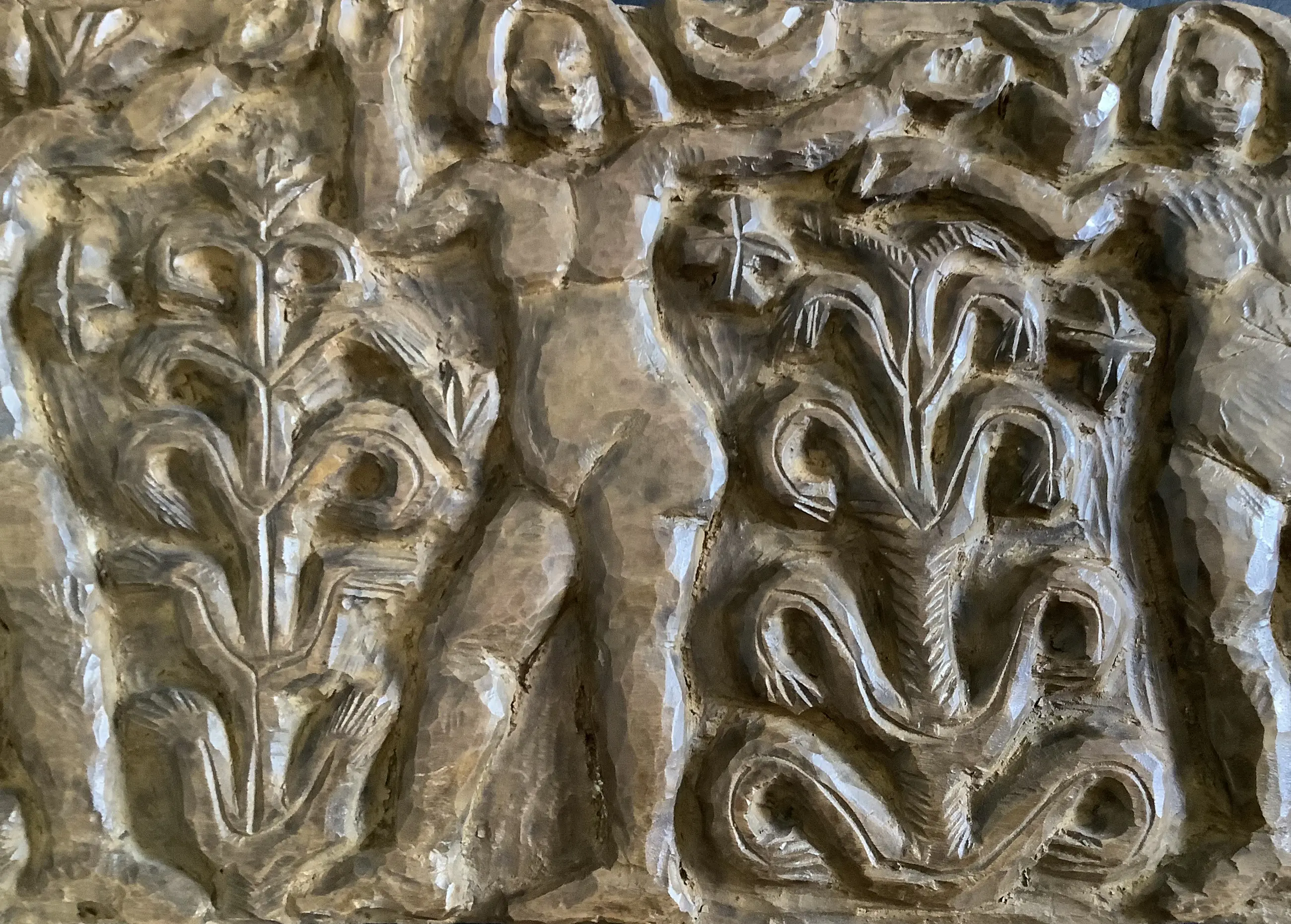 Fraai en decoratief, typerende houtsculptuur van H. Bekman. Nieuwe Haagse School. Notenhout.