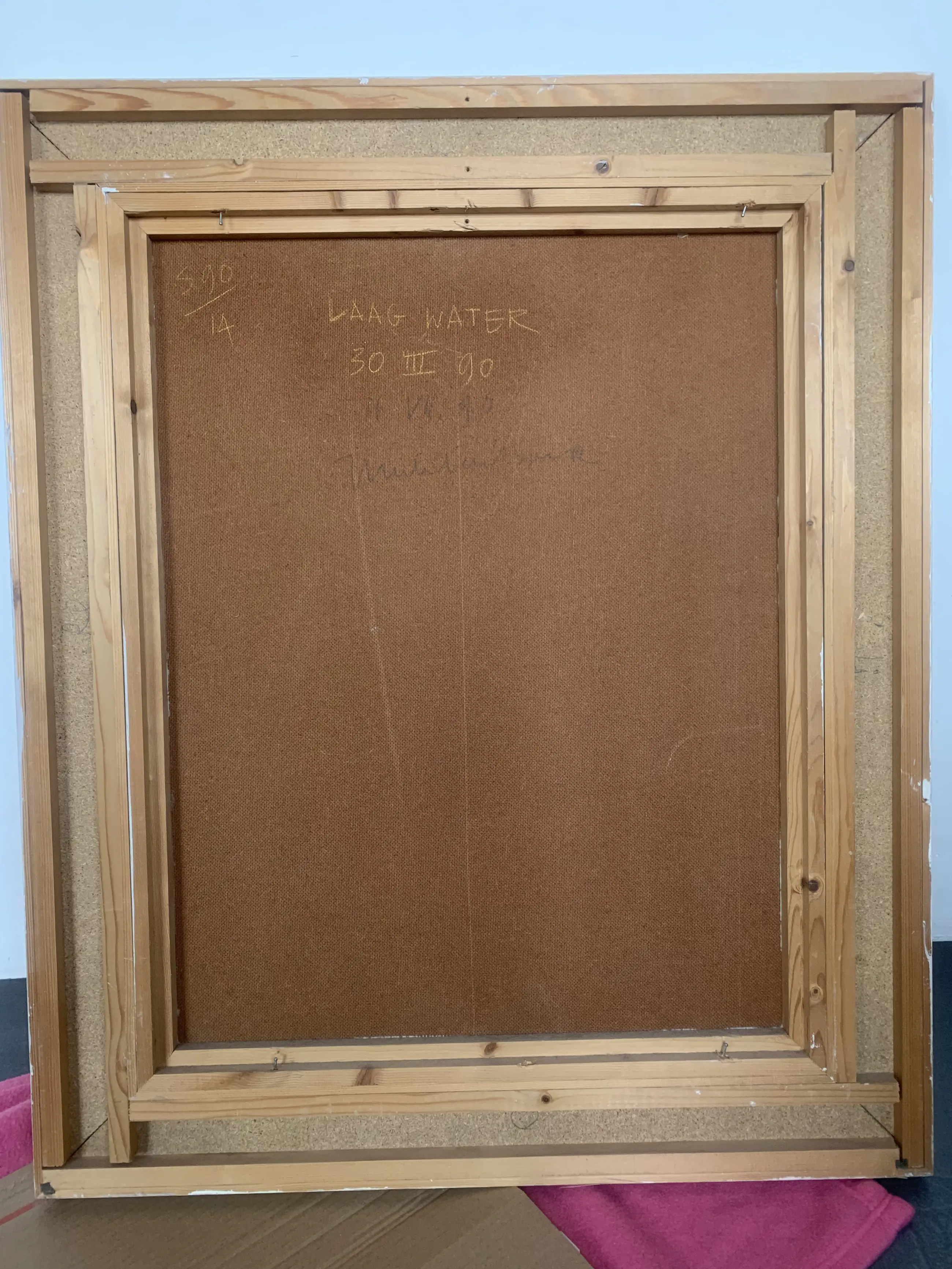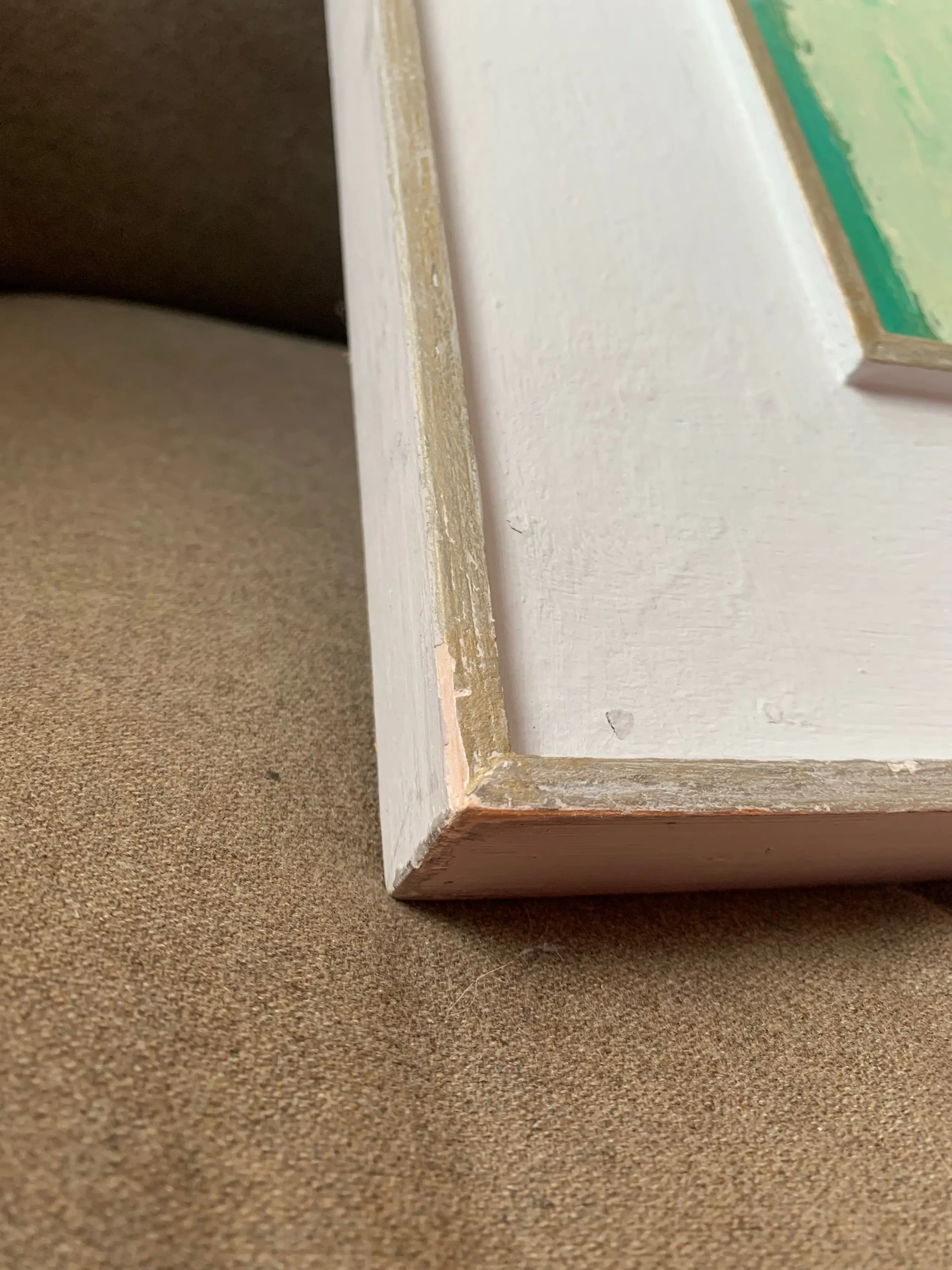 Schilderij zelf is gaaf en helder van kleur.De lijst heeft lichte schade op de hoekjes.