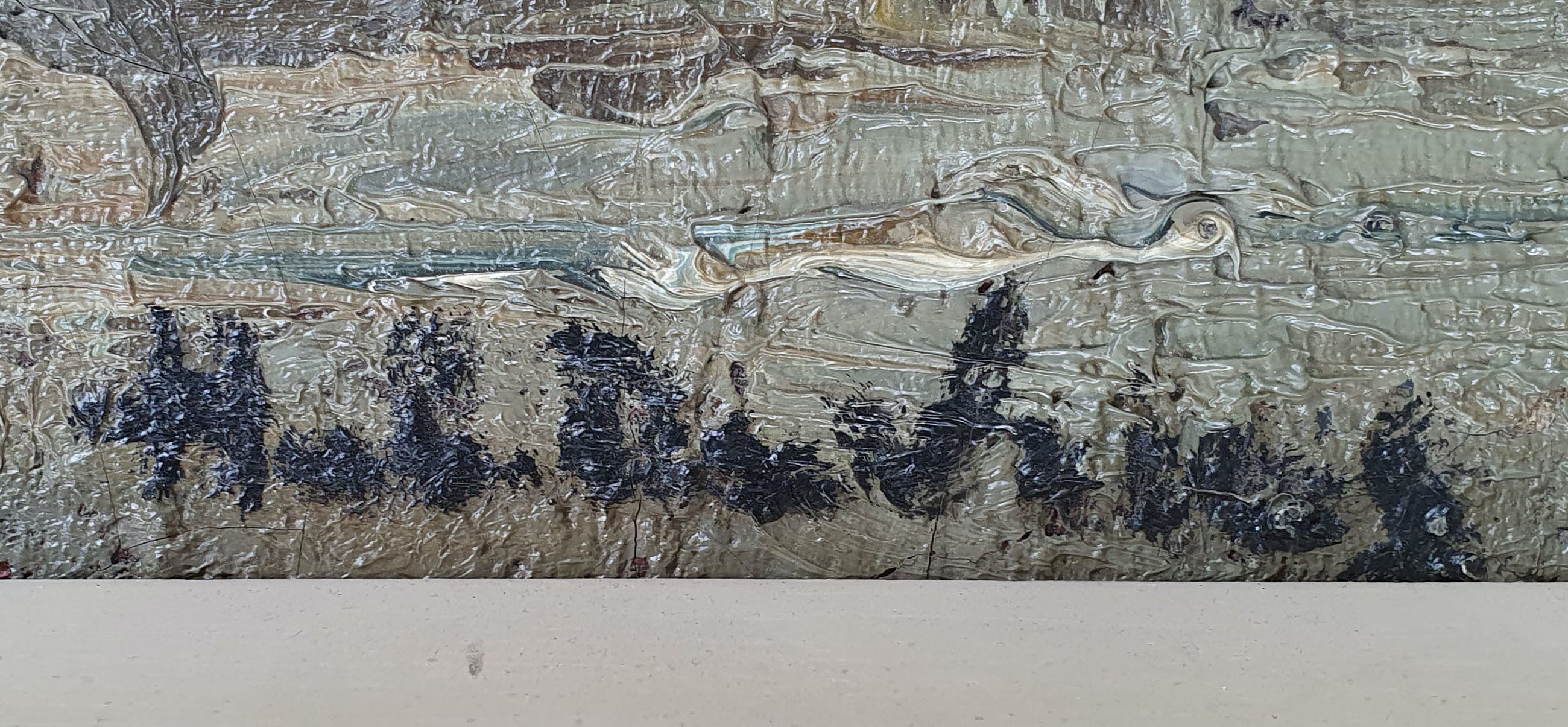Fraai dik opgezet olieverf van de Vlaamse kunstenaar Hubert de Vries. Het werk is rechtsonder met de hand gesigneerd door de kunstenaar.