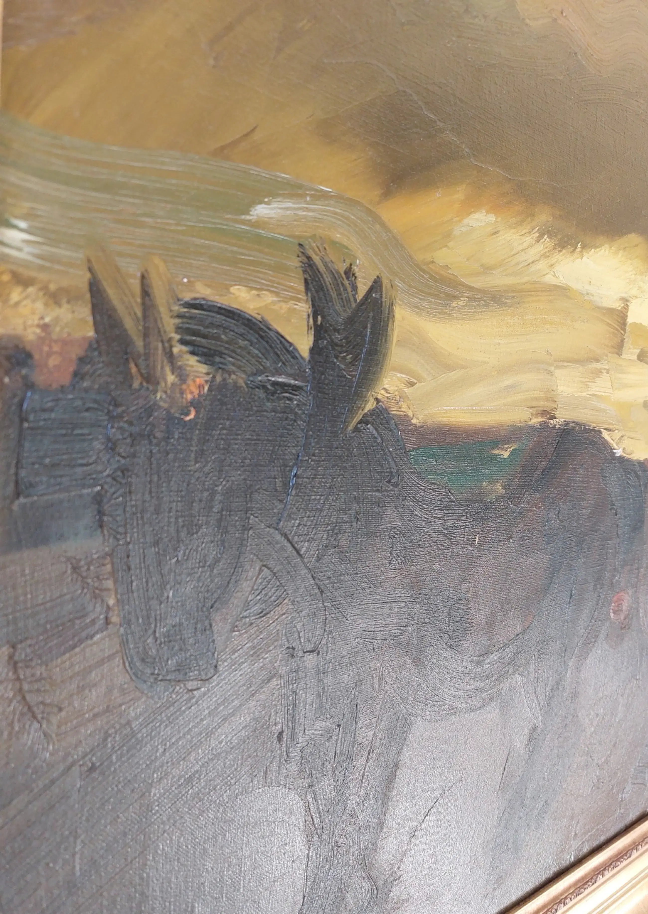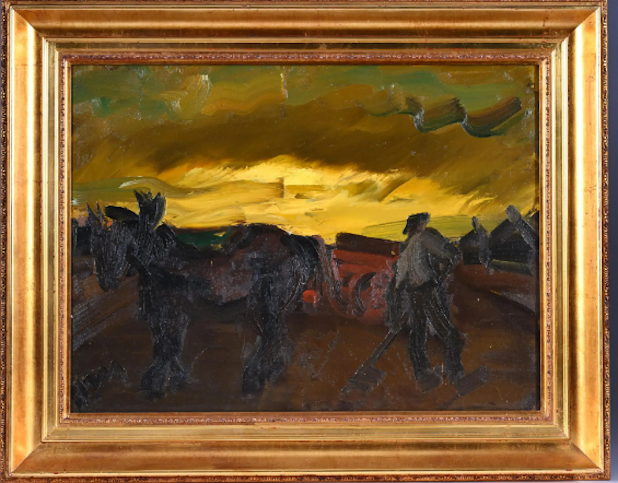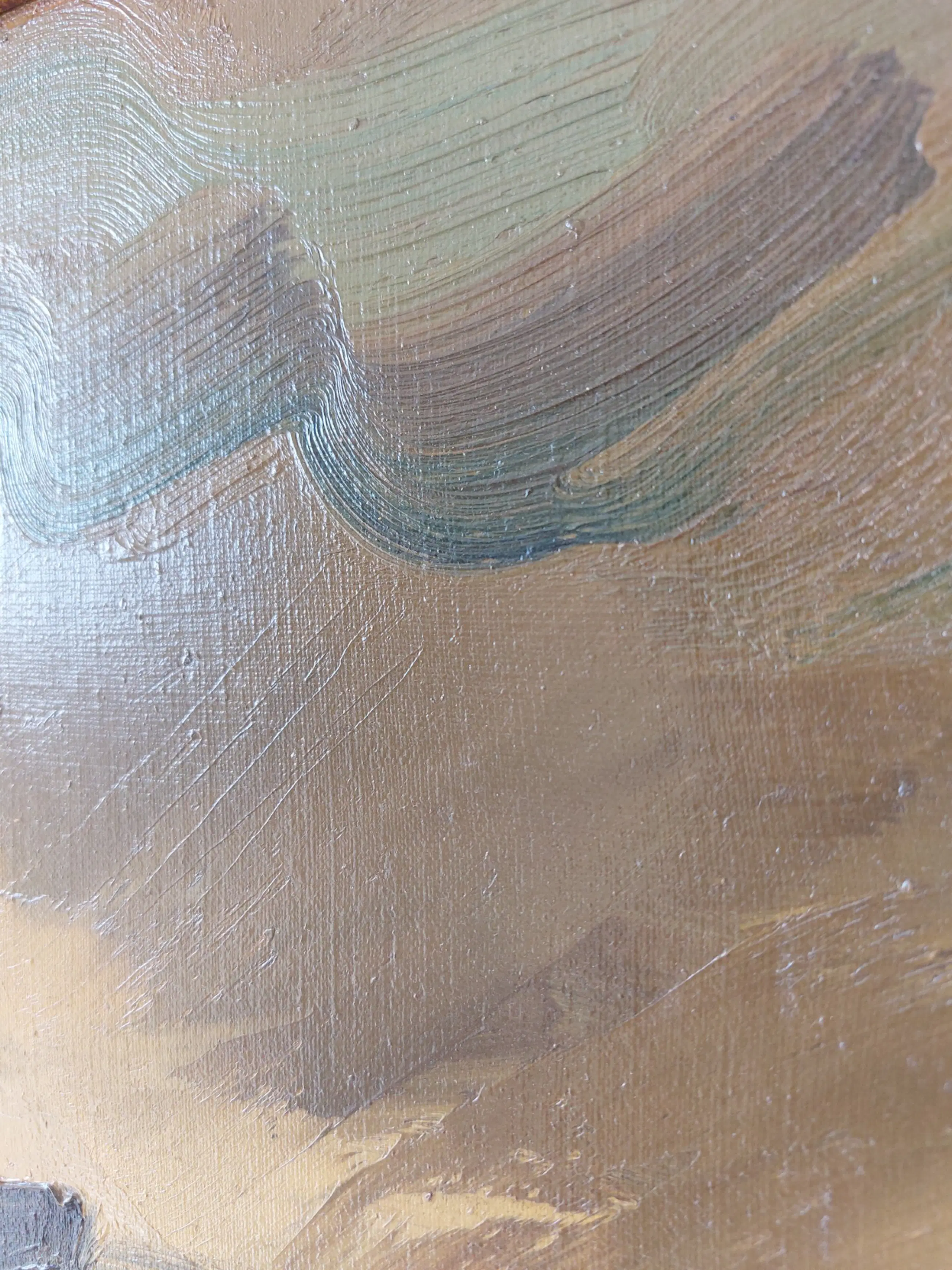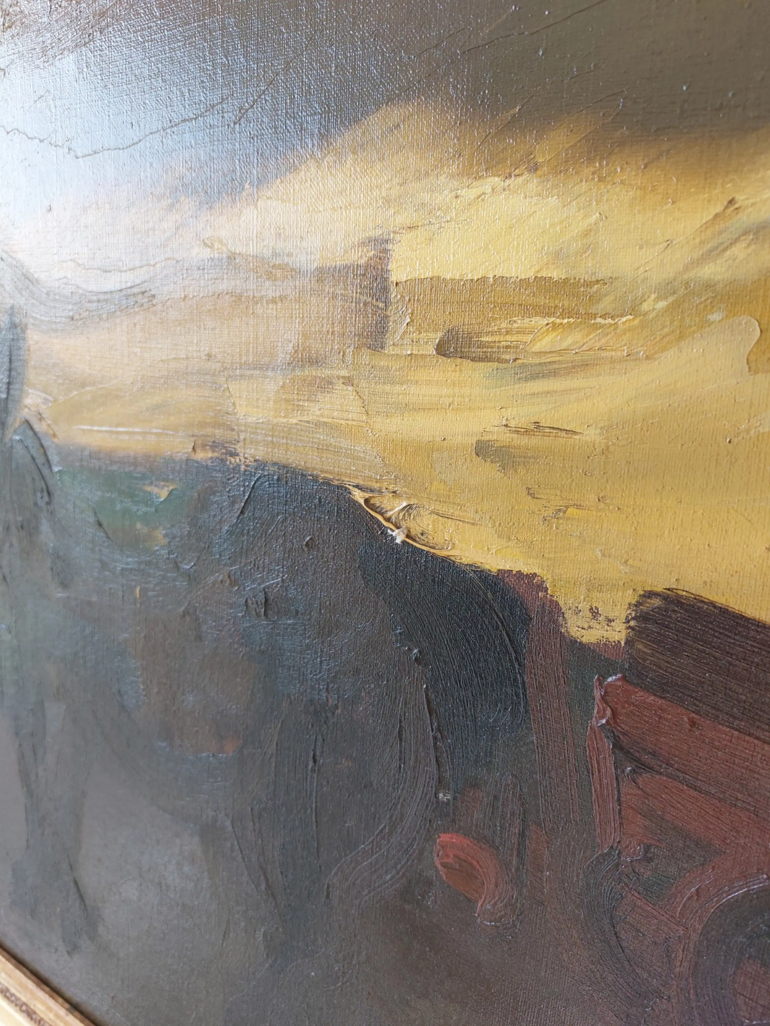 Origineel schilderij van Hubert Malfait. Hij behoorde tot de groep van kunstenaars van de Latemse school. Typerend werk van hem waarbij verf op pasteuze wijze op het doek werd aangebracht