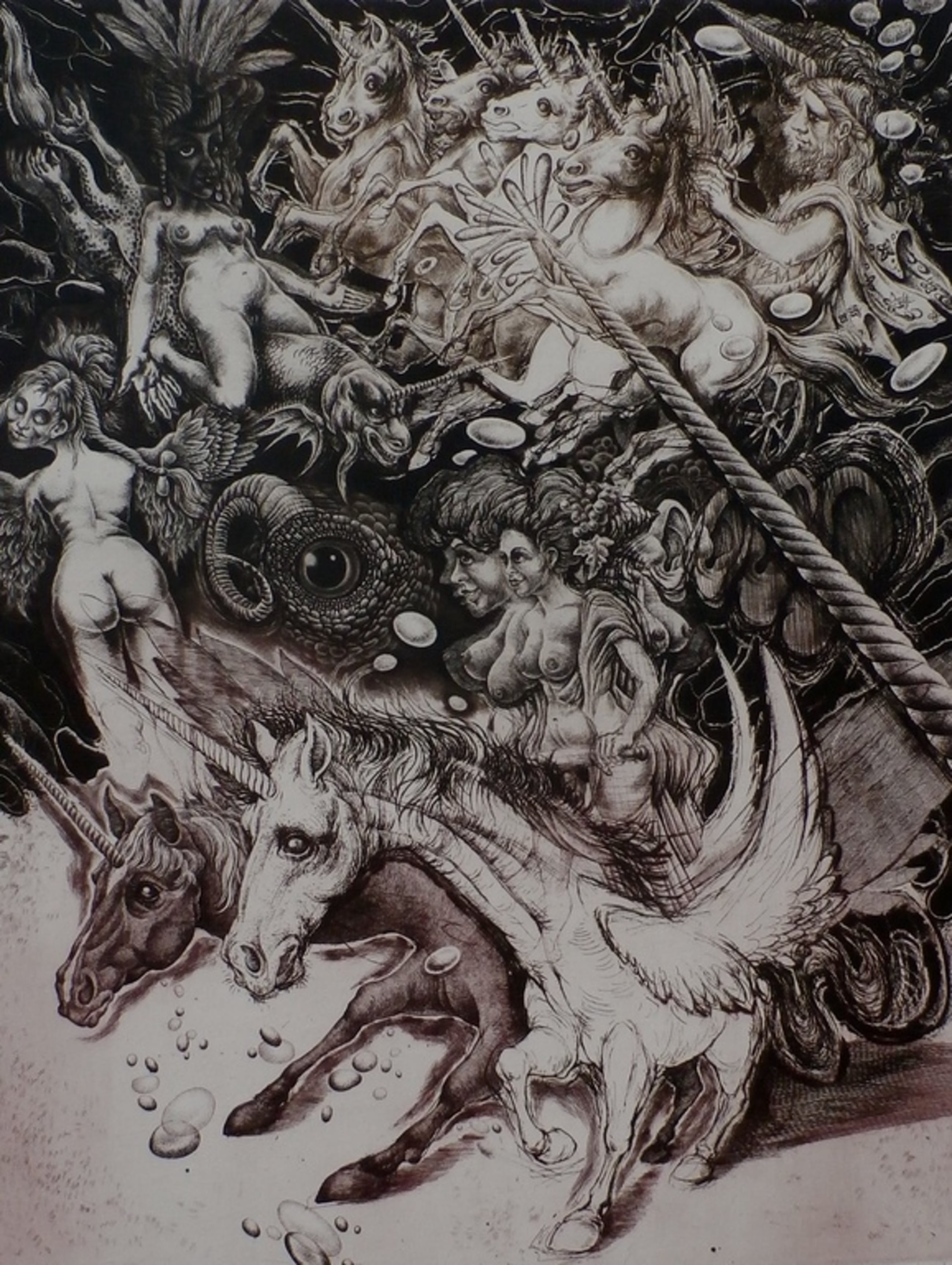 Ets van Hugo Besard uit 1991/1992. Gemengde ets techniek. Nummer 3/45. Titel: "Eenhoorn". Serie: Het labyrint der zinnen - 7 mythologische sprookjes. Rechtsonder gesigneerd door de kunstenaar. Afmetingen blad: H79 x b43 cm. Afmetingen voorstelling H49.5 x b38 De authenciteit van dit werk wordt volledig gegarandeerd. Een certificaat van echtheid kan, op verzoek, worden meegeleverd. Conditie: in goede staat