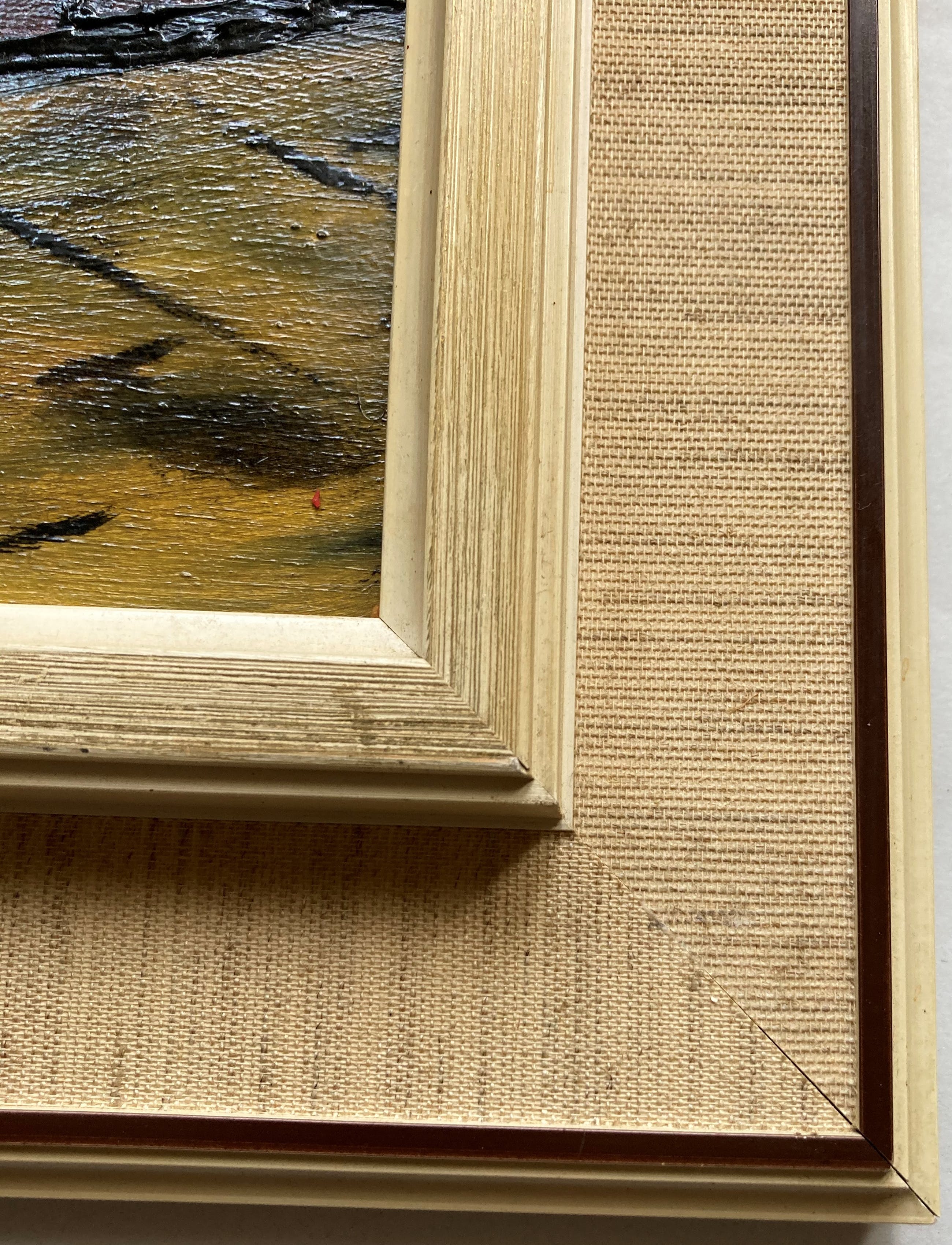 Karakteristiek werk van de Nuenense kunstenaar Hugo Brouwer. Gesigneerd rechtsonder met monogram. Gedateerd op de achterzijde, juli 1972. Ingelijst in de oorspronkelijke lijst, nog in goede staat. Hugo Brouwer (1913-1986) was een Nederlandse schilder,