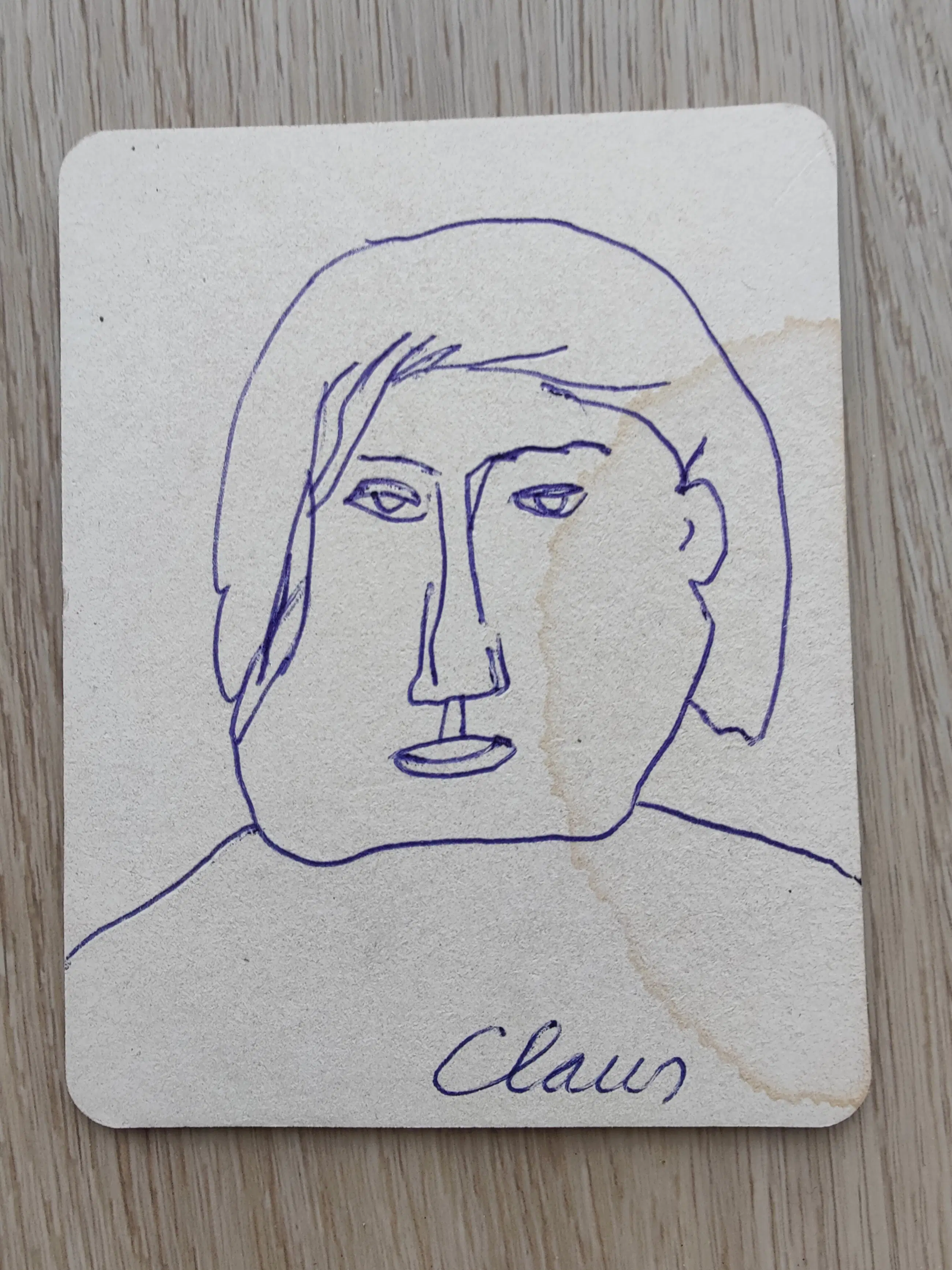 Balpentekening door Hugo Claus op een bierviltje. De vorige eigenaar kreeg deze tekening van Hugo Claus na een avond flink doorzakken. Vochtkring zie foto