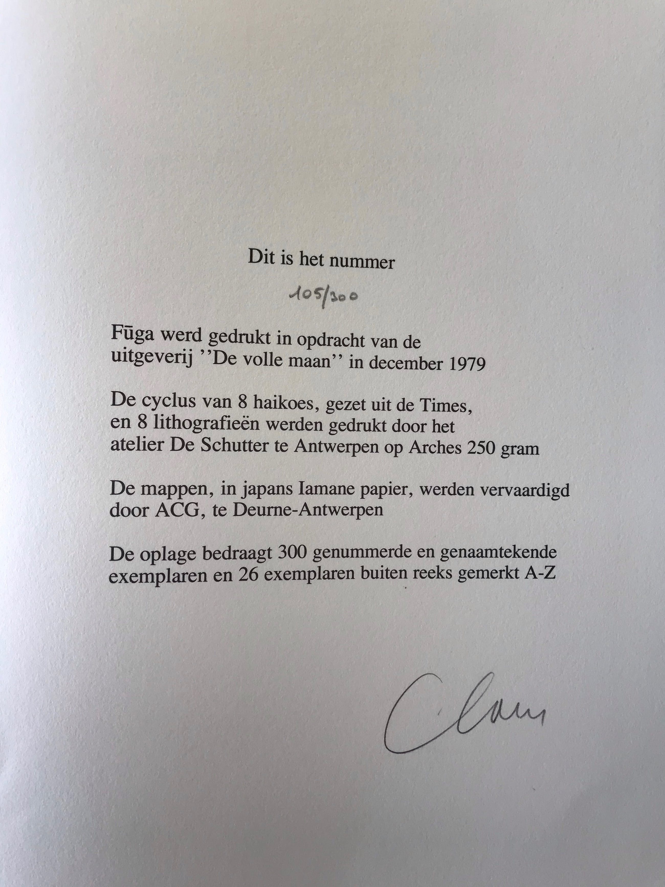 - Komt samen met titelblad, gesigneerde colofon en omslag (laatste 4 foto's)