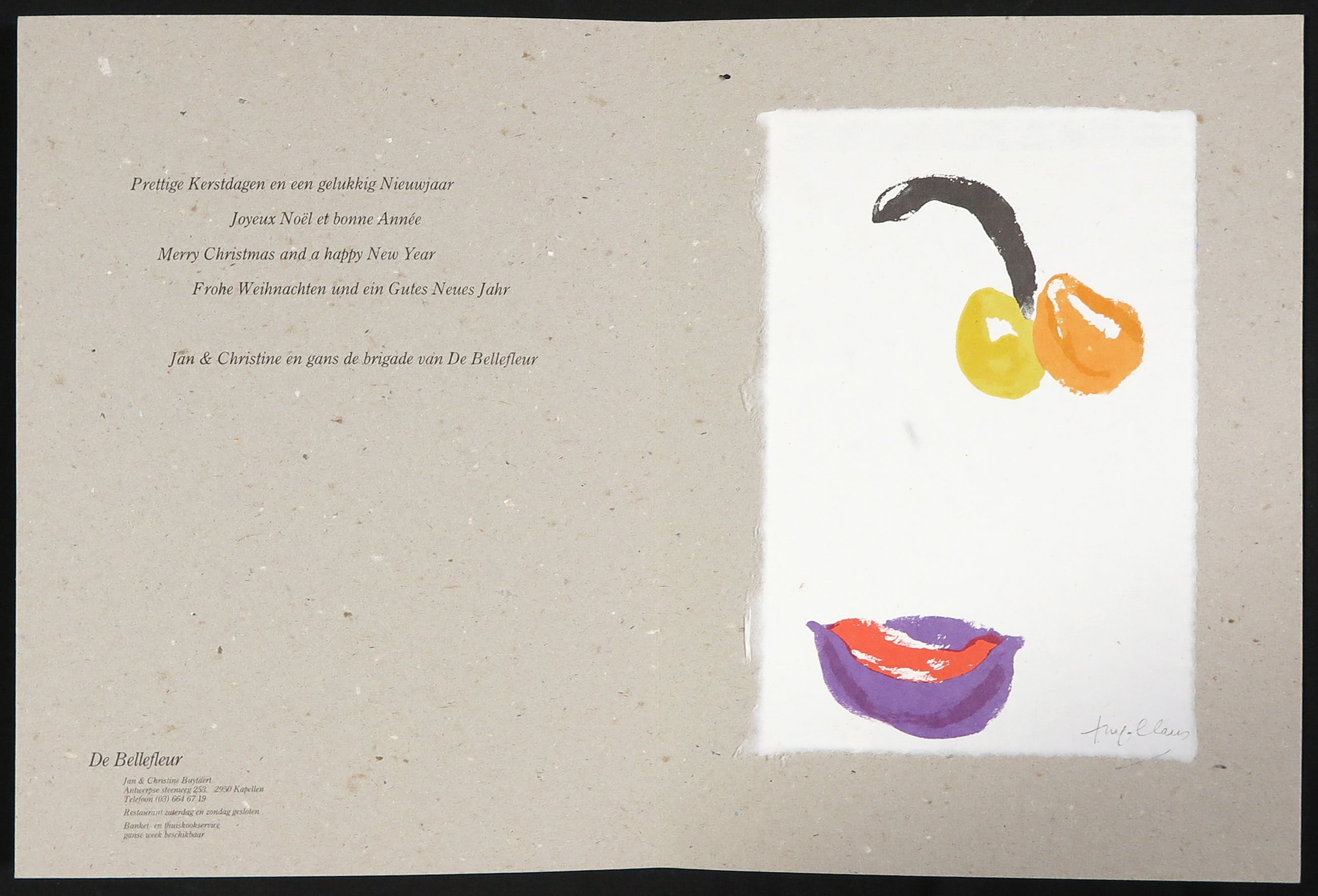 Drukgesigneerde offset, uitgegeven door Hugo Claus en gebruikt als relatiegeschenk.
