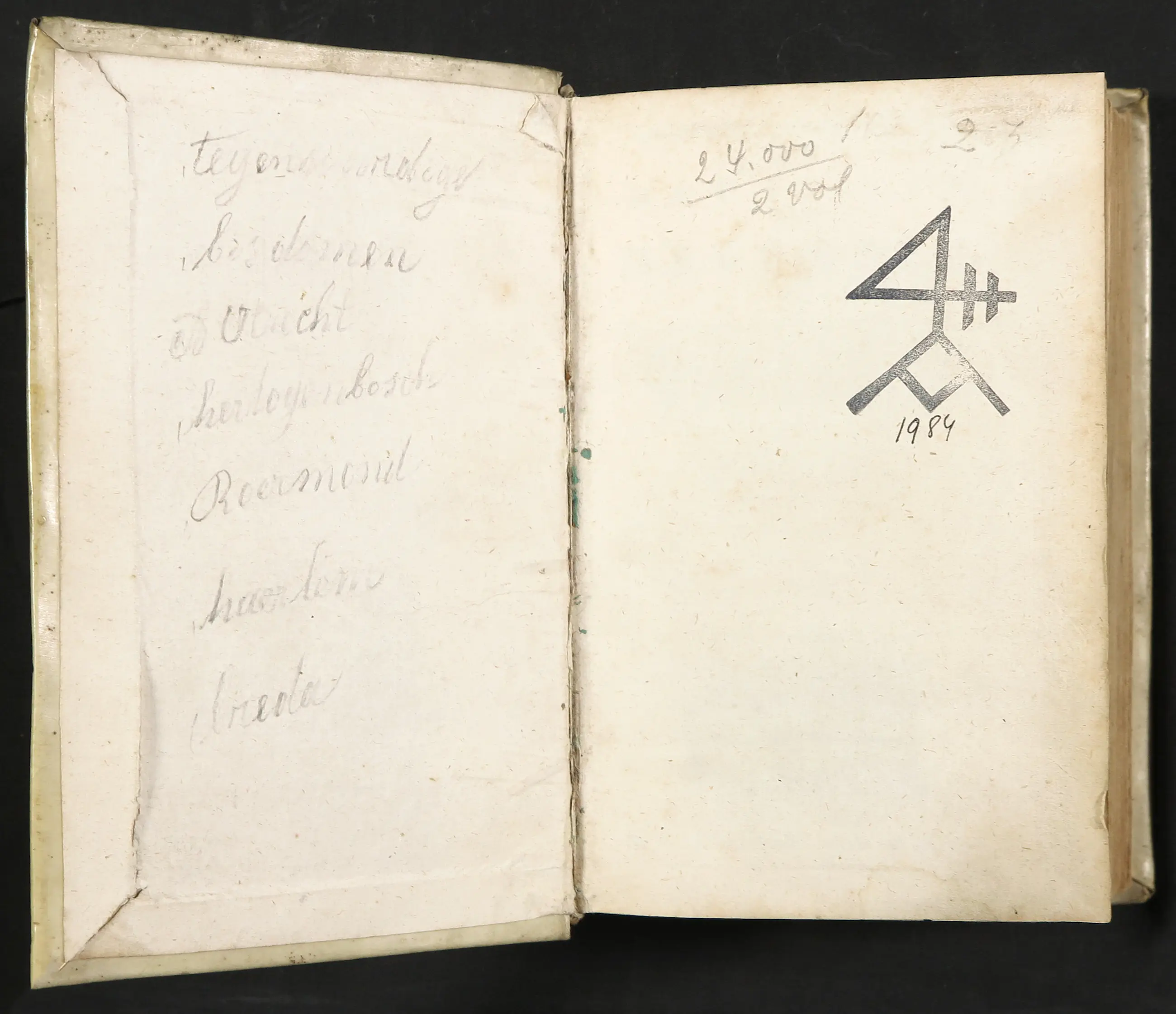 Normaal voorzien van twee prenten, een gezicht op een kerk en een portret. Het portret ontbreekt.