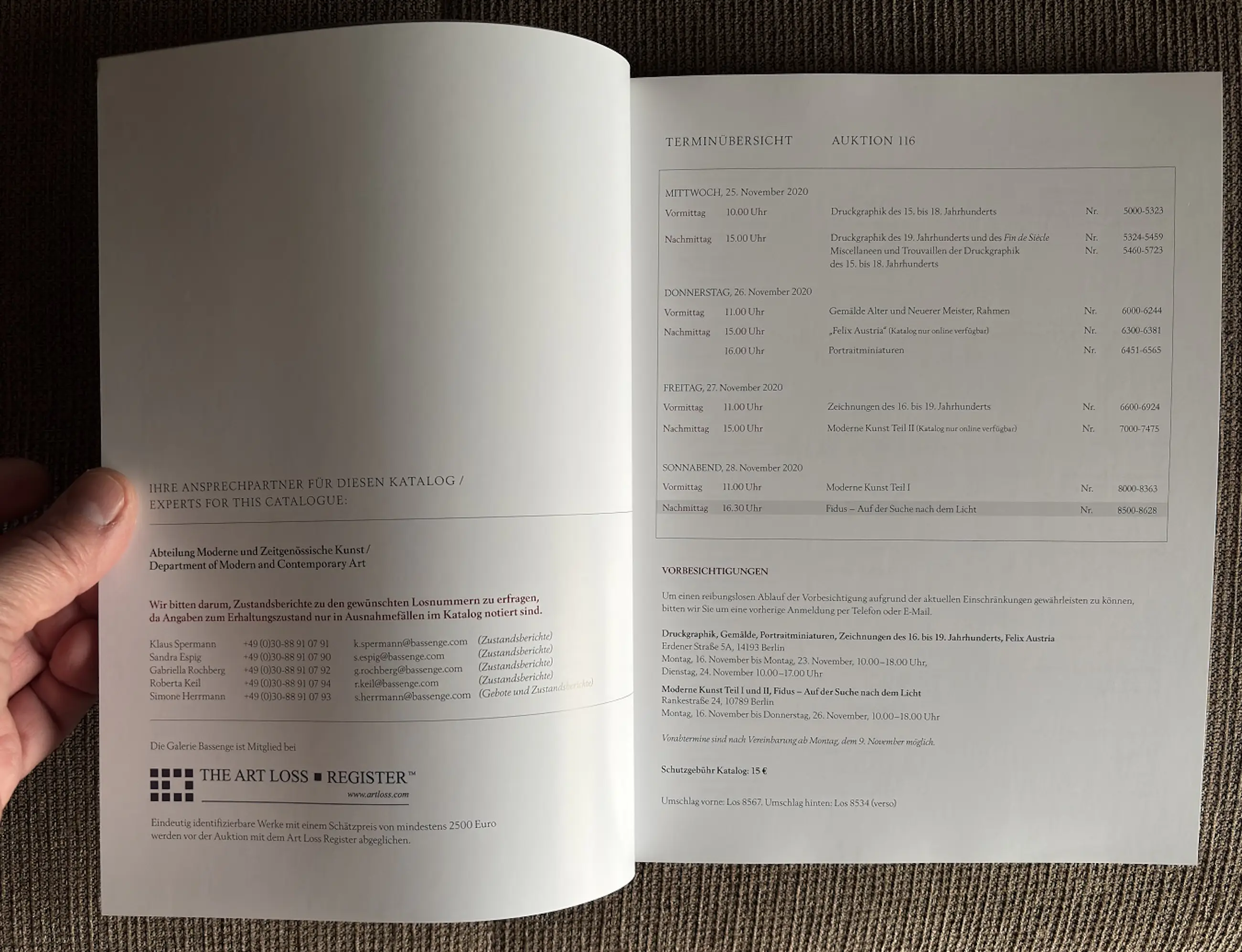 Galerie Bassenge, 2020 (verkoopcatalogus veiling 116).