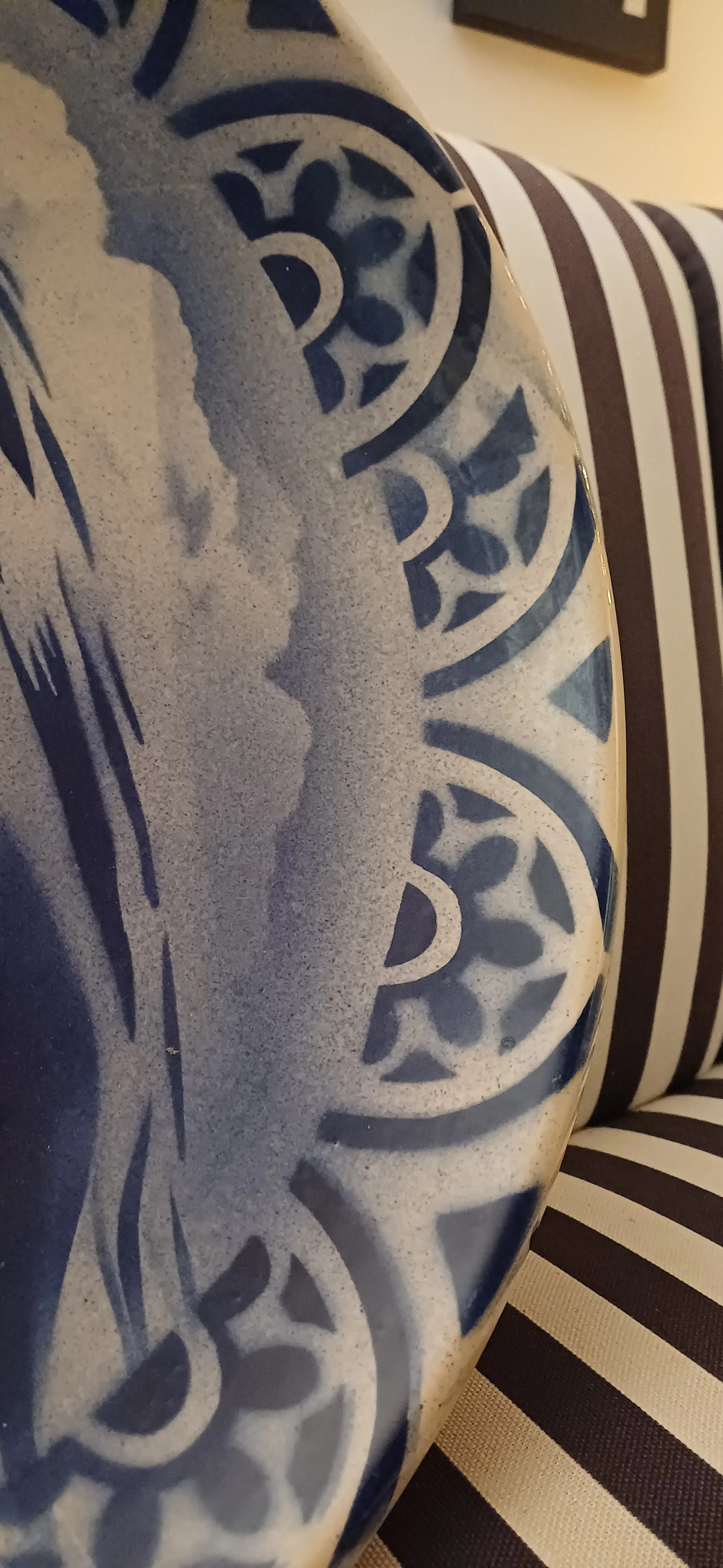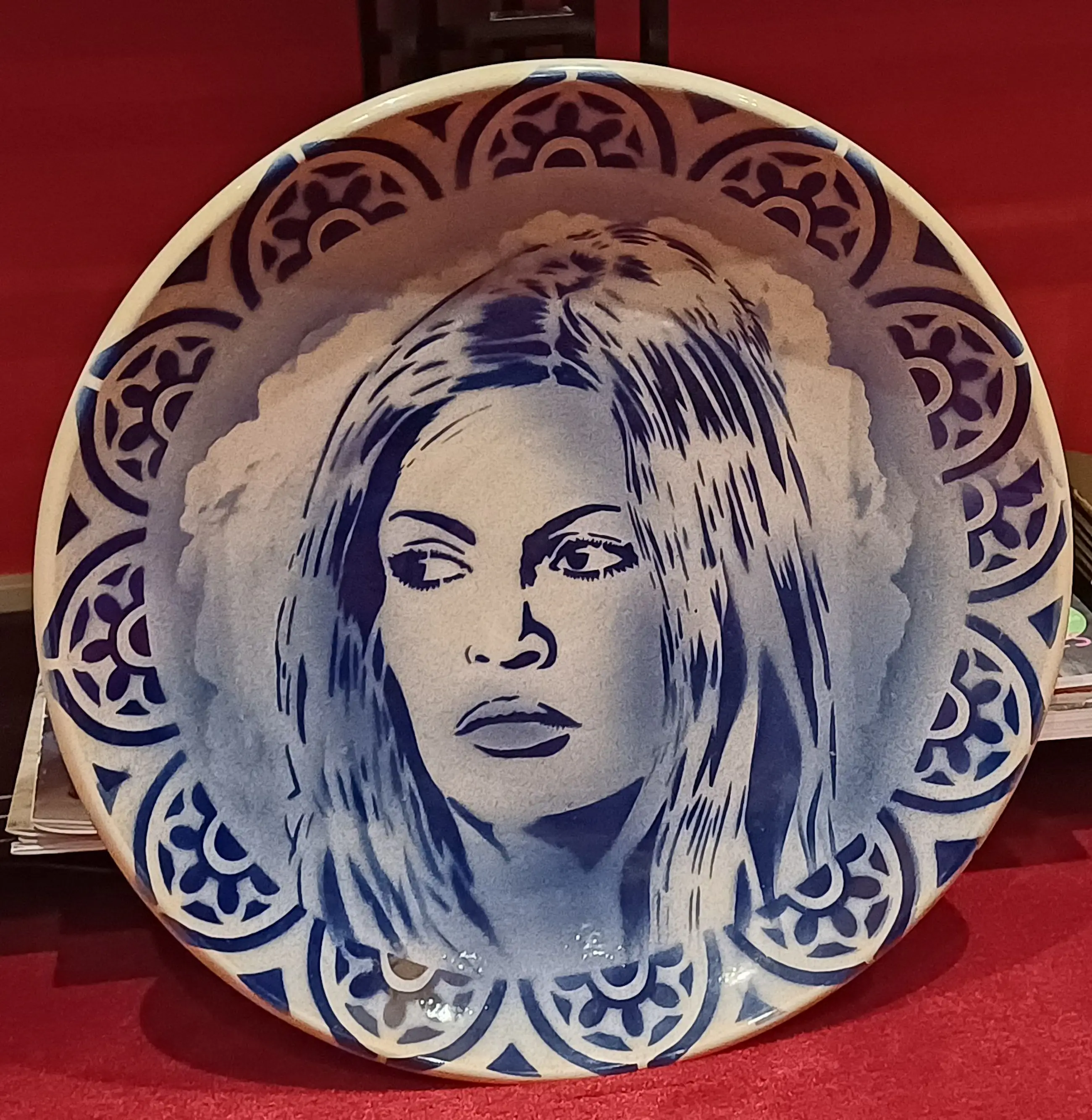 Fraai rond keramiekbord in typische 'Kaagman Delfs Blauw' stijl. Met aangezicht van een jonge Brigitte Bardot. 50 cm diam.. Atelier De Graal merkteken. Handgesigneerd door kunstenaar. Onbeschadigd. Van 1e koper ( een groot Nederlandse verzamelaarster v BB) Heeft ophang mogelijkheid.