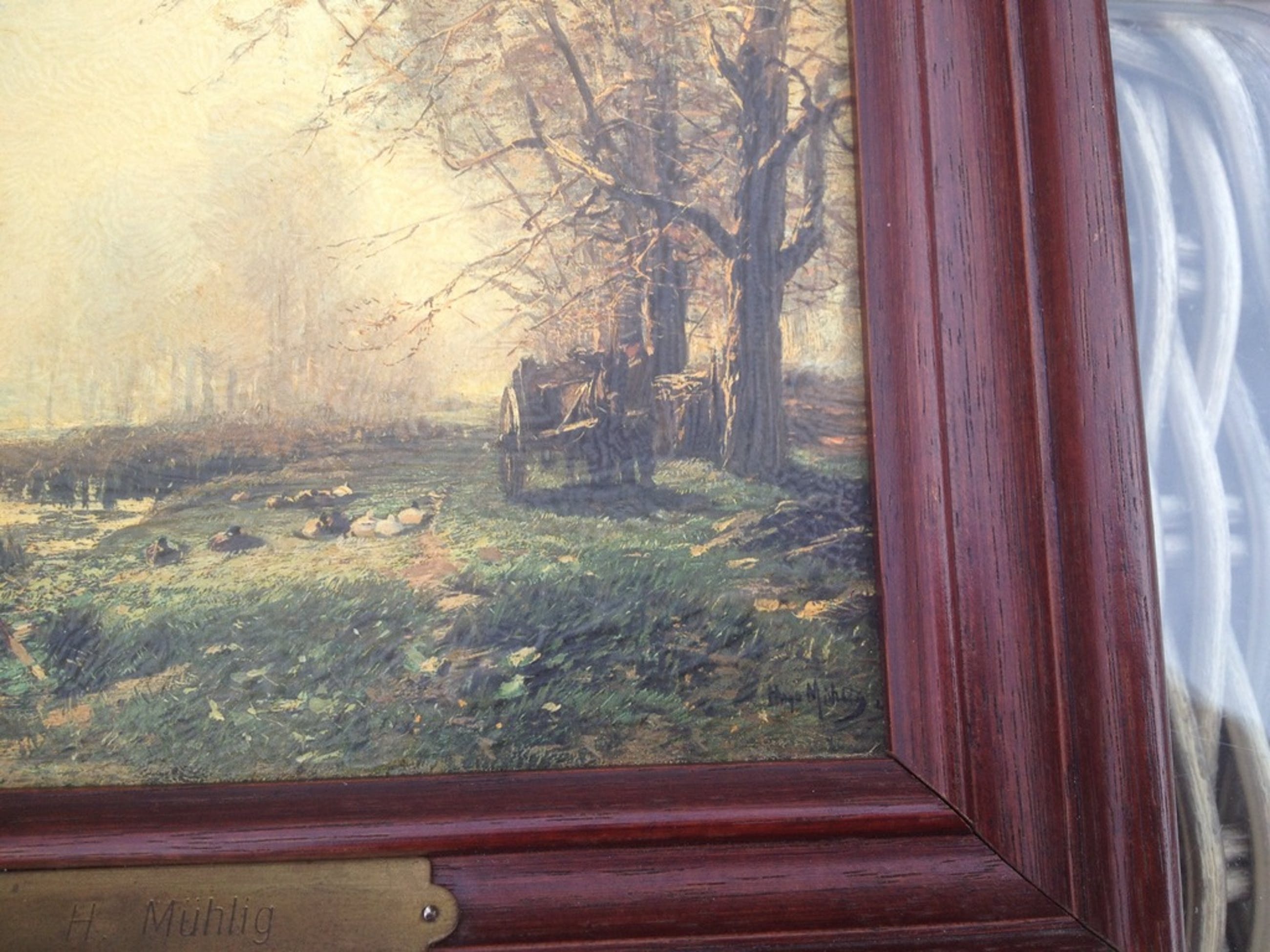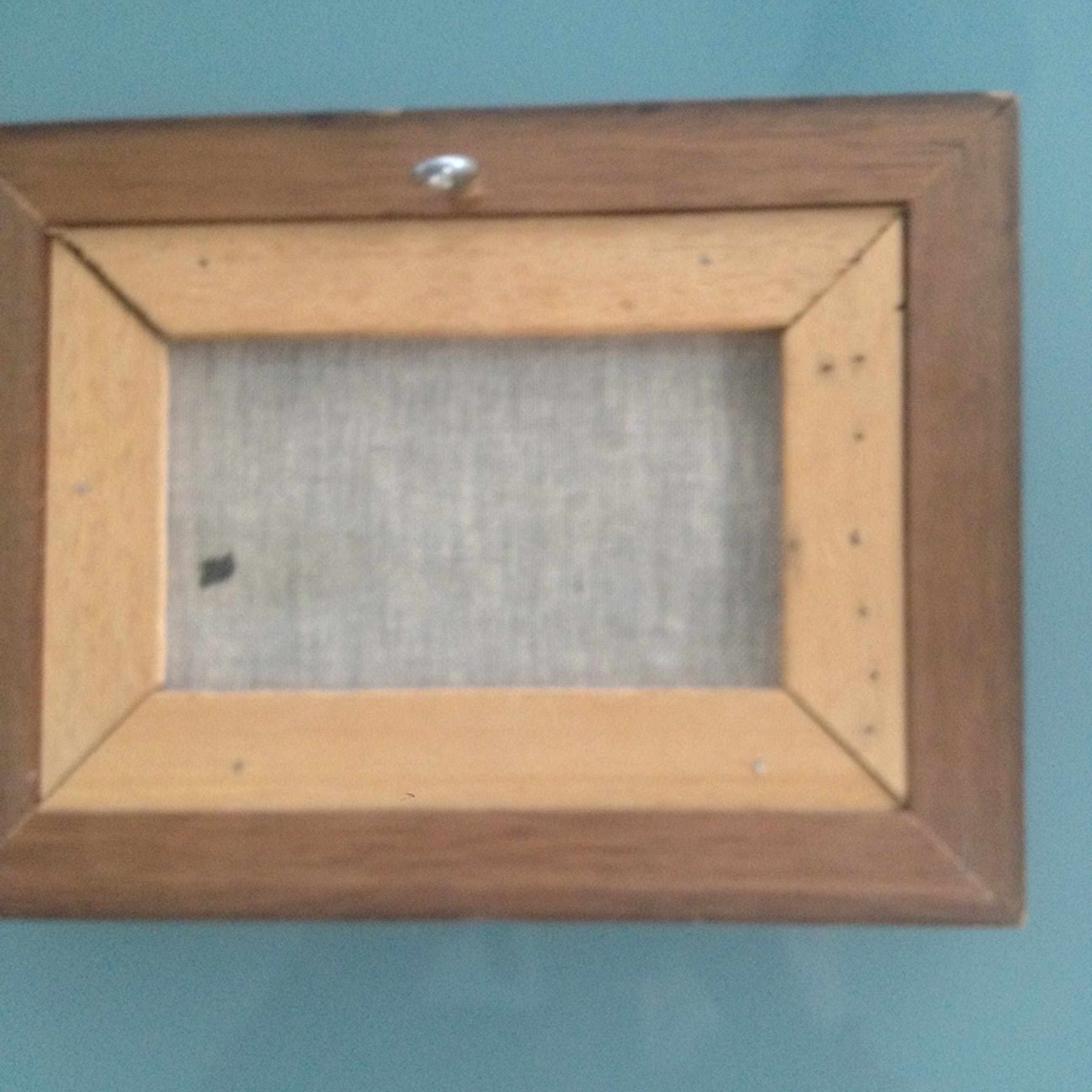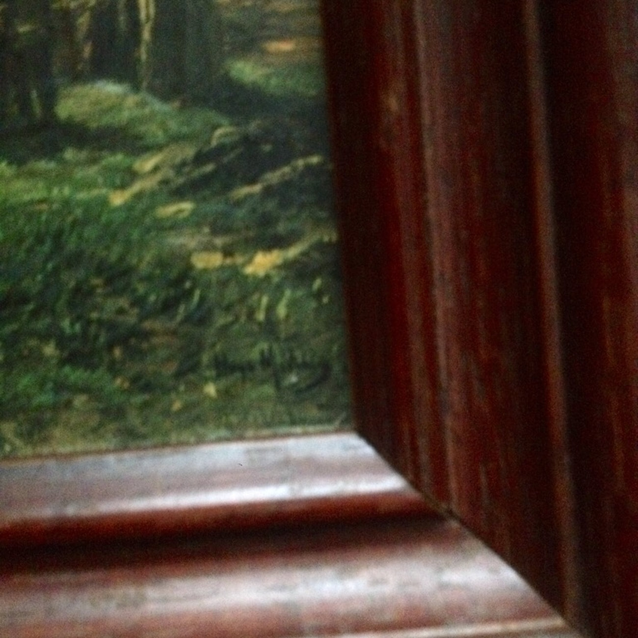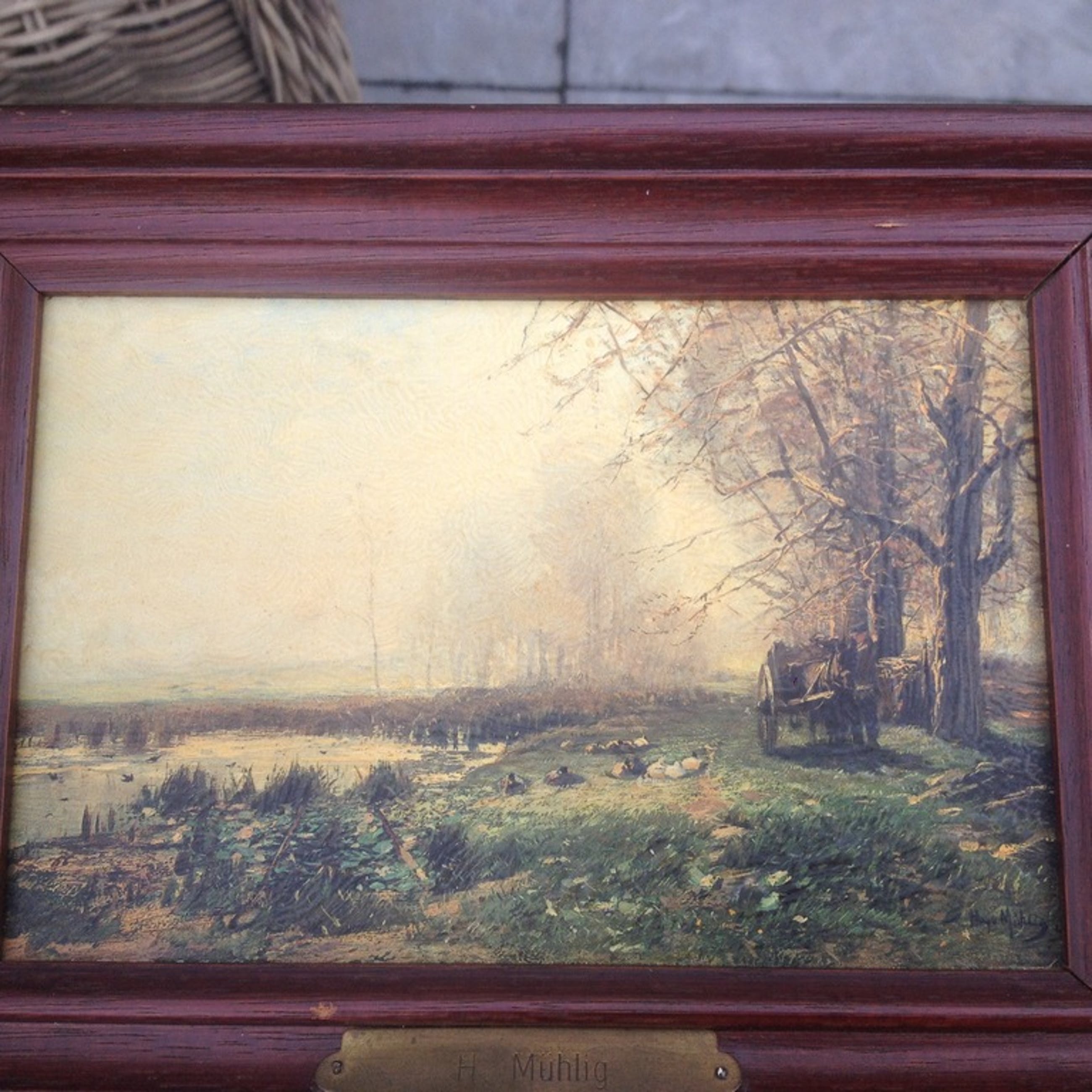 Het is een klein werkje 10x15 cm Dubbel gesigneerd. Op de lijst d.m.v. koperen plaatje en op het werkje zelf rechts onder! Het schilderijtje is in goede staat!