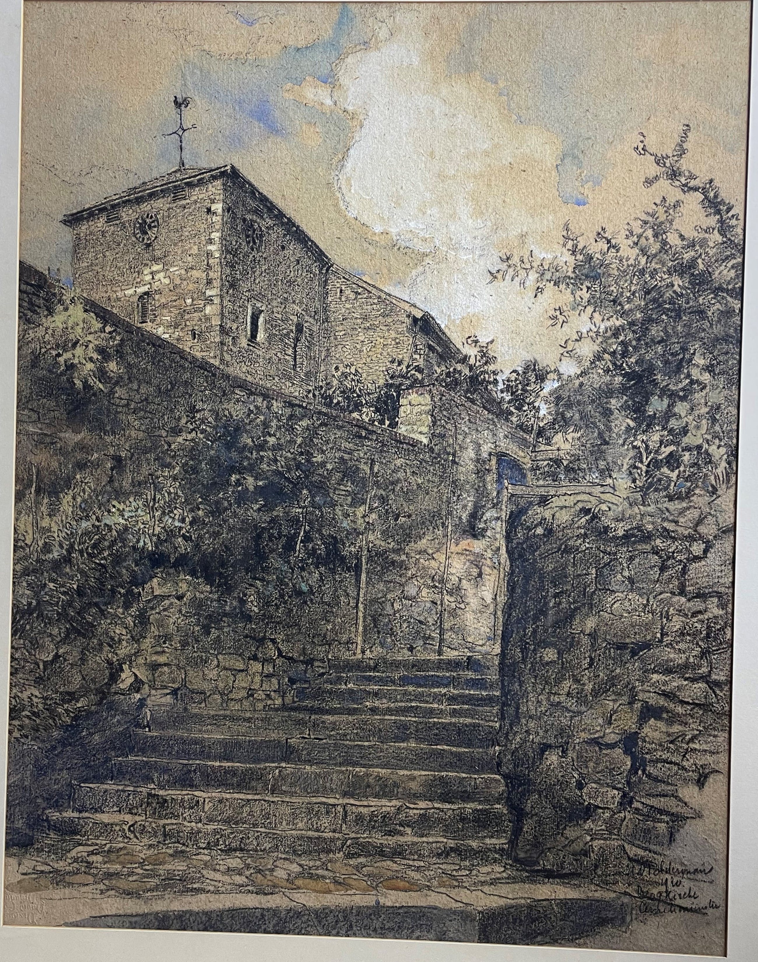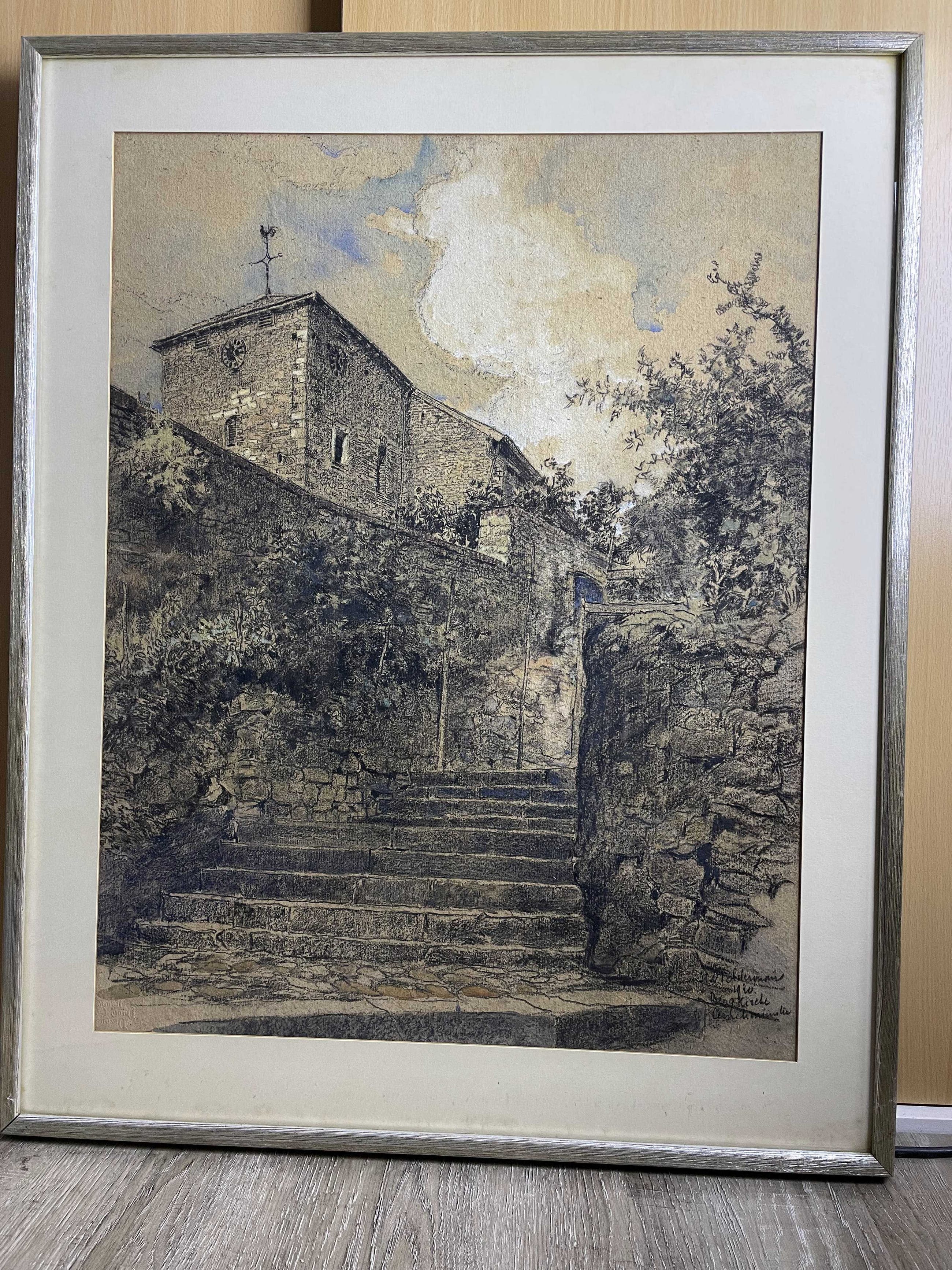 Dit kunstwerk hing bij mijn grootouders in huis, mijn ouders hebben het in 1973 opnieuw laten inlijsten. Papier lijkt mij rauhfaser papier