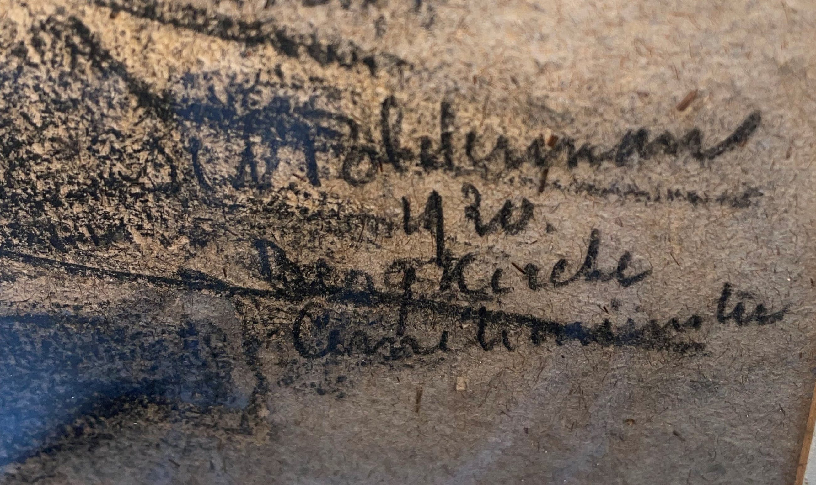 Tekening ietwat ingekleurd en ondertekend. Ik kan er niets van maken maar wie het kan mag het melden.