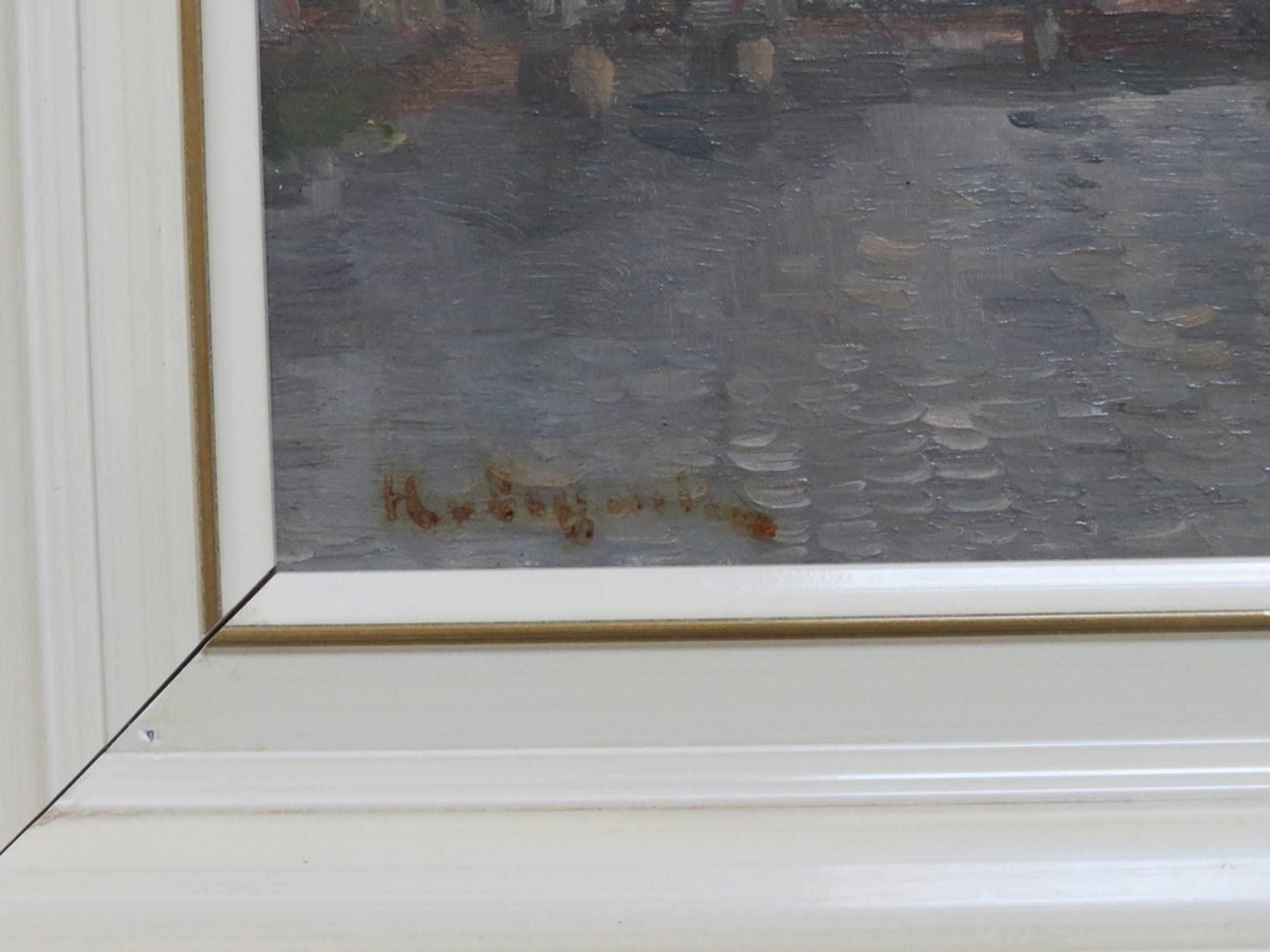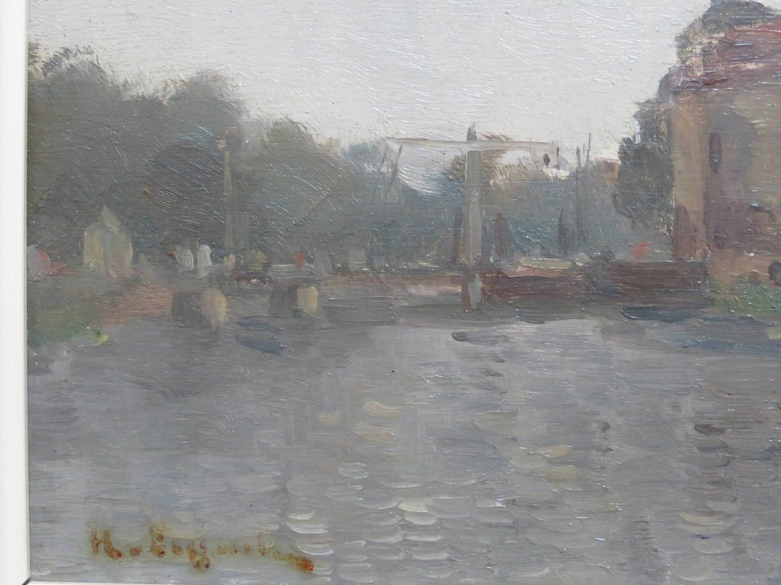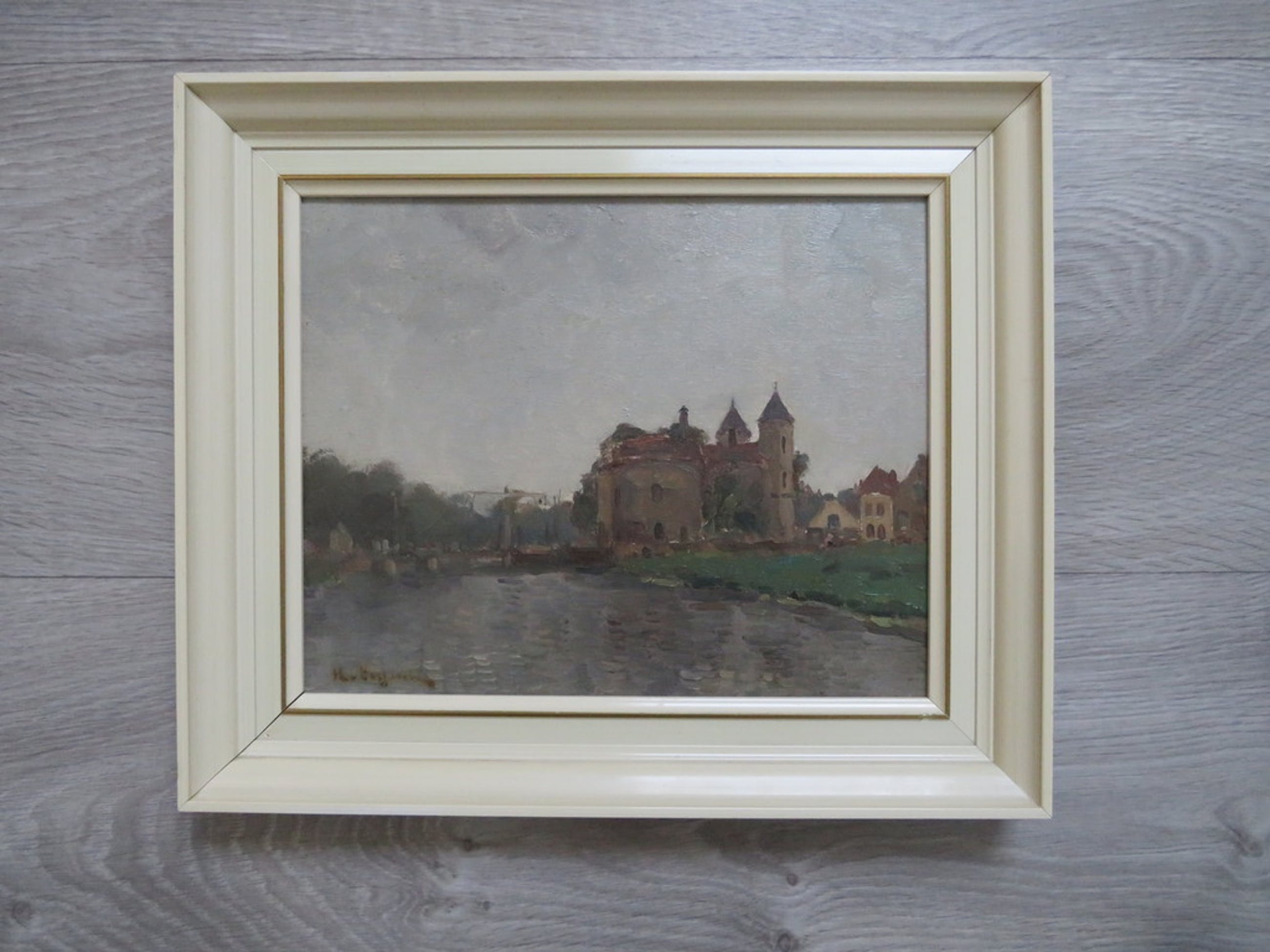 Mooie werkje van Hugo van Schaik. Afbeelding van Slot Loevestein in Poederoijen. De signering is door een vroegere - overijverige- poetsbeurt ietwat vervaagd, maar is onmiskenbaar van Van Schaik.