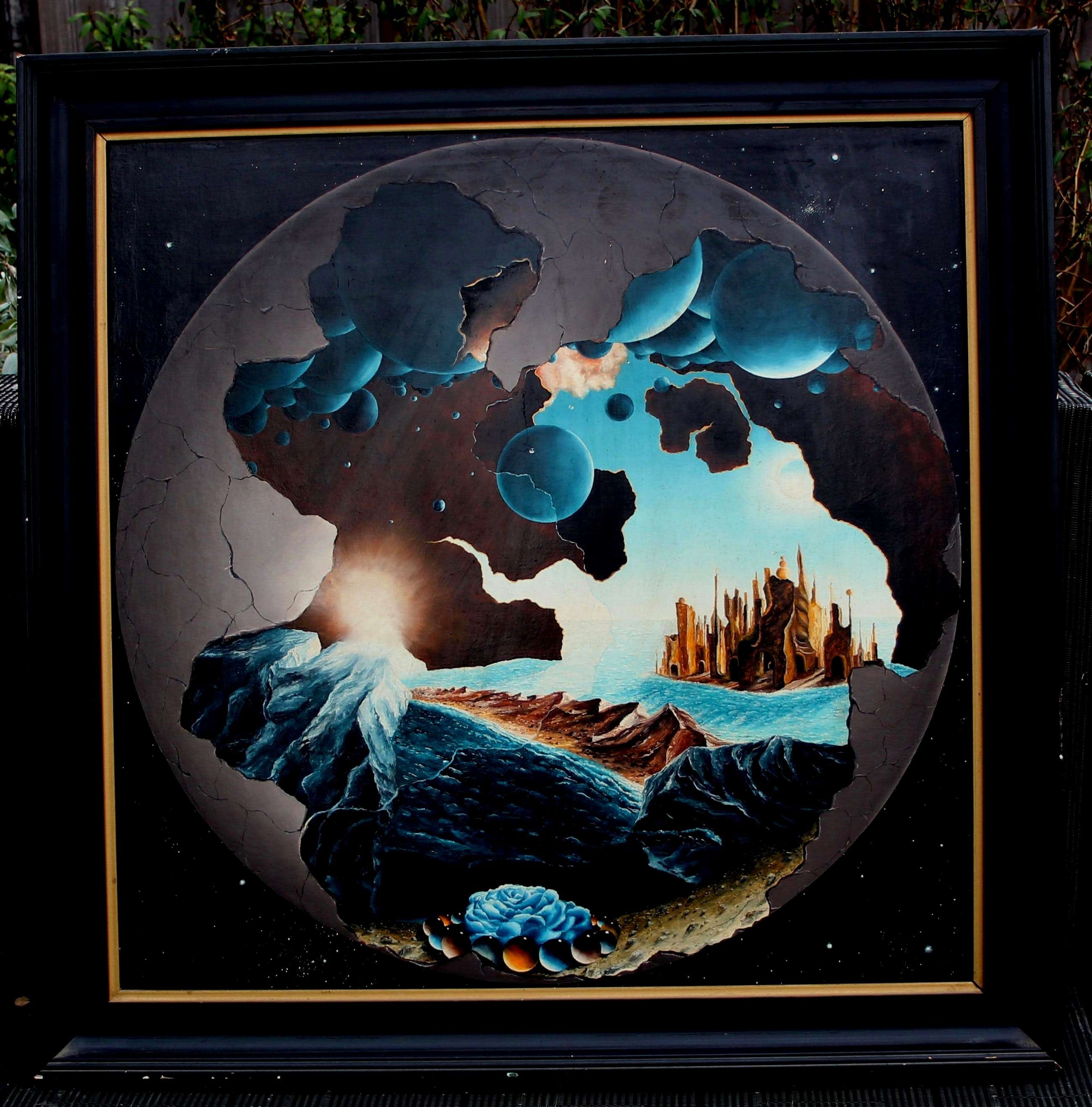 Olieverf op paneel van Huib Benschop. Titel: Metamorfose. Jaar: 1976. Dit surrealistisch werk is zeer gedetailleerd geschilderd. Zeer bijzonder werk van een kunstenaar waar weinig van op de markt komt. Afmetingen incl lijst: H59 x b58cm(De lijst is origineel en door Benschop zelf vervaardigt). Afmetingen voorstelling: H49 x b48.5cm. Het werk is, rechts onderaan, gesigneerd en gedateerd door de kunstenaar. De authenticiteit van het aangeboden werk wordt volledig gegarandeerd. Een certificaat van echtheid kan, op aanvraag, worden gemaild.