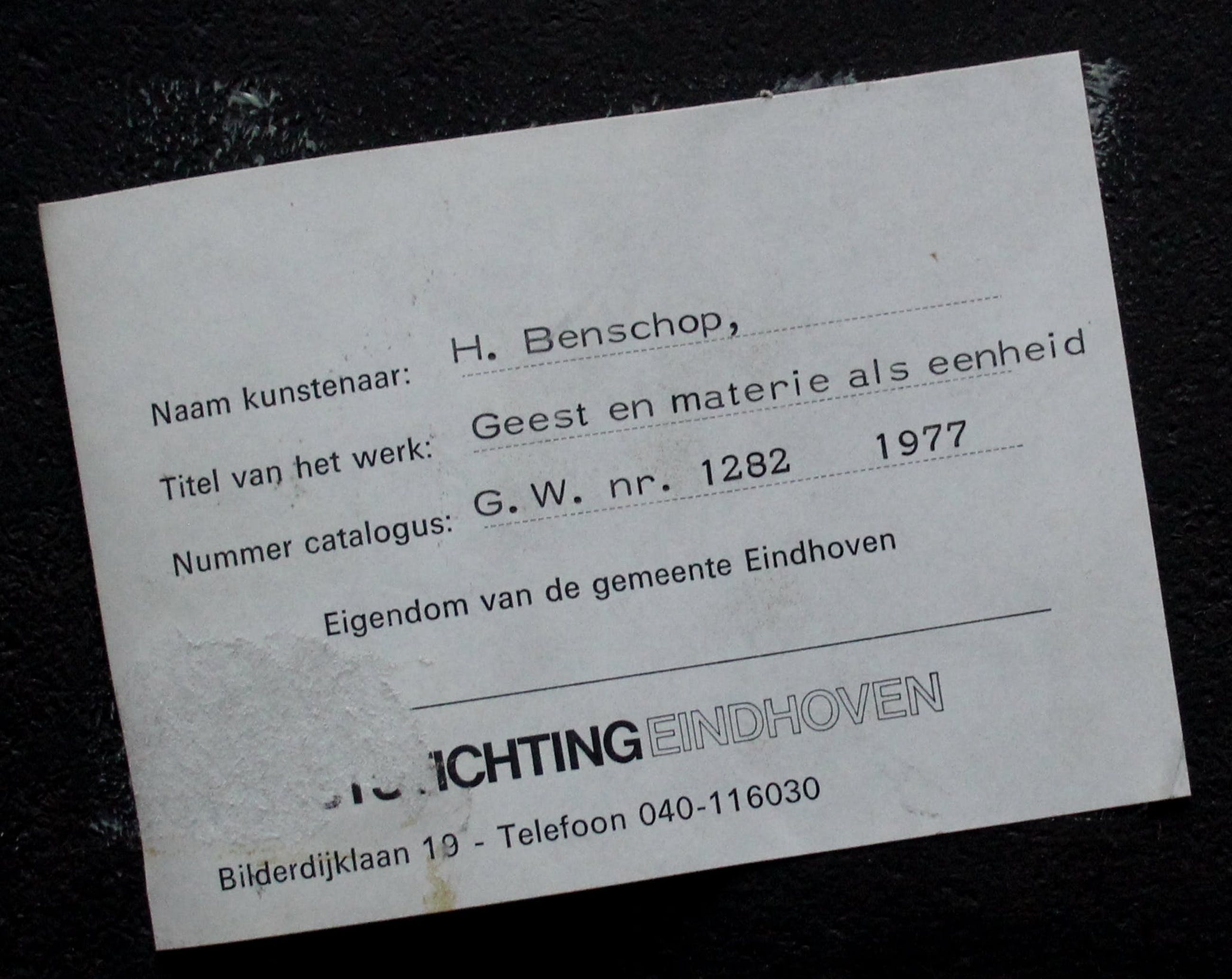 Bij aankoop kan het werk worden opgehaald in 's-Gravenzande ( vlakbij Den Haag