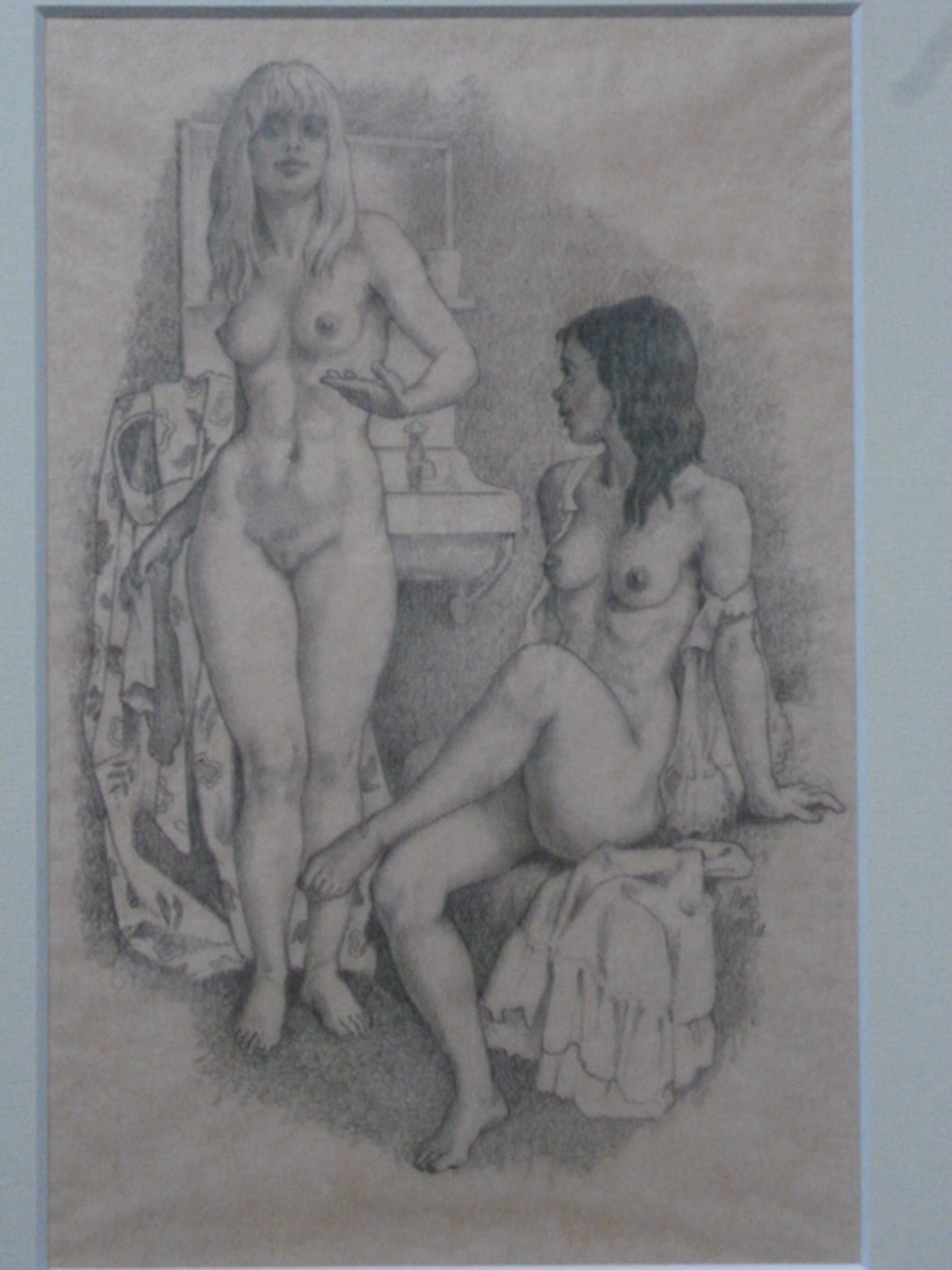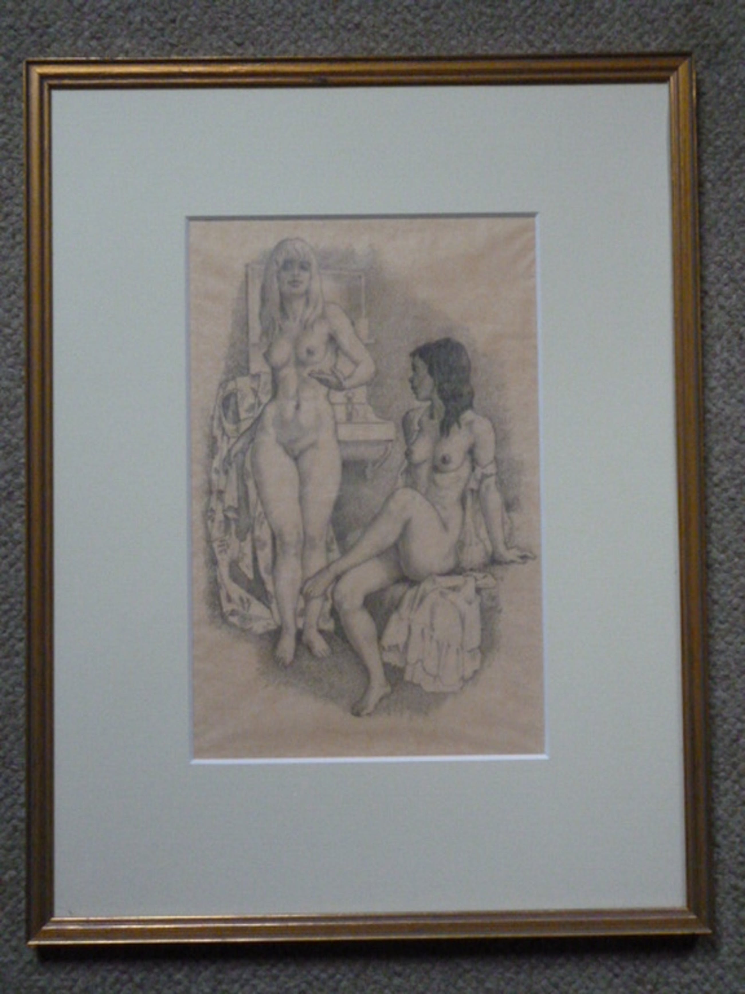 Potloodtekening. Gesigneerd rechtsonder. Beeldmaat 24 x 16 cm. Ingelijst. Lijstmaat 40 x 30 cm.