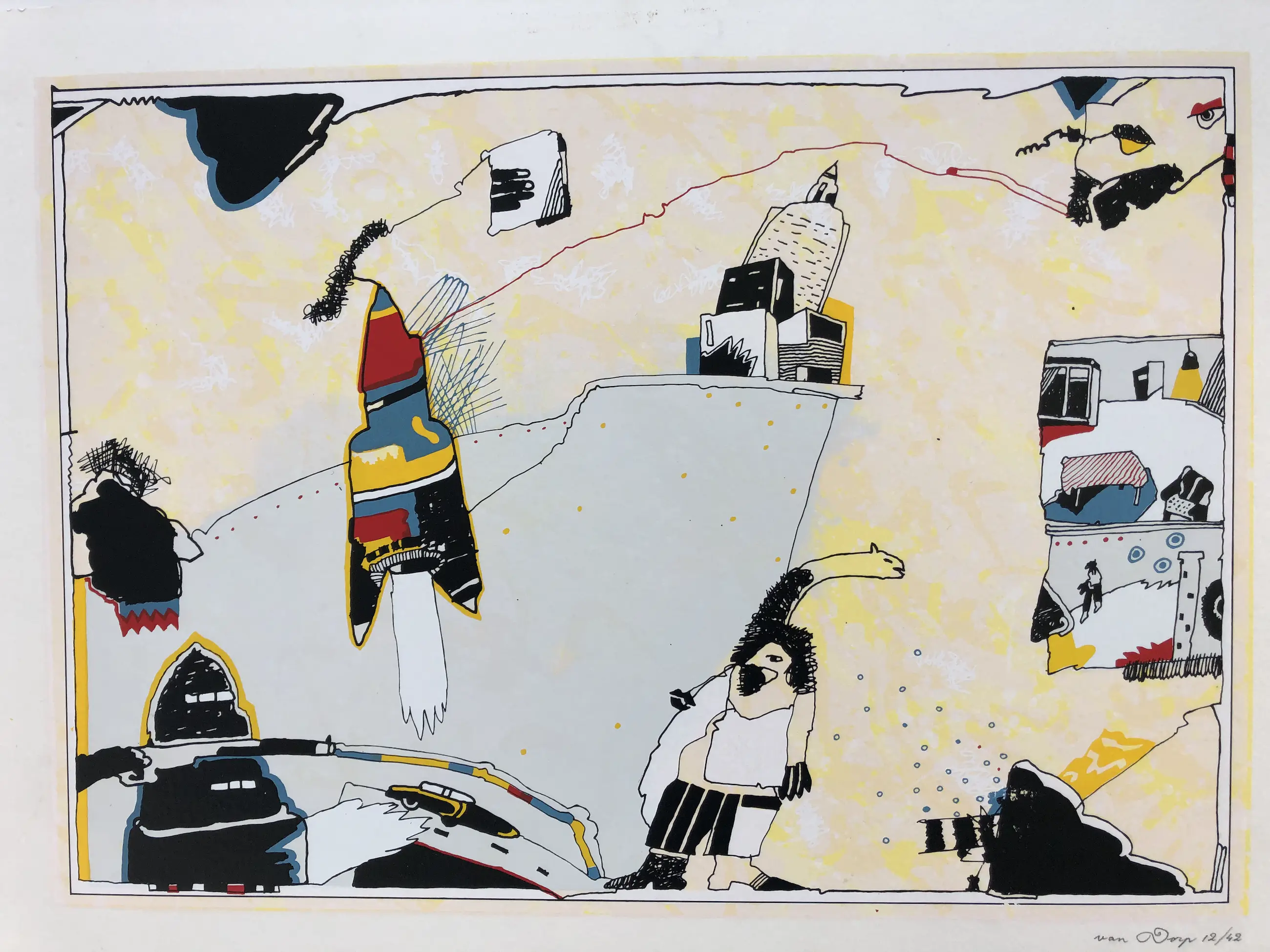 Leuke zeefdruk op karton van Huibert van Dorp. 12/46 en in goede staat.Ophalen bij galerie Rotor in Gorinchem of toegestuurd krijgen.