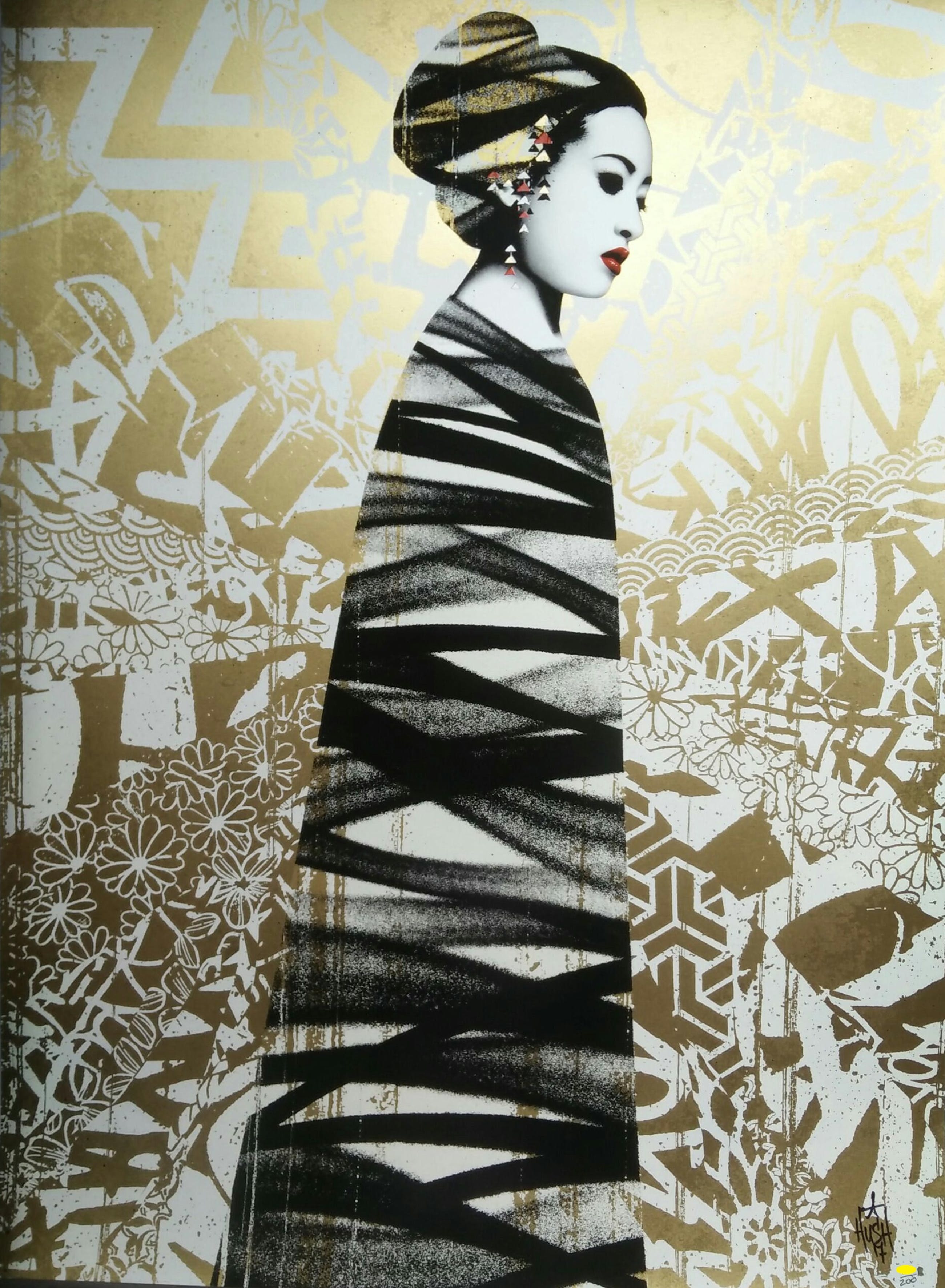 12 color screen print with UV gloss varnish on handmade Somerset satin cotton paper of 300 gsm. The work measured 74 x 54 cm and is hand signed and numbered by the artist of a limited edition of 200 pieces. Included a CoA. Condition of the piece is as new (never framed, saved in flat file).