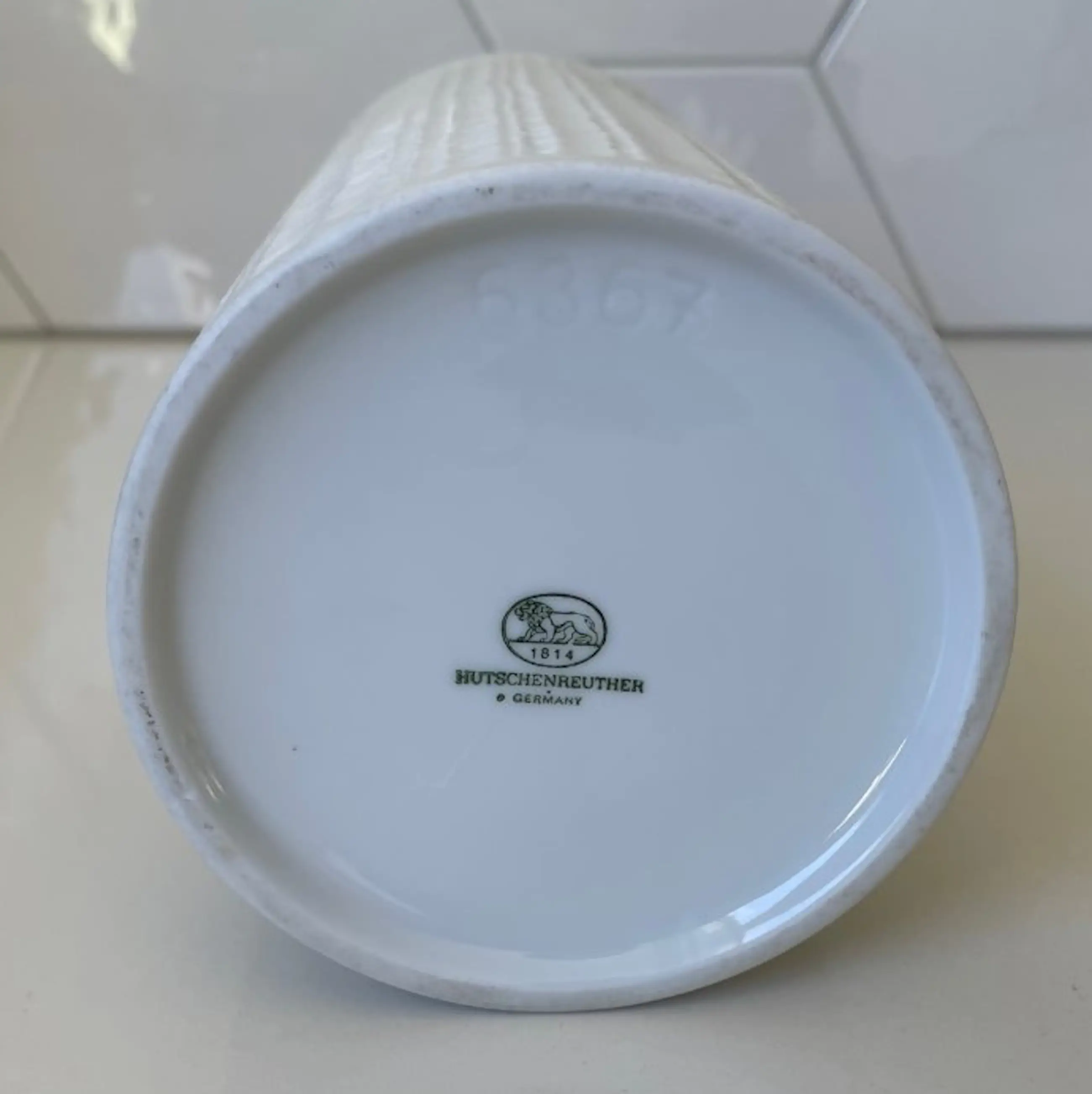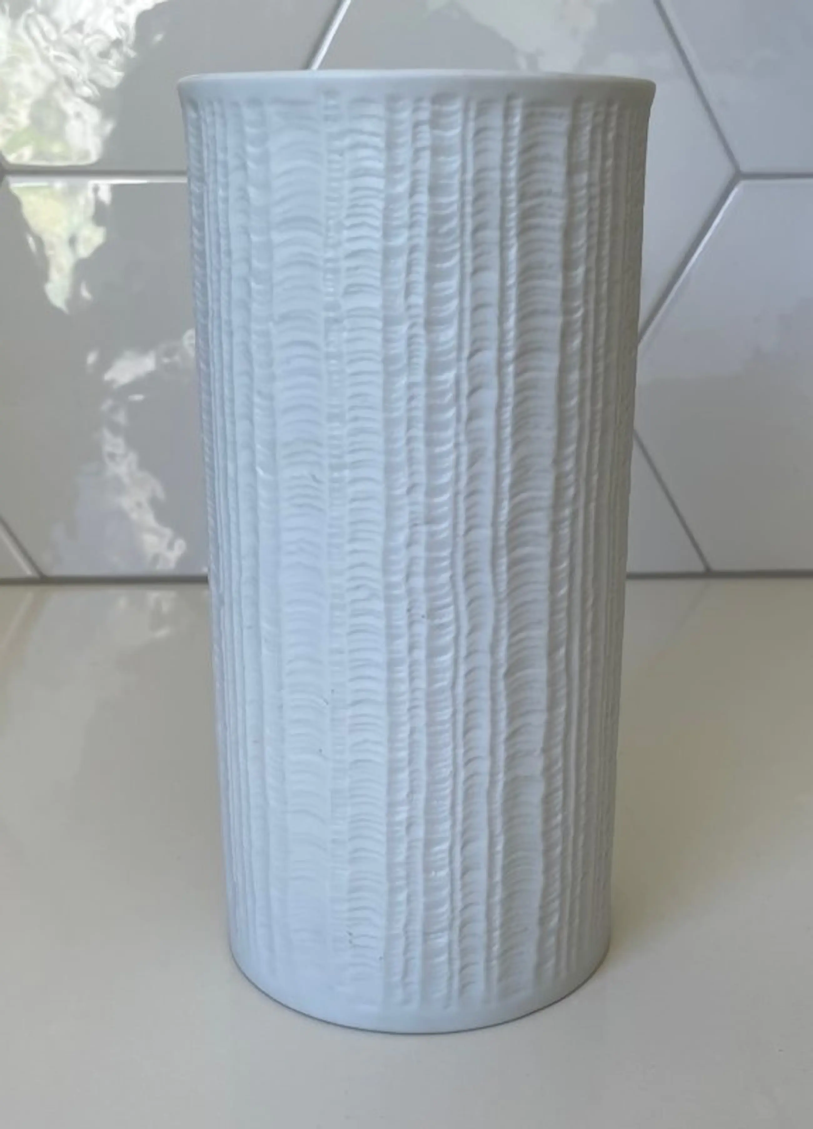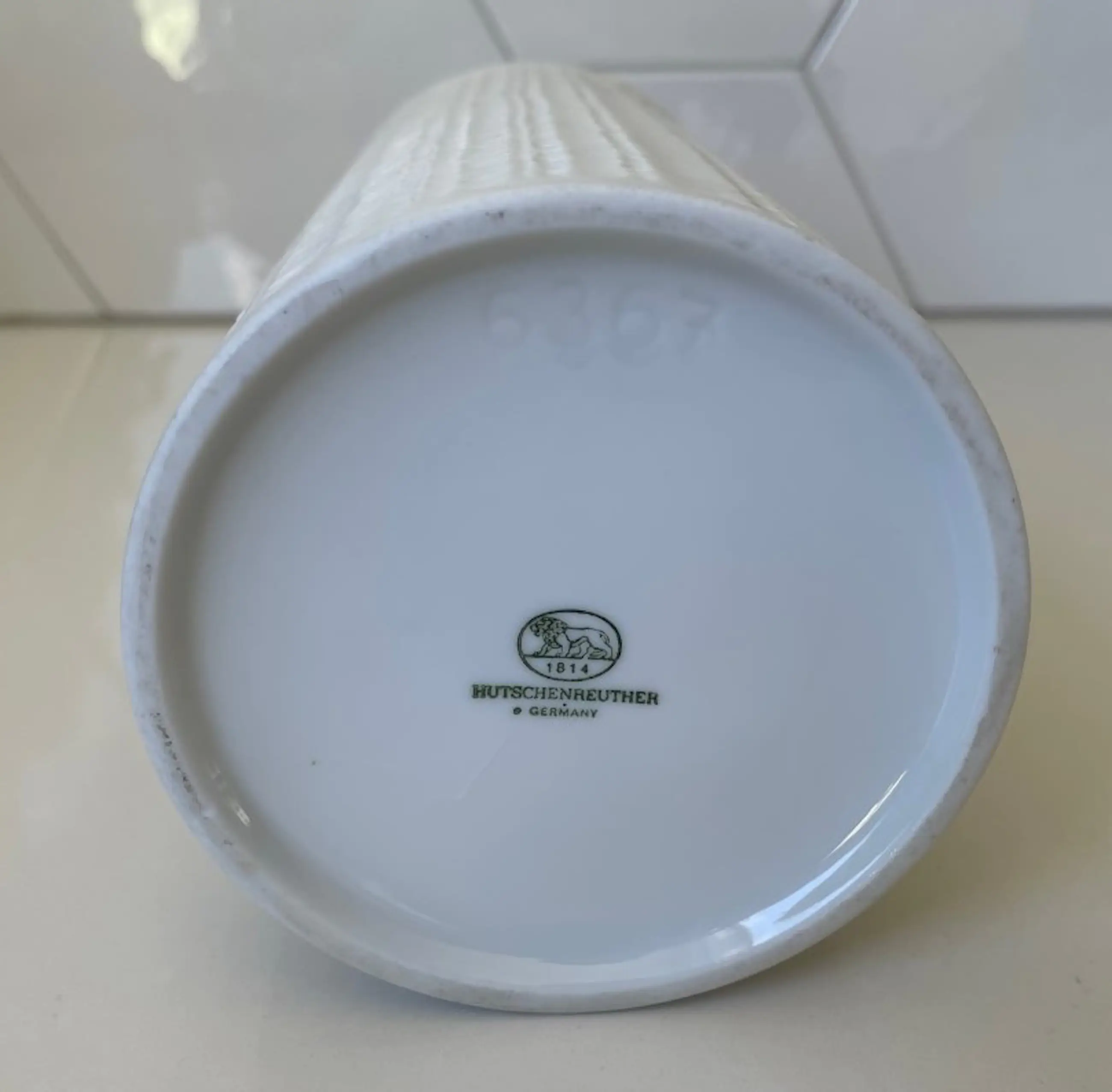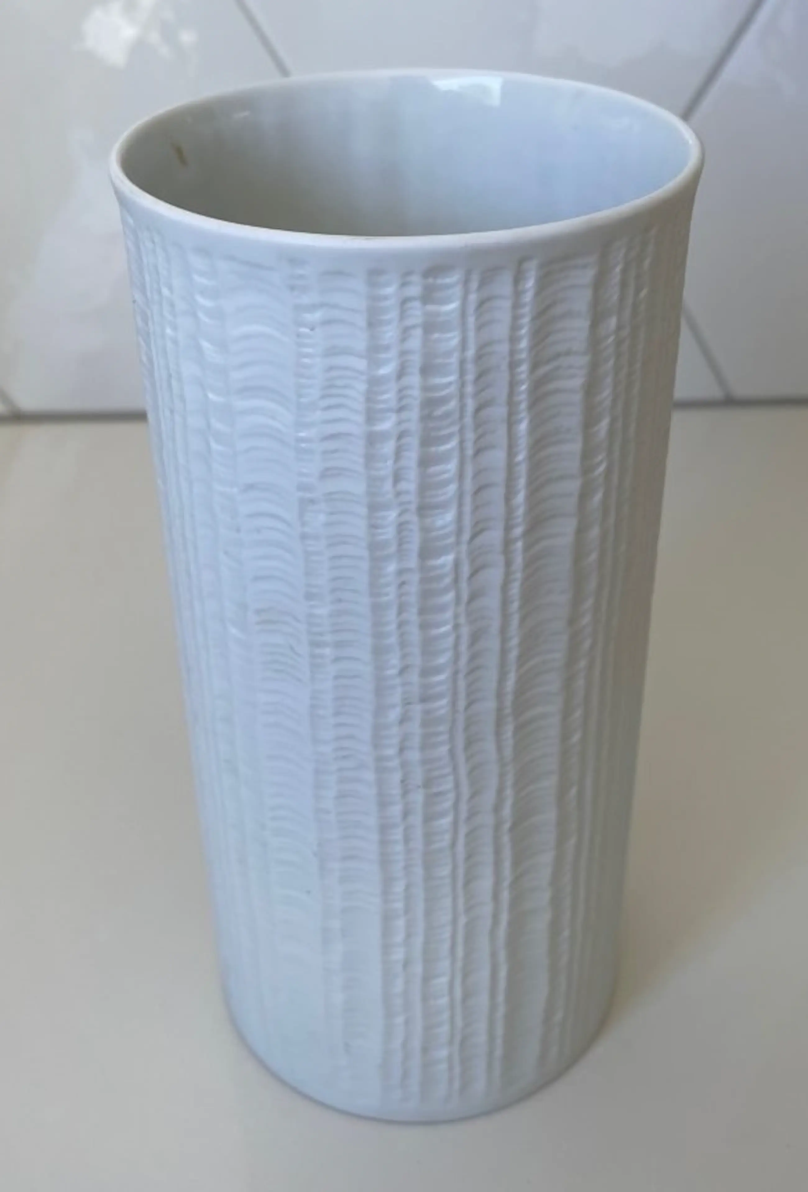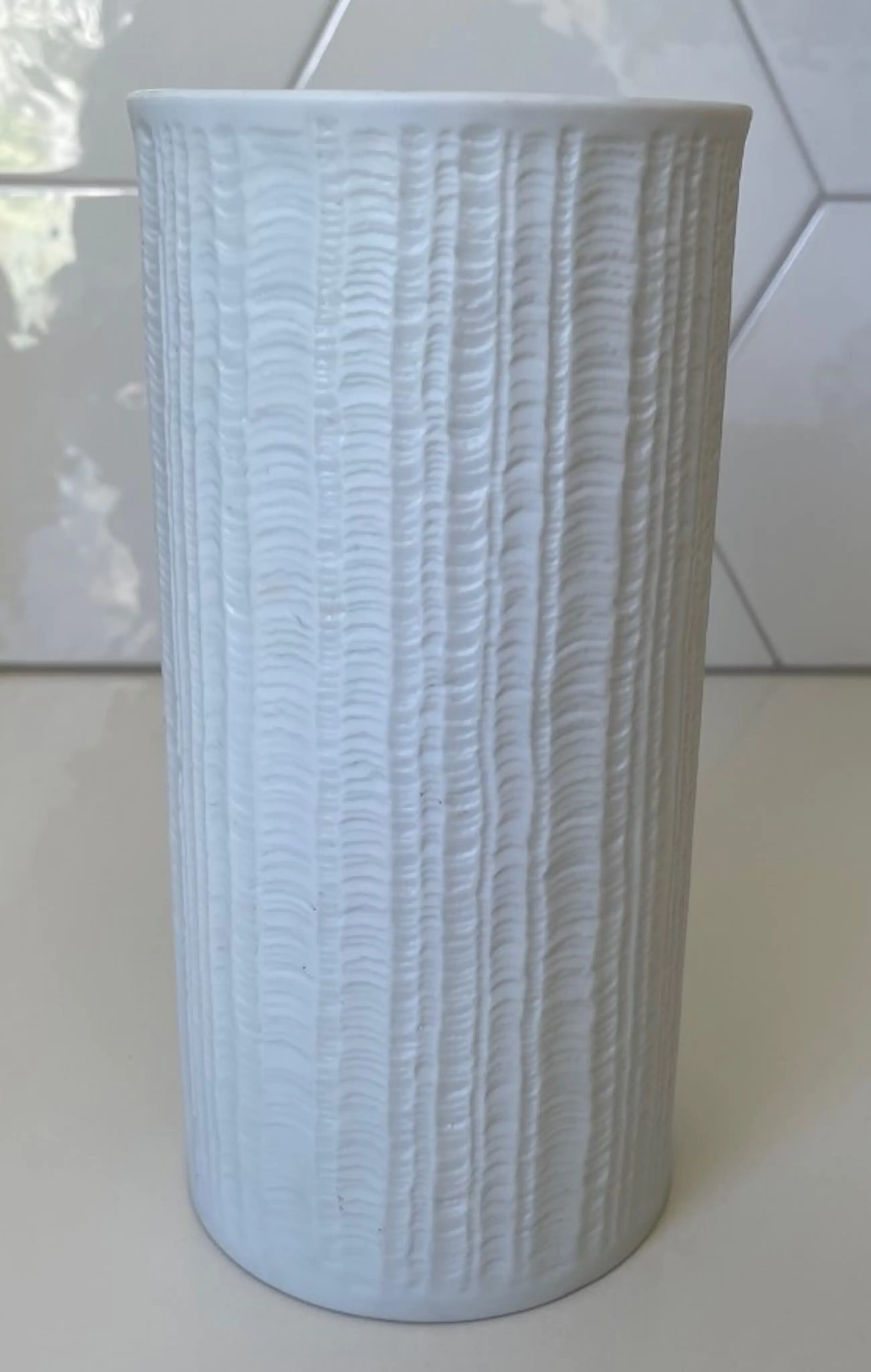 Porseleinen Op Art vaas van Hutschenreuther met biscuit boomschors decoratie. In onbeschadigde conditie en gemerkt aan de onderzijde.