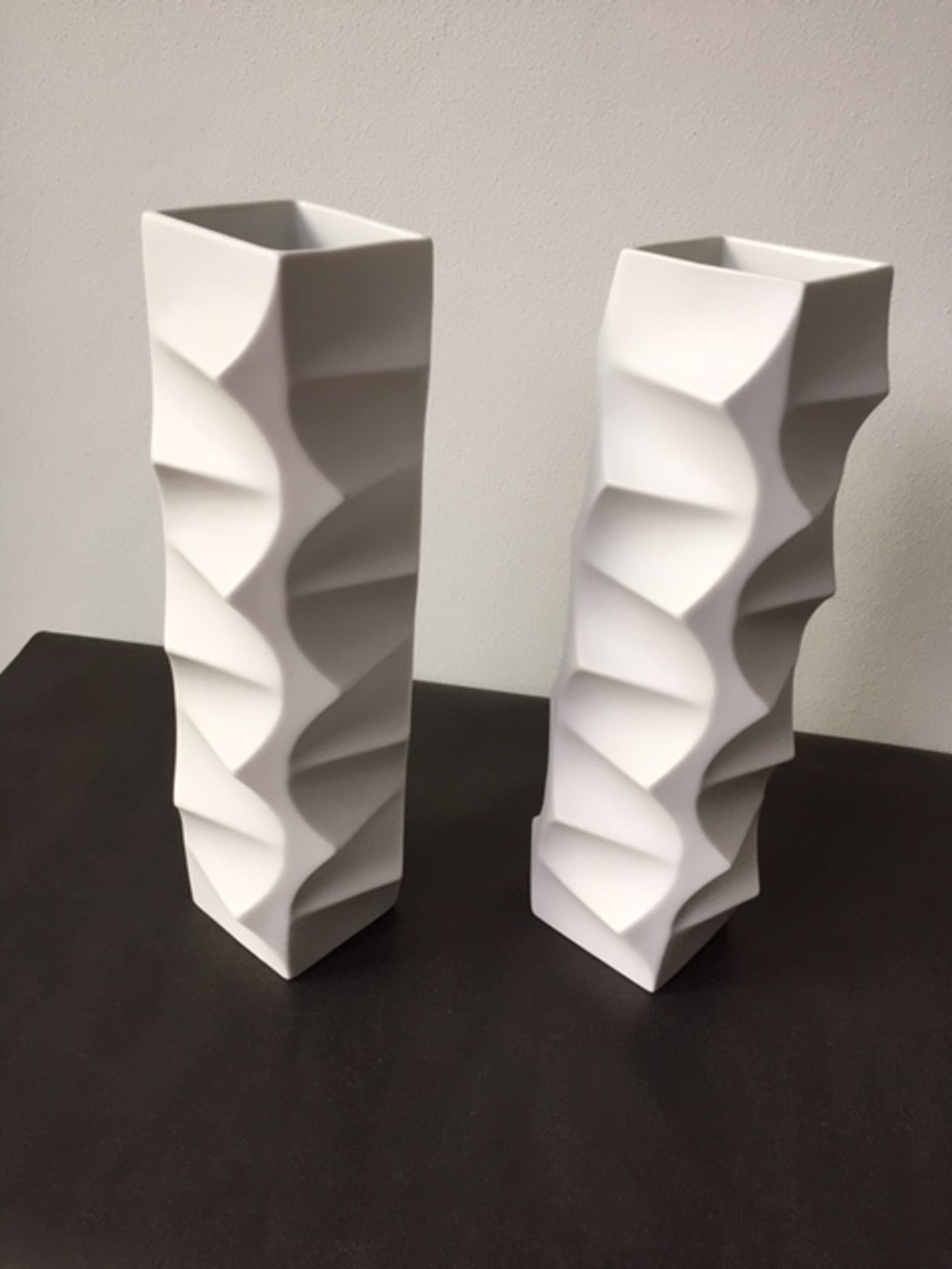 Ik verkoop twee van deze vazen. De vazen komen uit dezelfde mal maar hebben toch minieme verschillen. Het verschil zit o.a. in het gewicht. Deze vaas weegt 1320 gram. De andere vaas weegt 1466 gram.