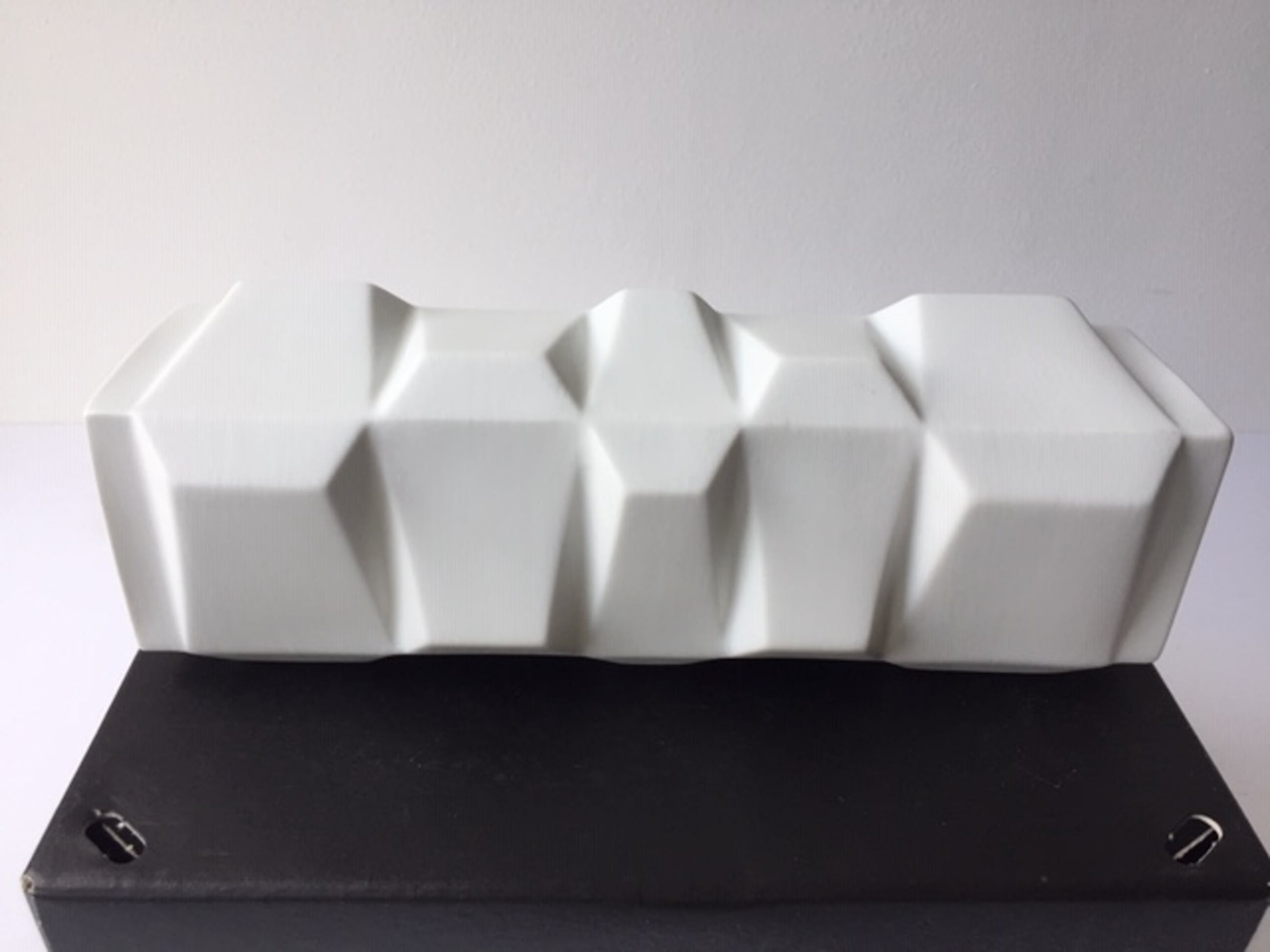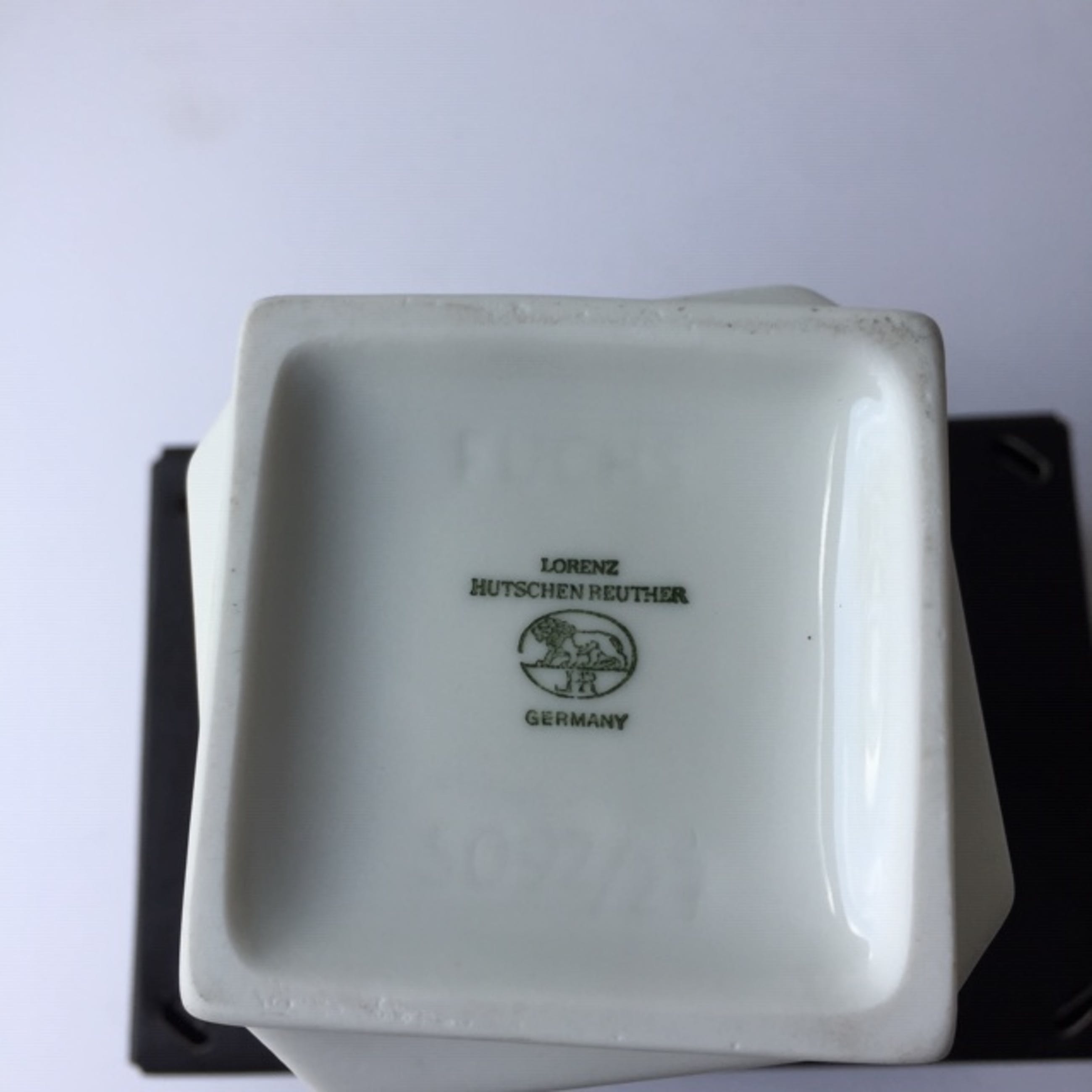 Prachtige, puntgave, vierkante reliëfvaas in wit mat (biscuit) porselein. Ontwerp Heinrich Fuchs voor Hutschenreuther in de serie Archais. Jaren '60 - '70. Hoogte 27,5 cm. Op de onderzijde staat, bijna onleesbaar, Fuchs 5092?/27. Vaas is in uitstekende conditie. Geen beschadigingen.