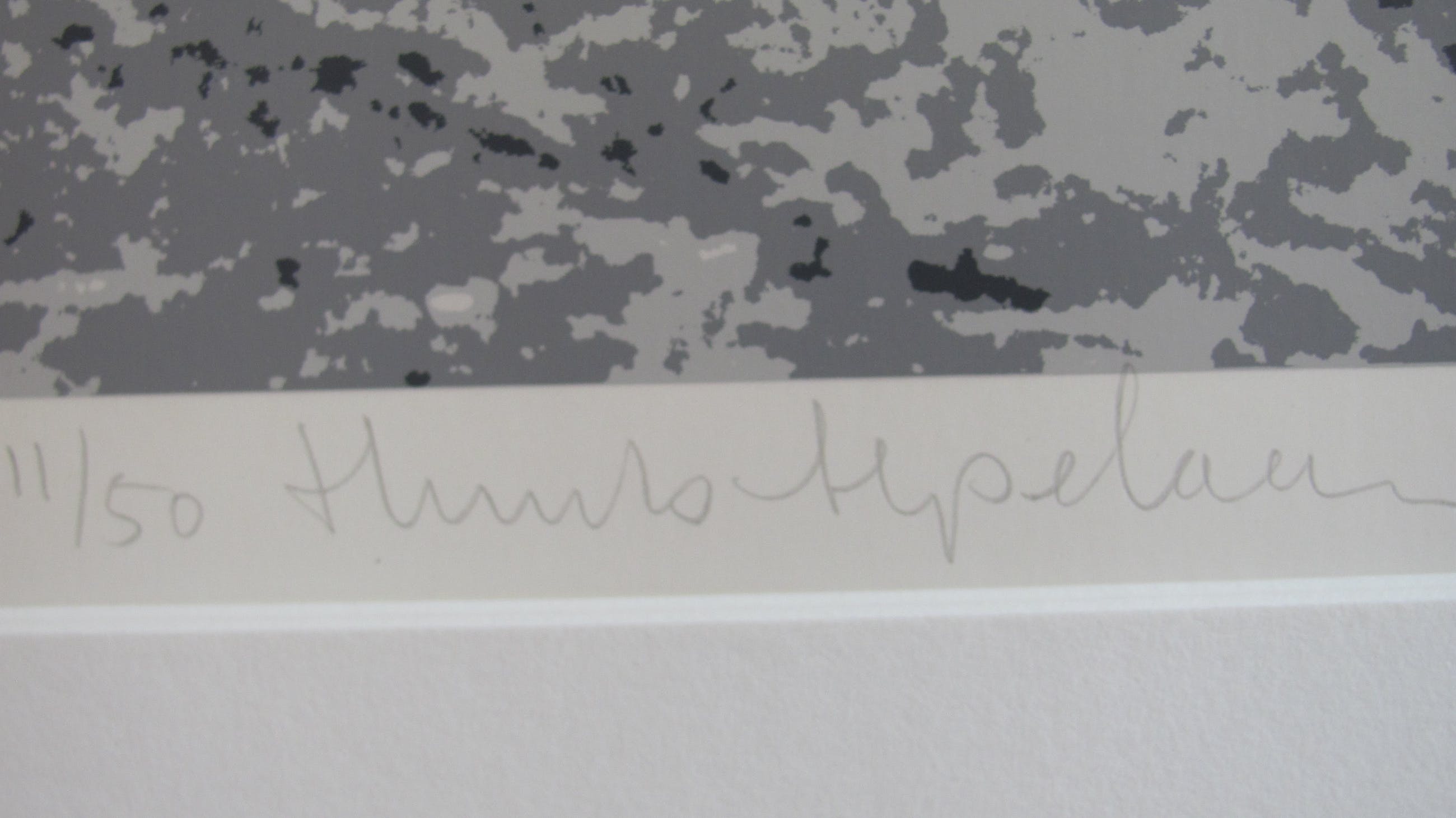 In uitstekende staat verkerende zeefdruk (silkscreen). De lijst heeft enkele kleine plekjes en geen glas.