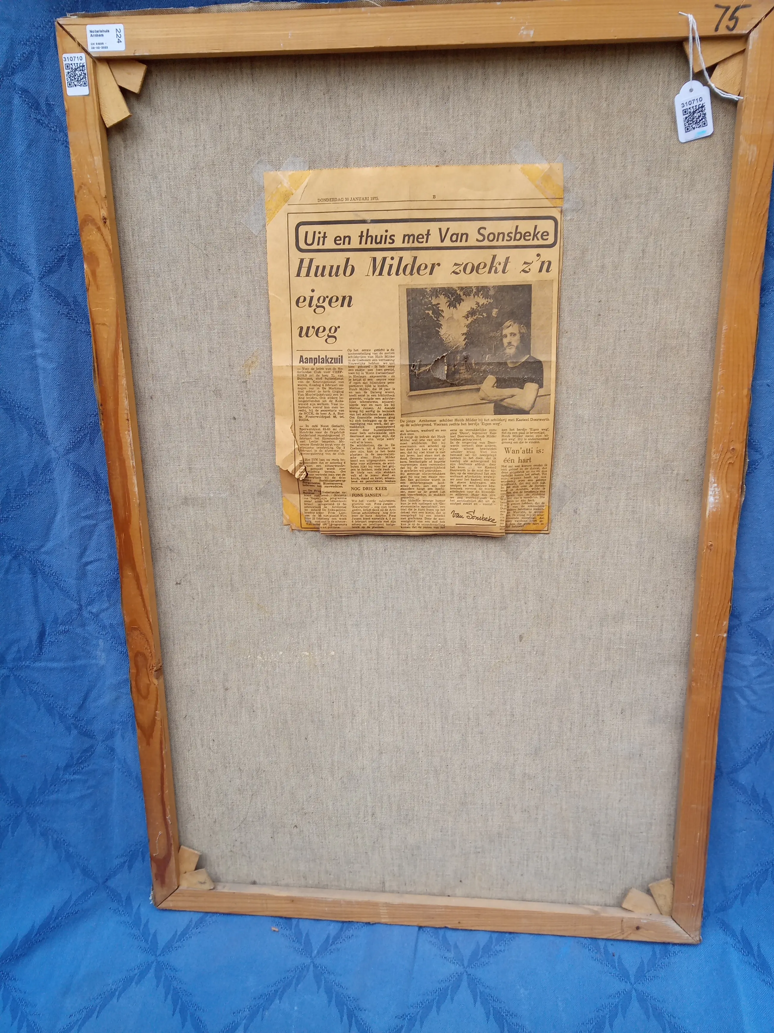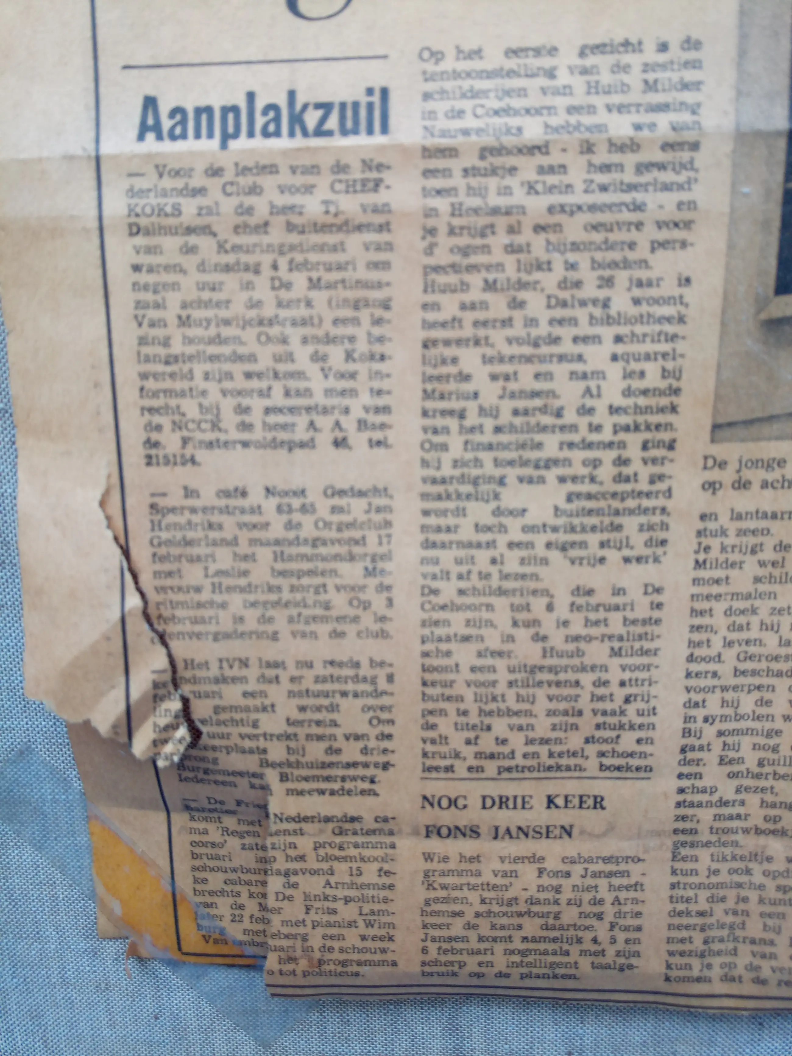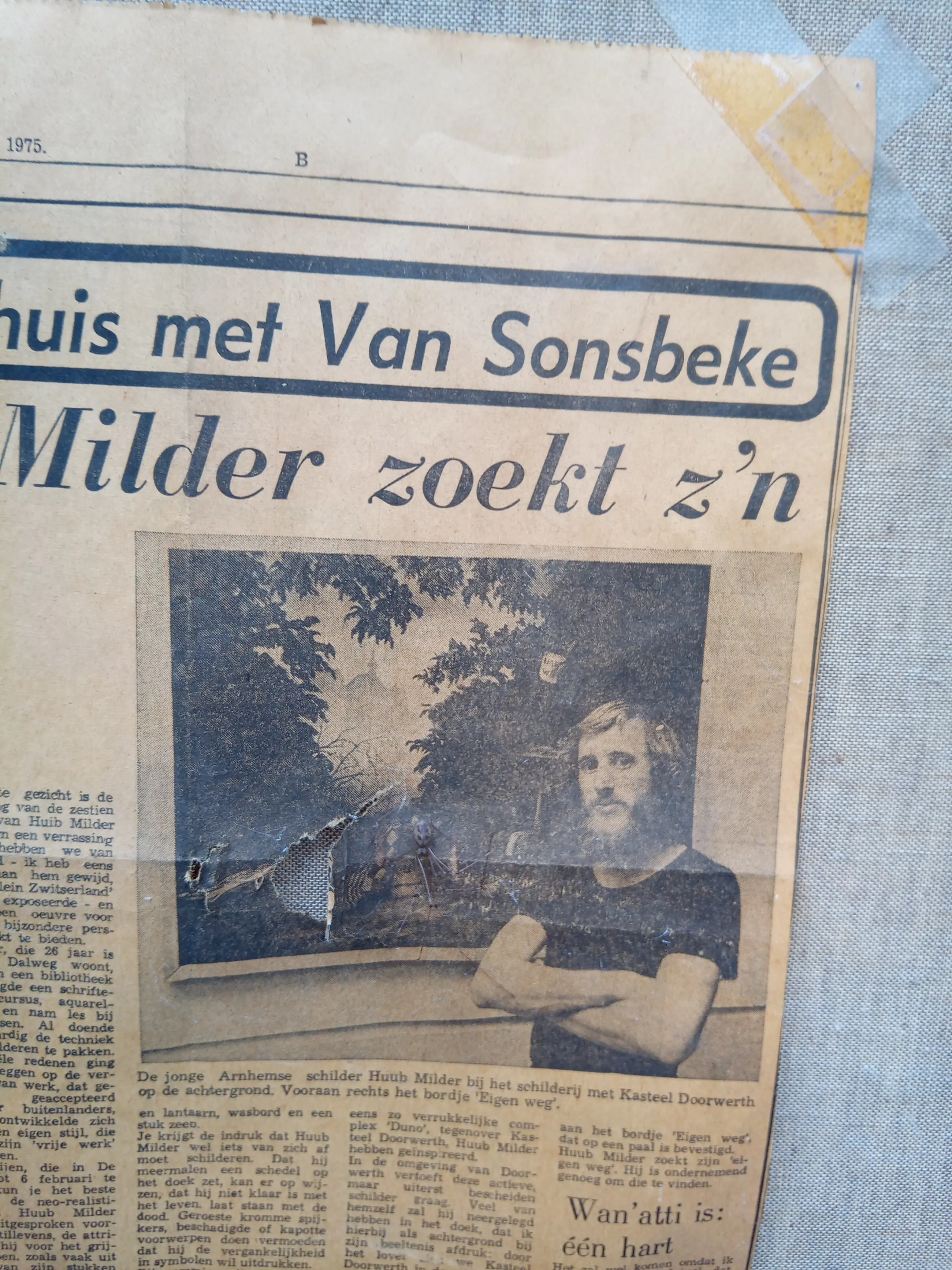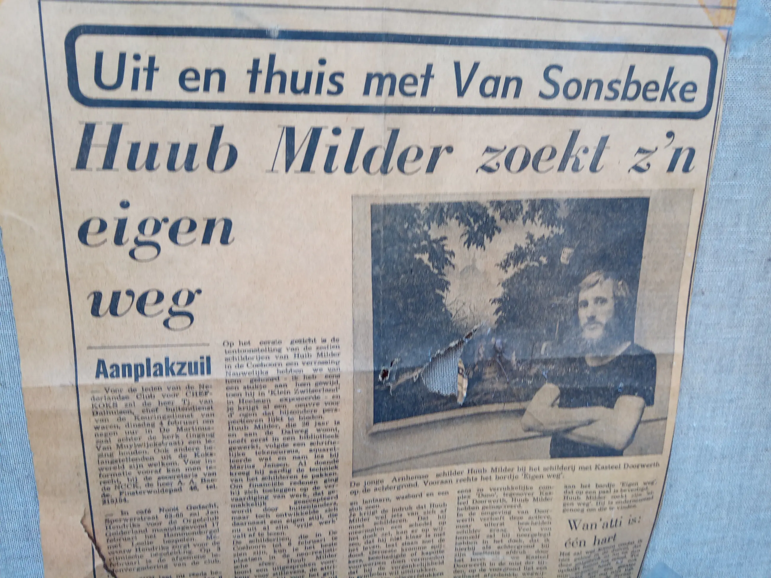 Op de achterzijde is een kranteartikel uit 1975 over Huub Milder aangebracht.