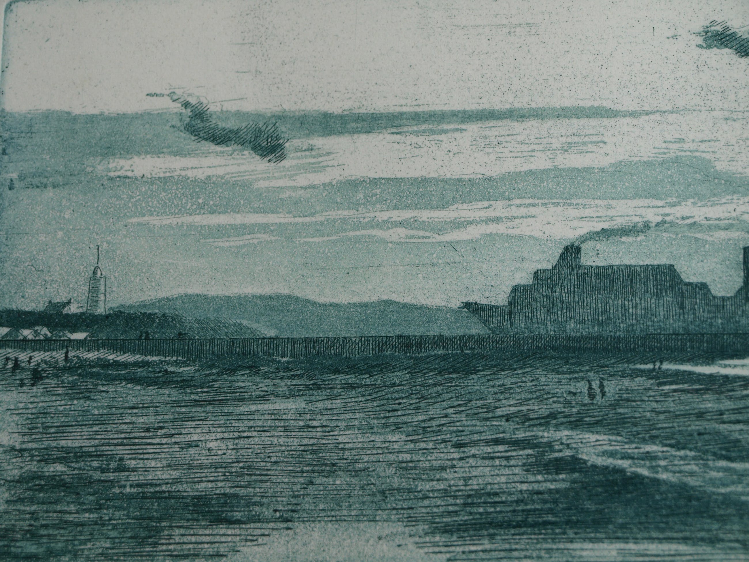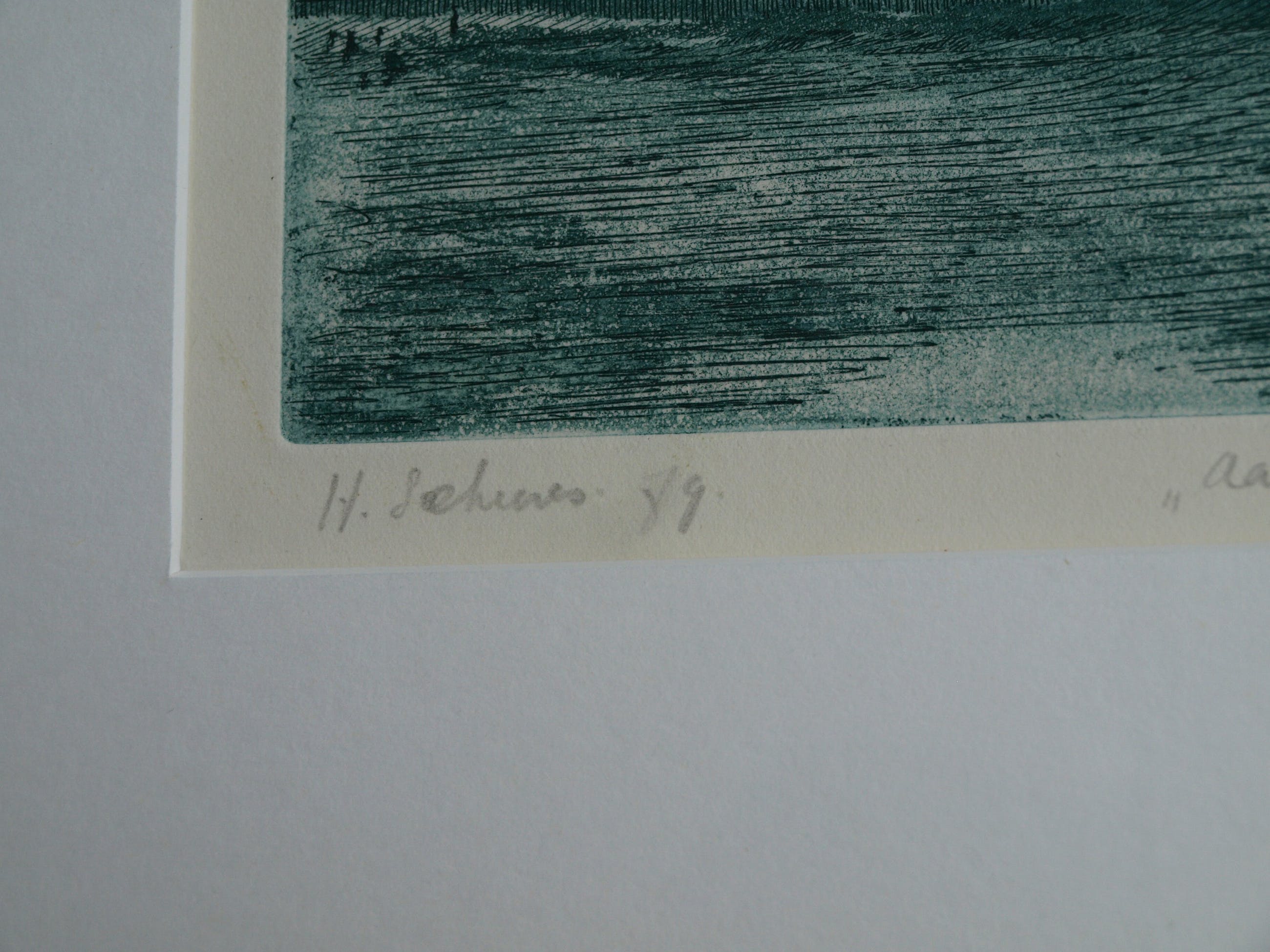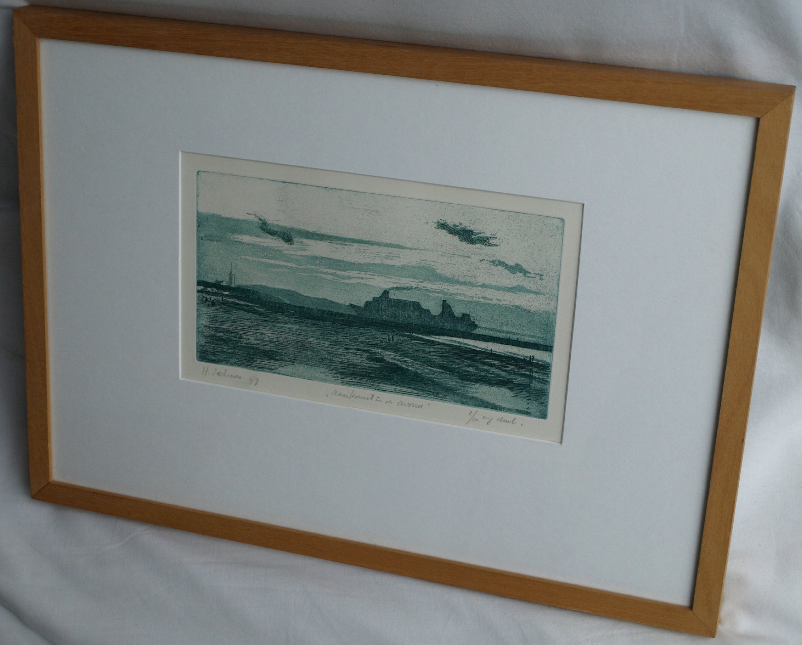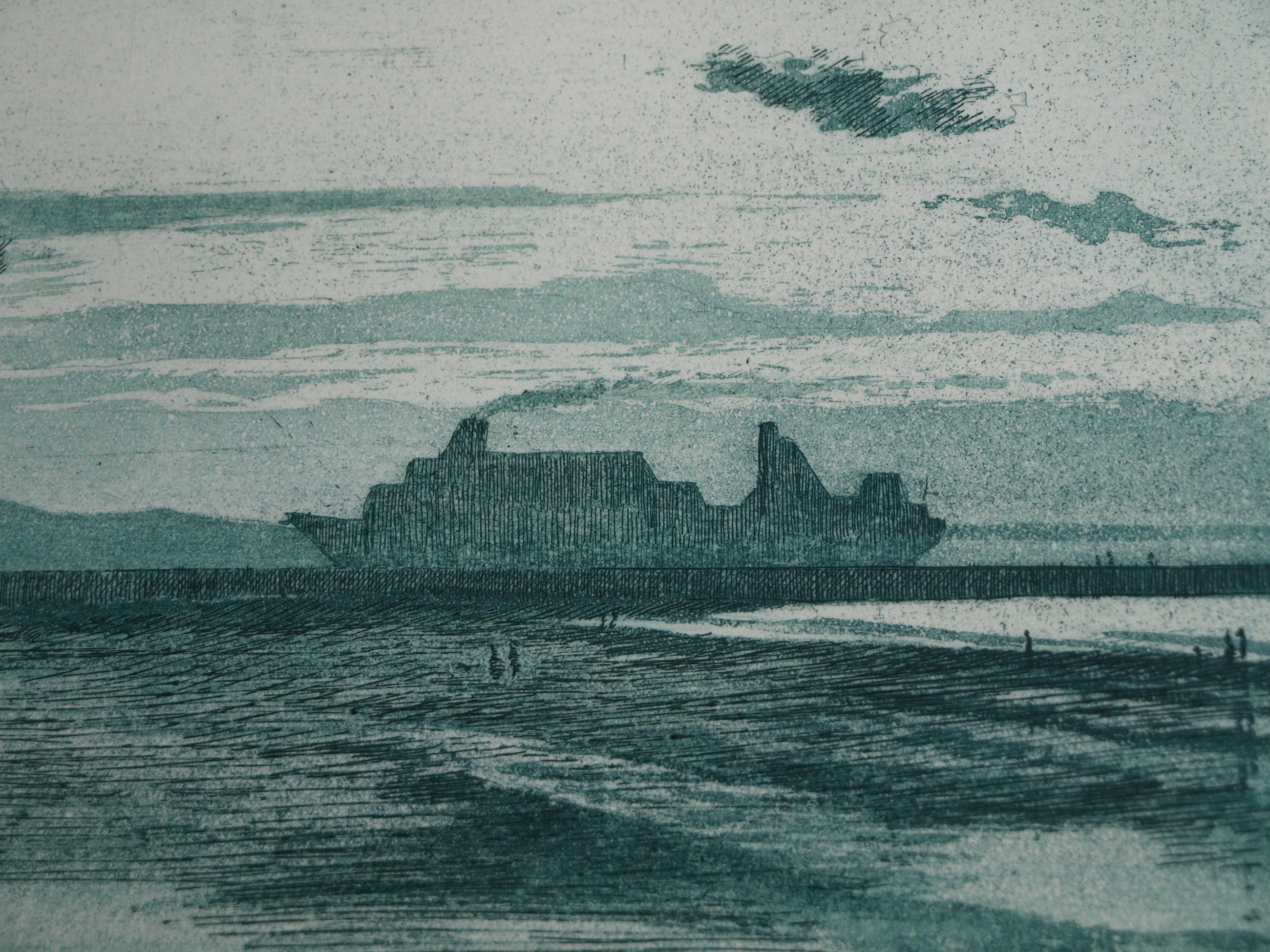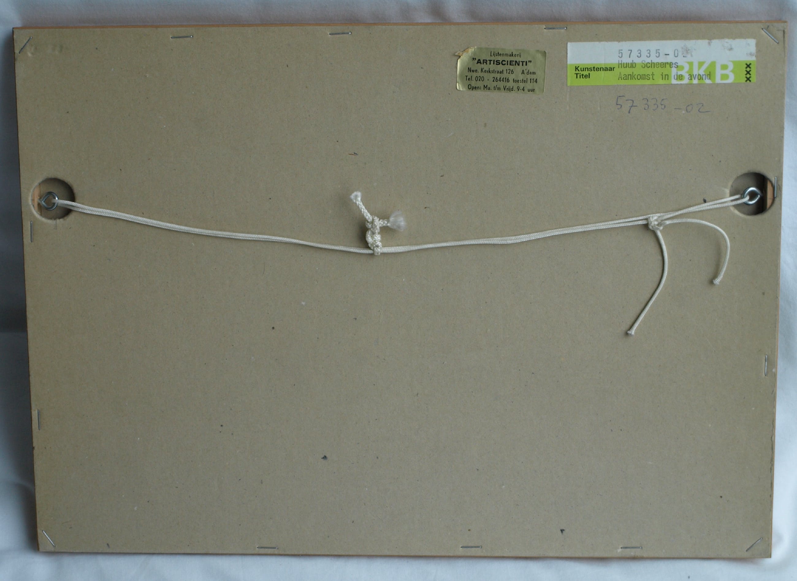 Een ets uit 1979 van de Nederlandse kunstenaar Huub Scheres, getiteld “Aankomst in de avond”.
